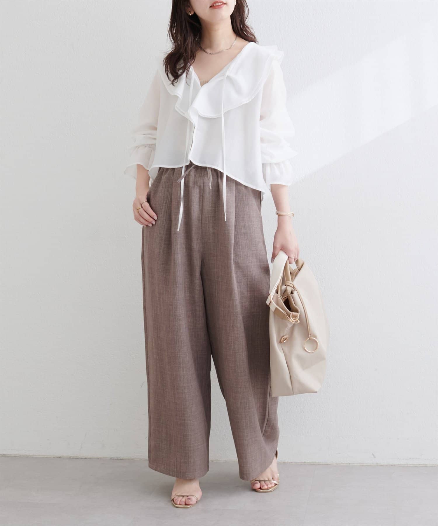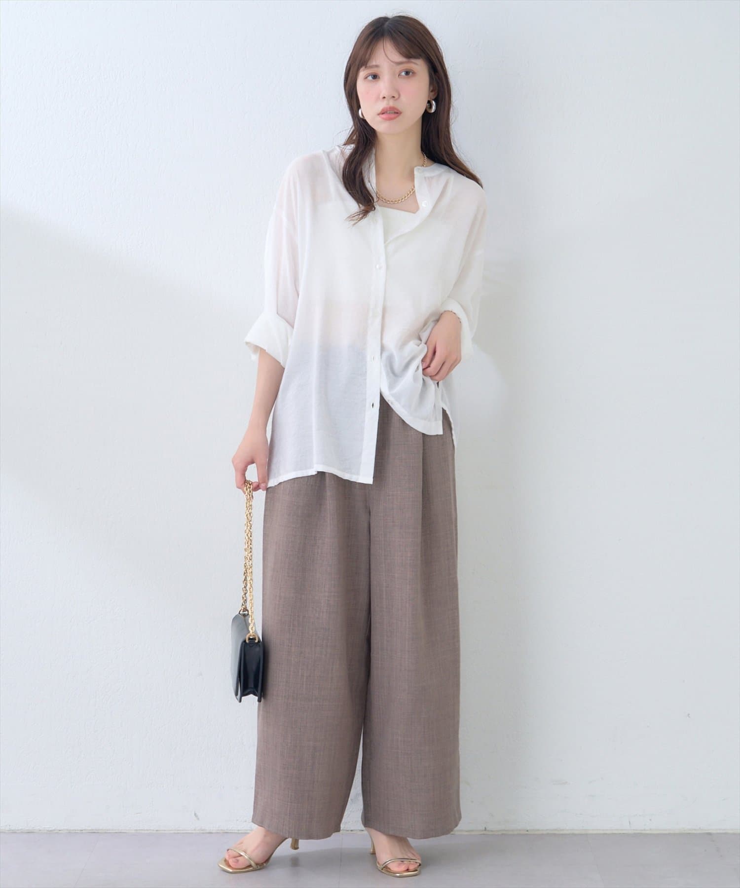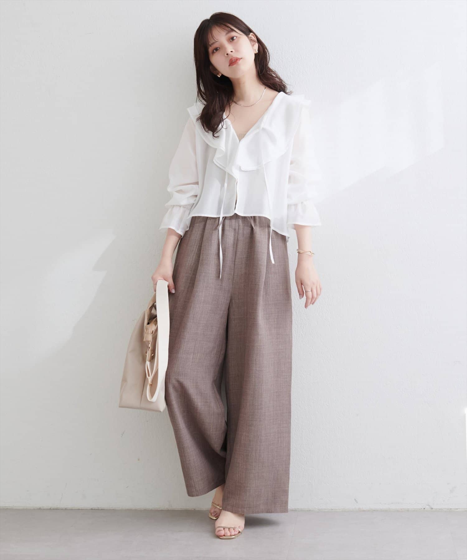ブラウスと合わせると、エレガントな雰囲気に。