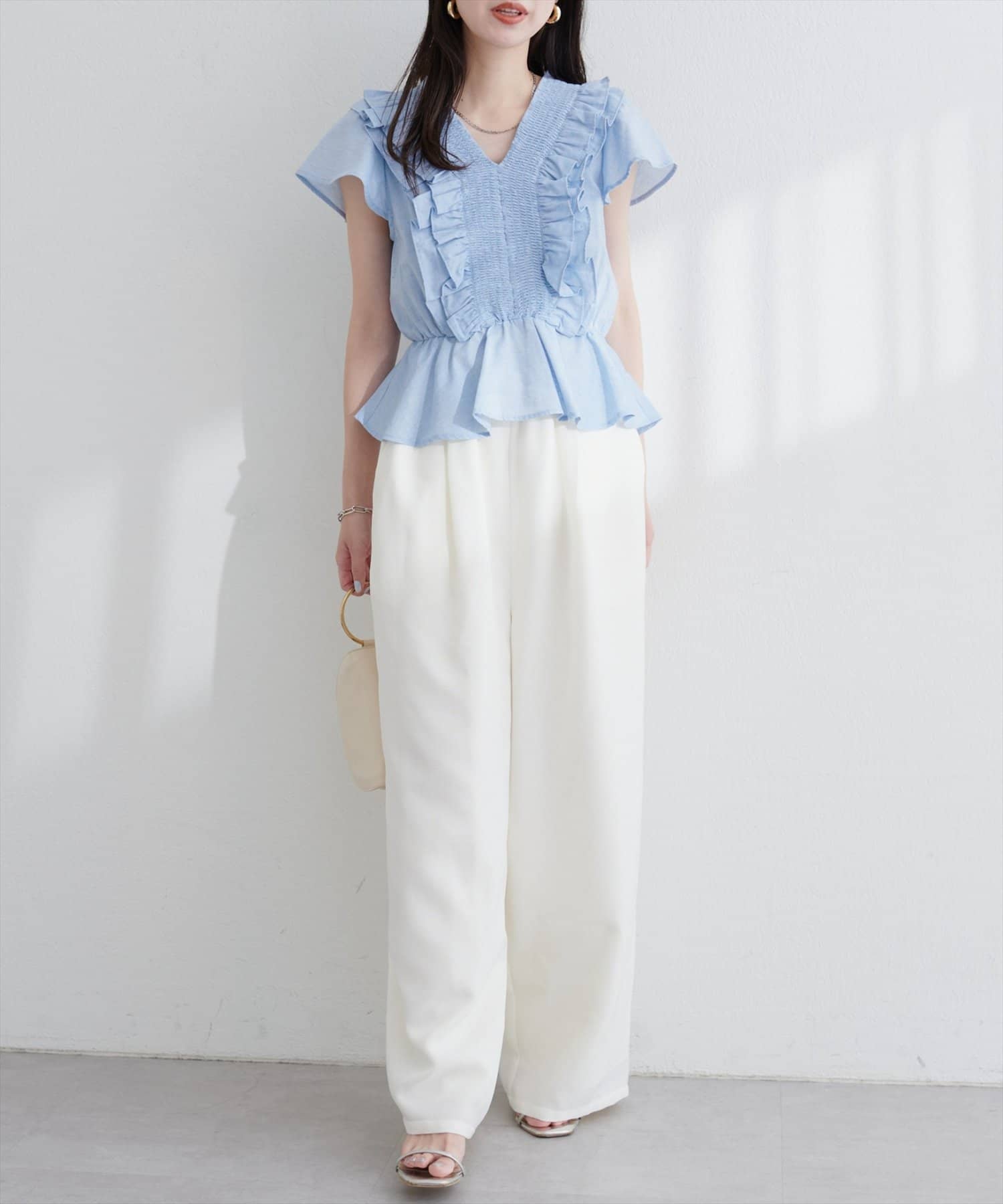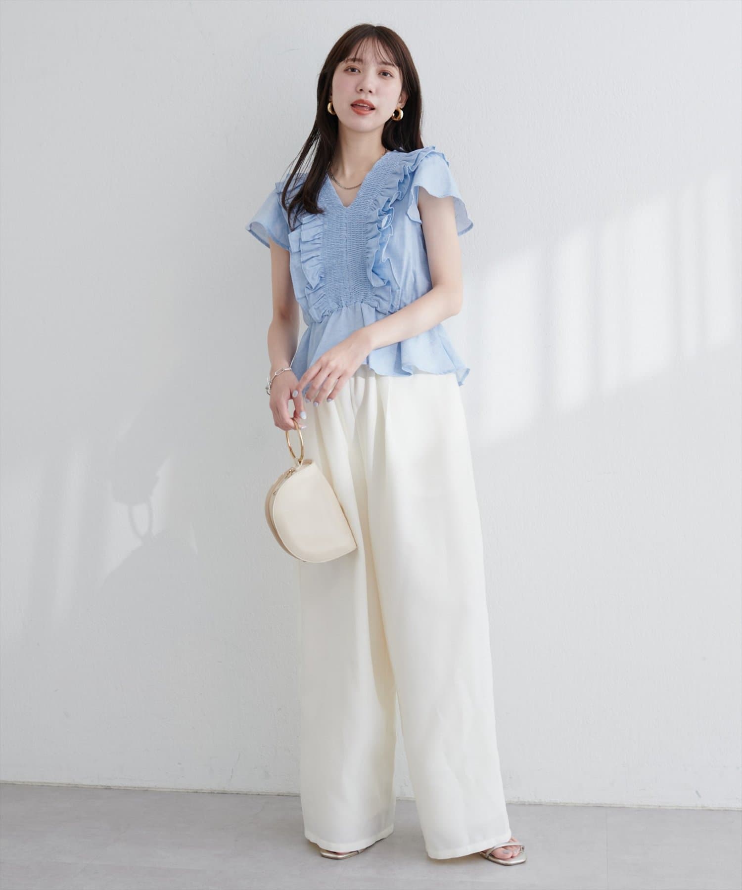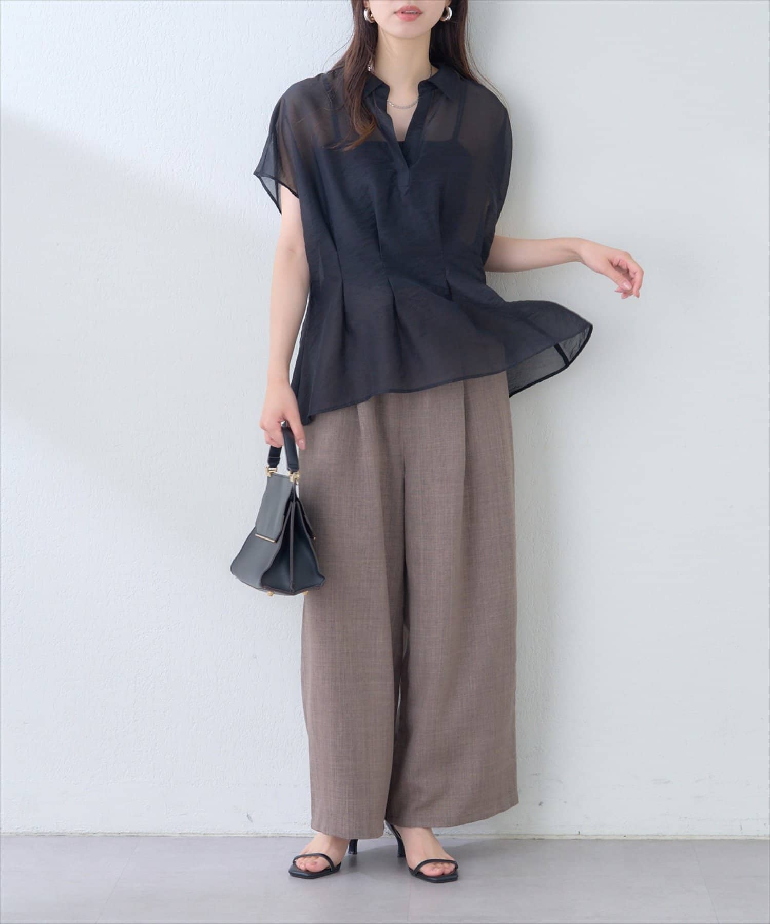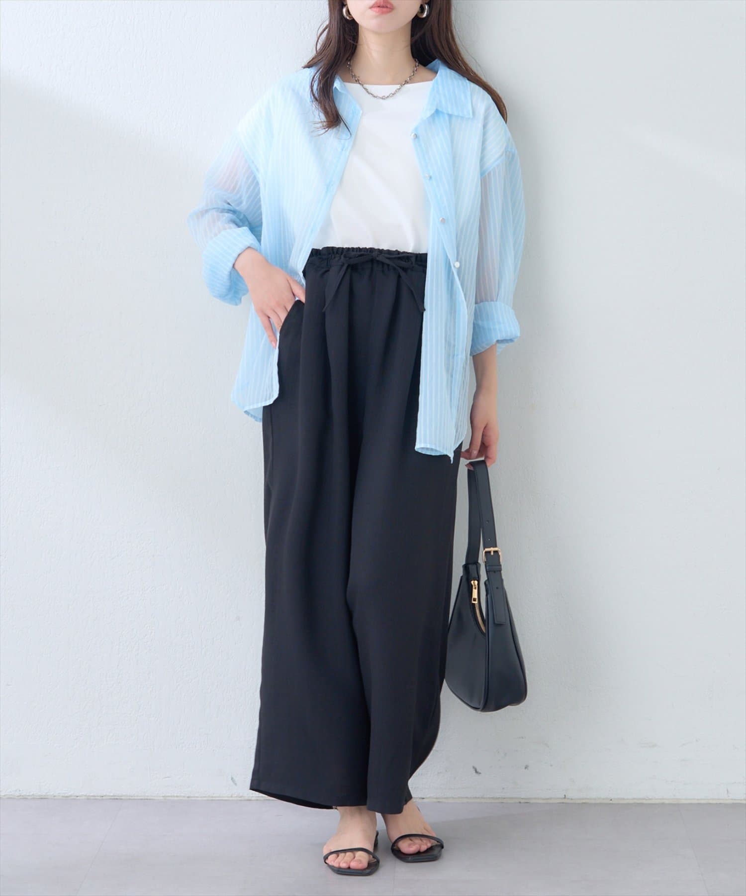 ブラウスと合わせると、エレガントな雰囲気に。