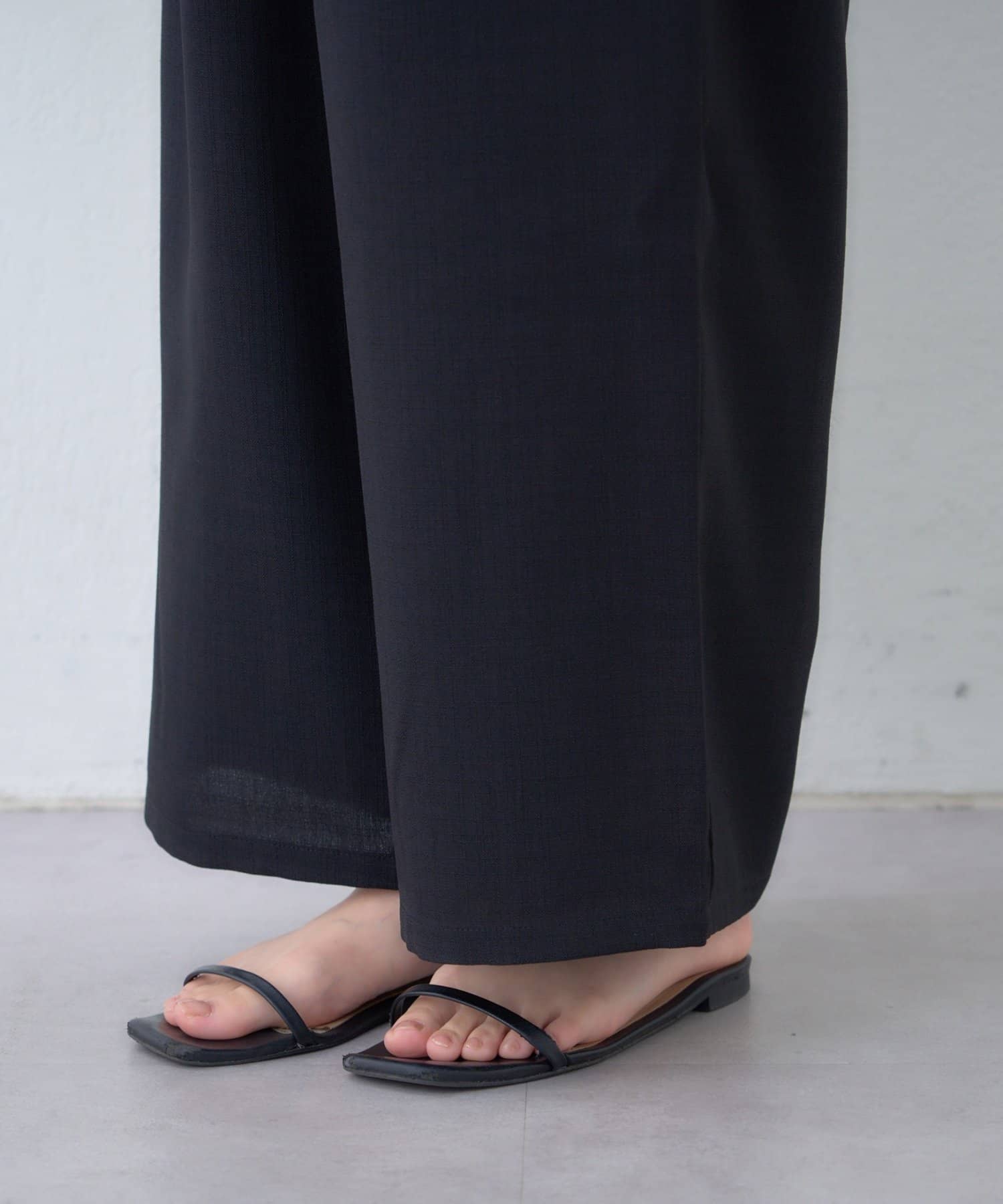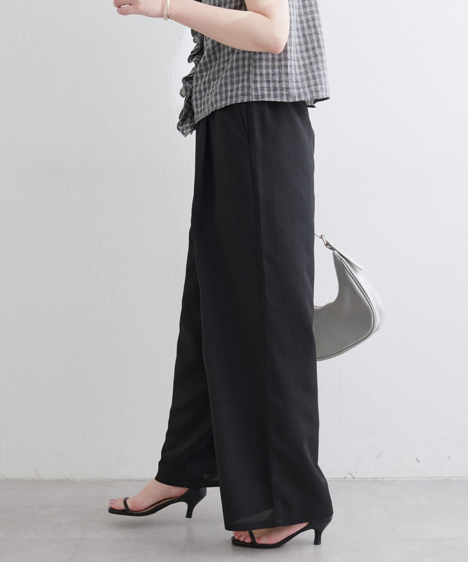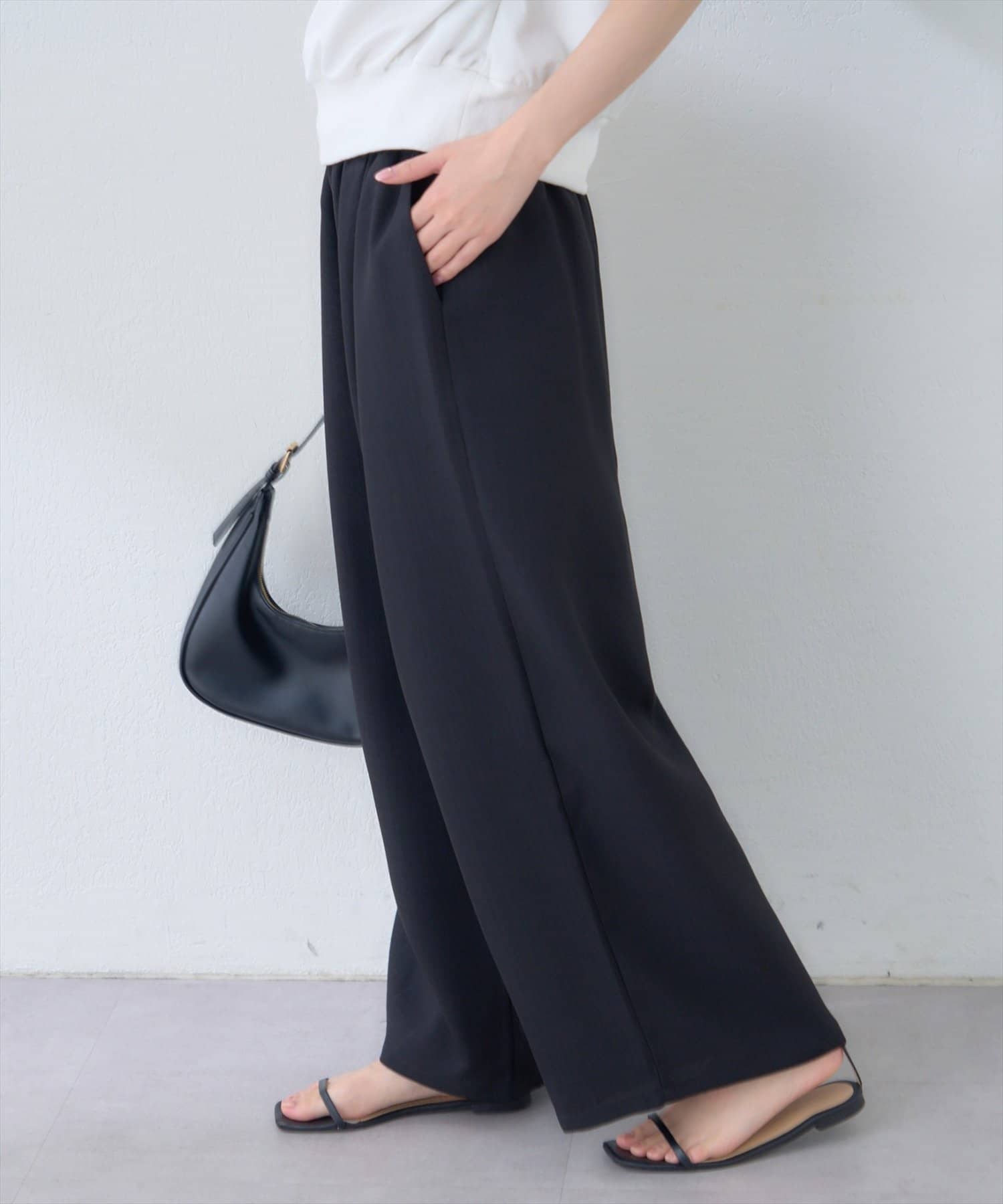 広がりすぎない絶妙なワイド感と、すとんと落ちる素材が、気になるレッグラインをカバーしつつ、スタイルアップ効果も叶えます。