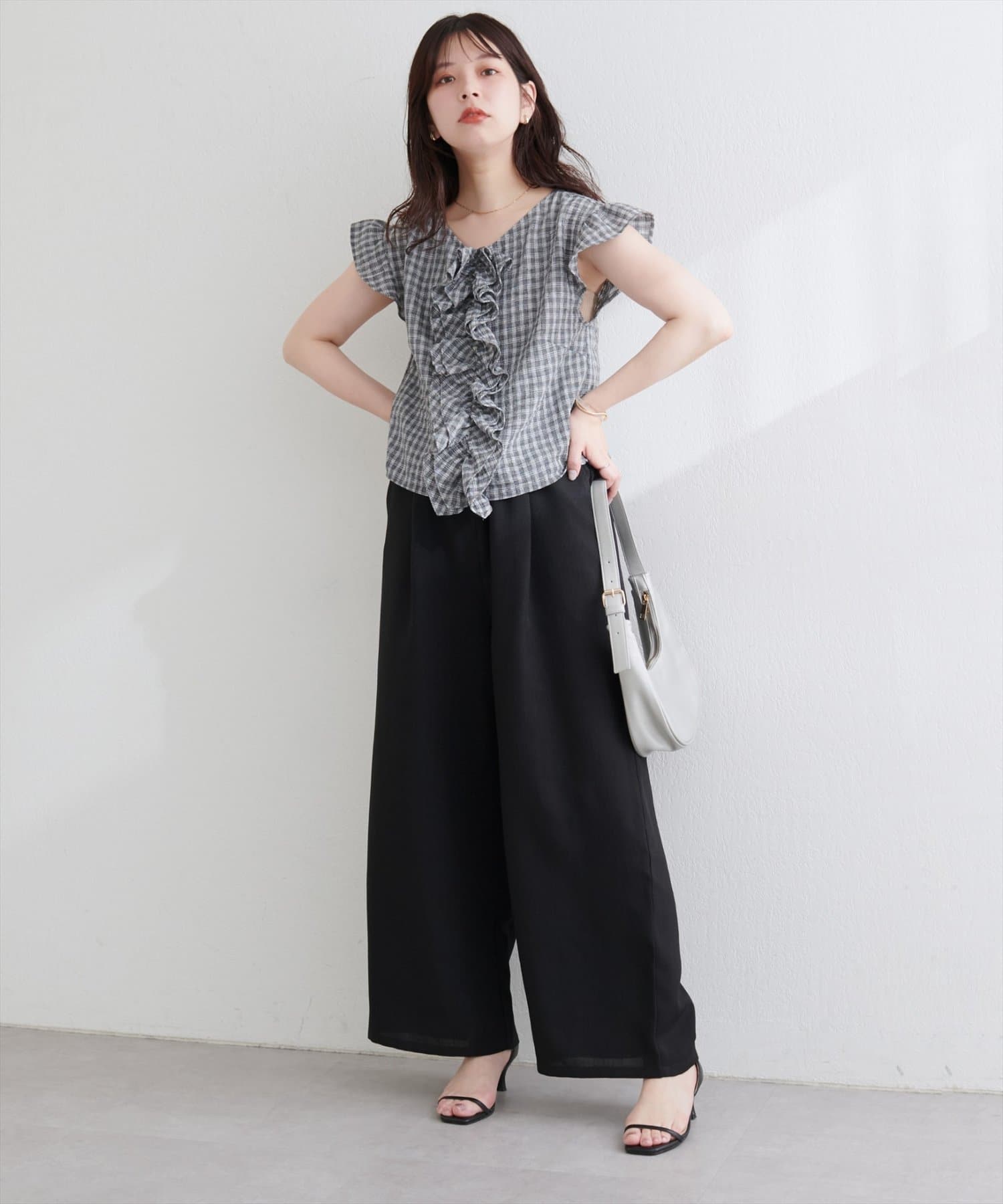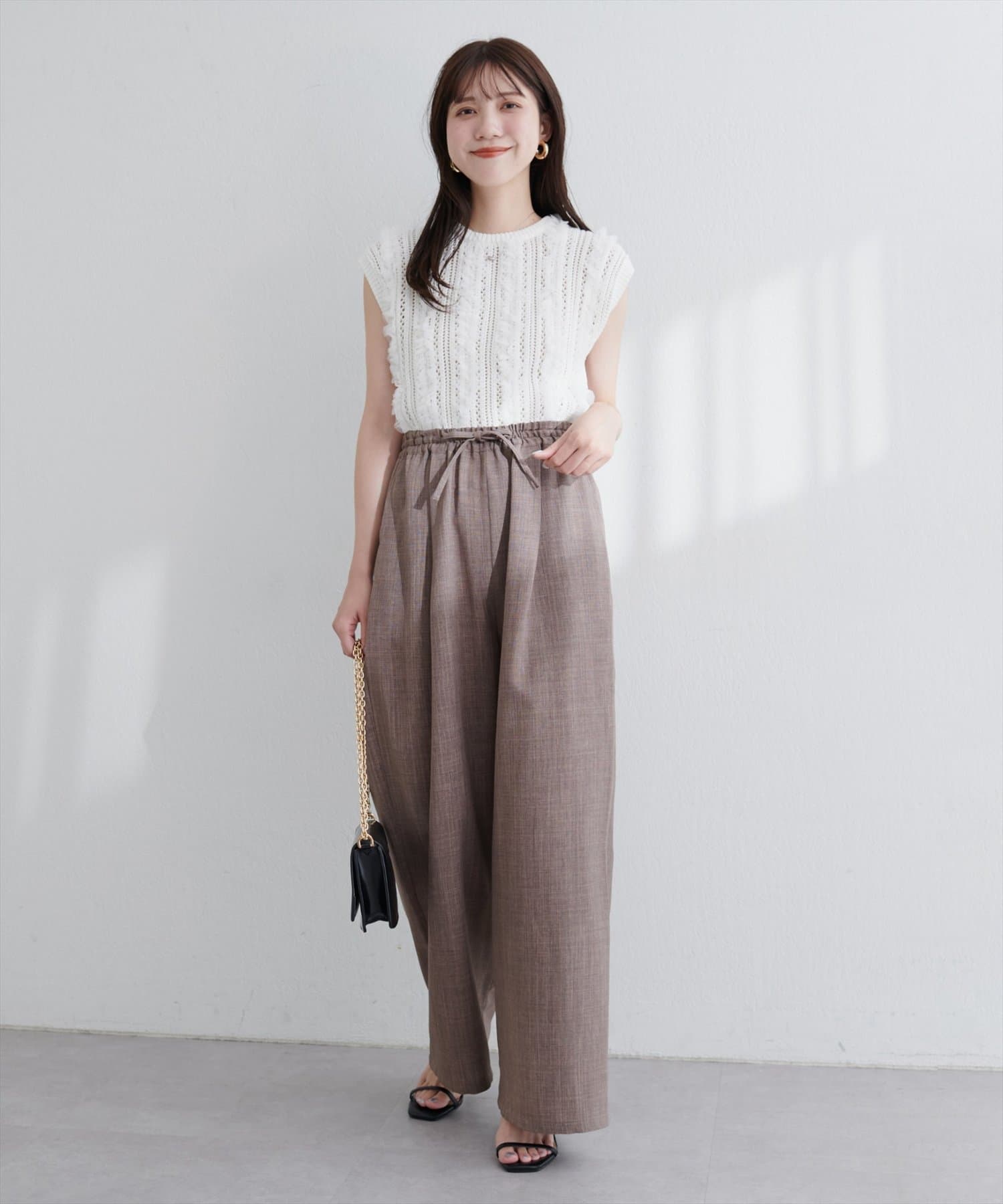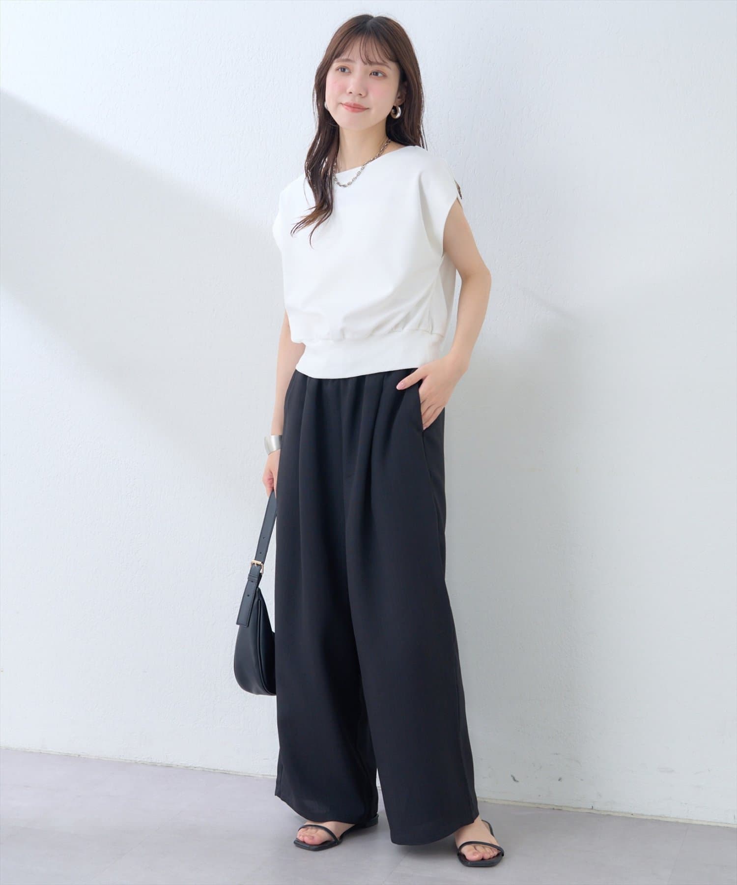 広がりすぎない絶妙なワイド感と、すとんと落ちる素材が、気になるレッグラインをカバーしつつ、スタイルアップ効果も叶えます。
