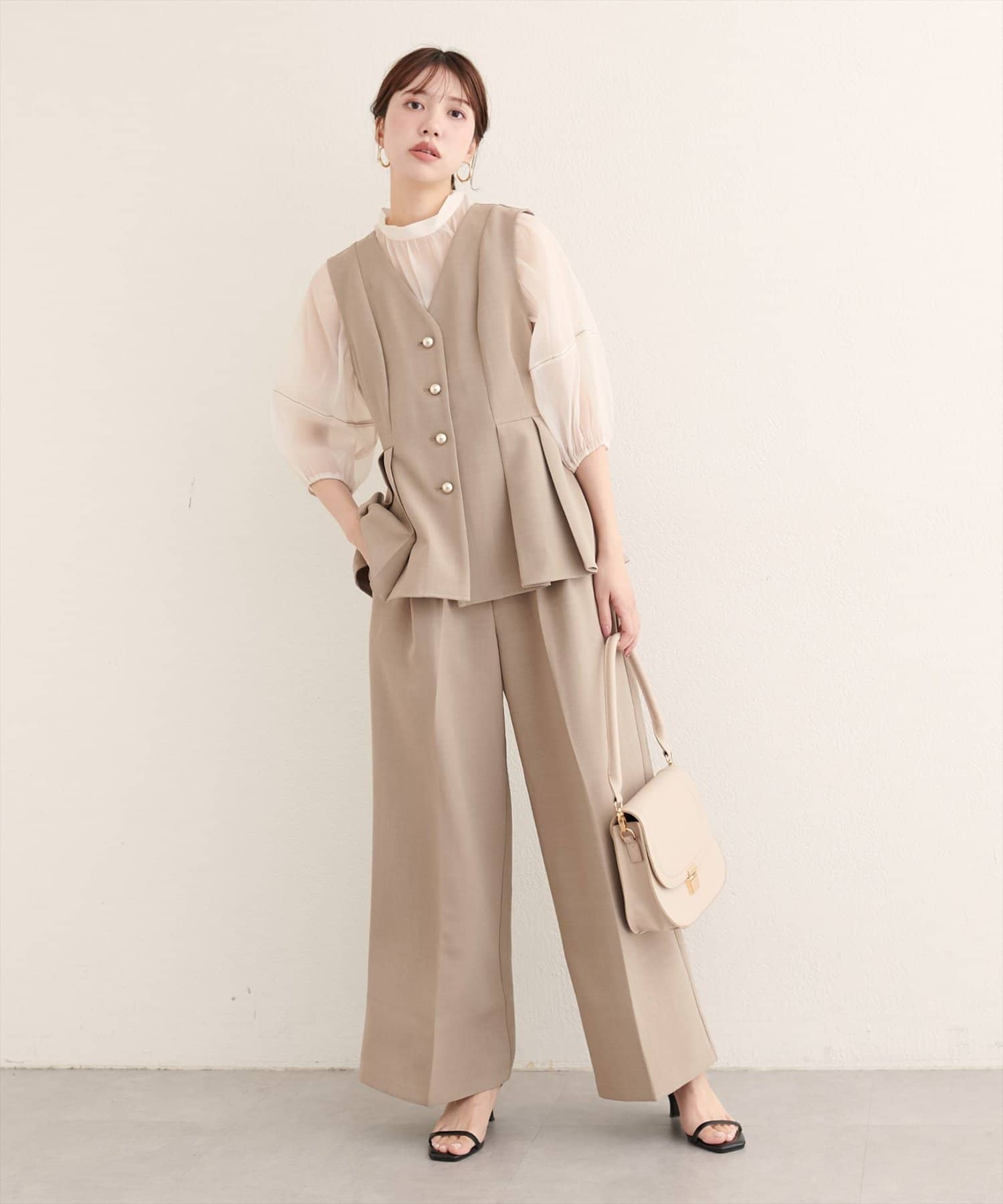 ブラウスやシャツと合わせて、きちんと感のあるオフィススタイルに。