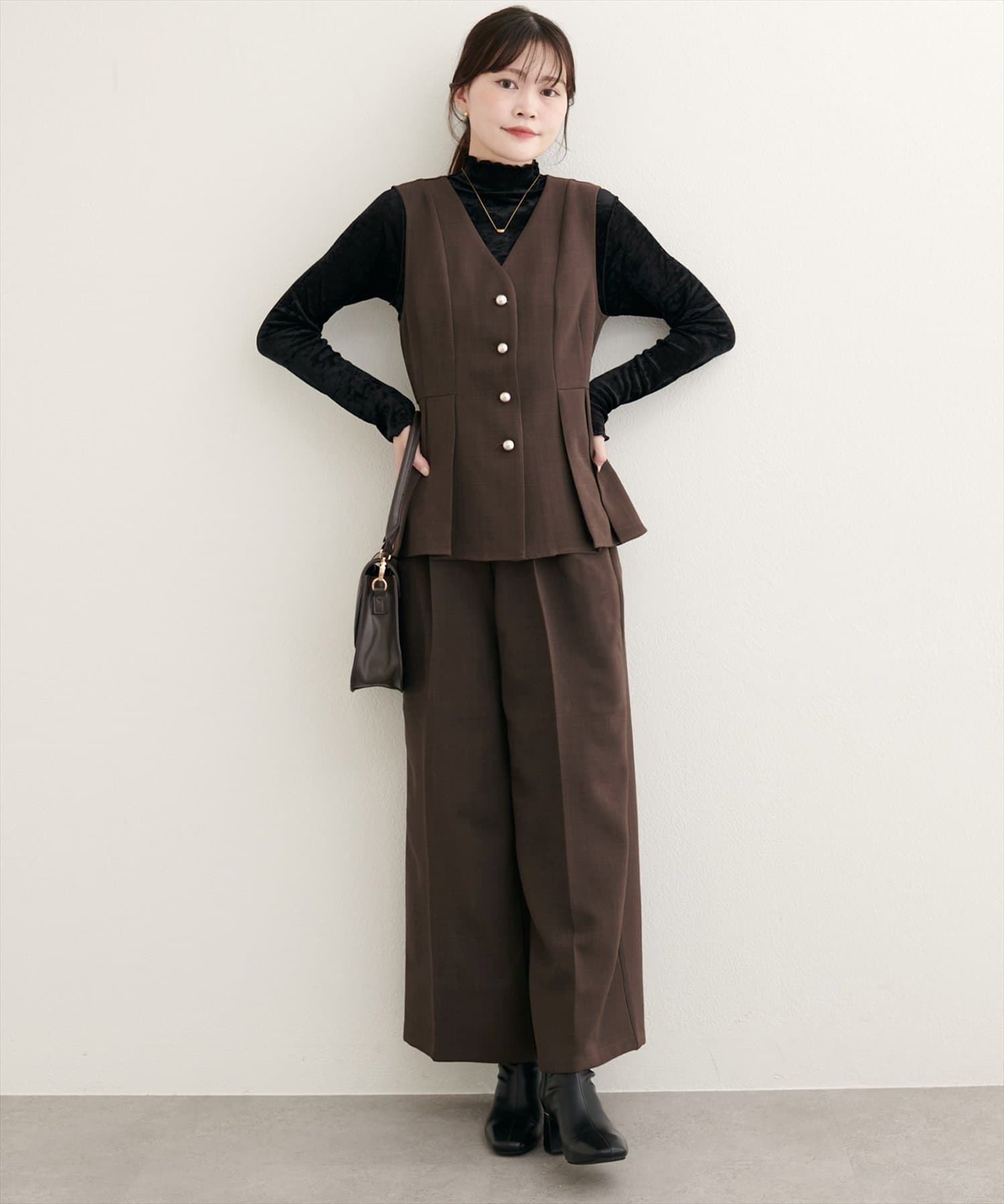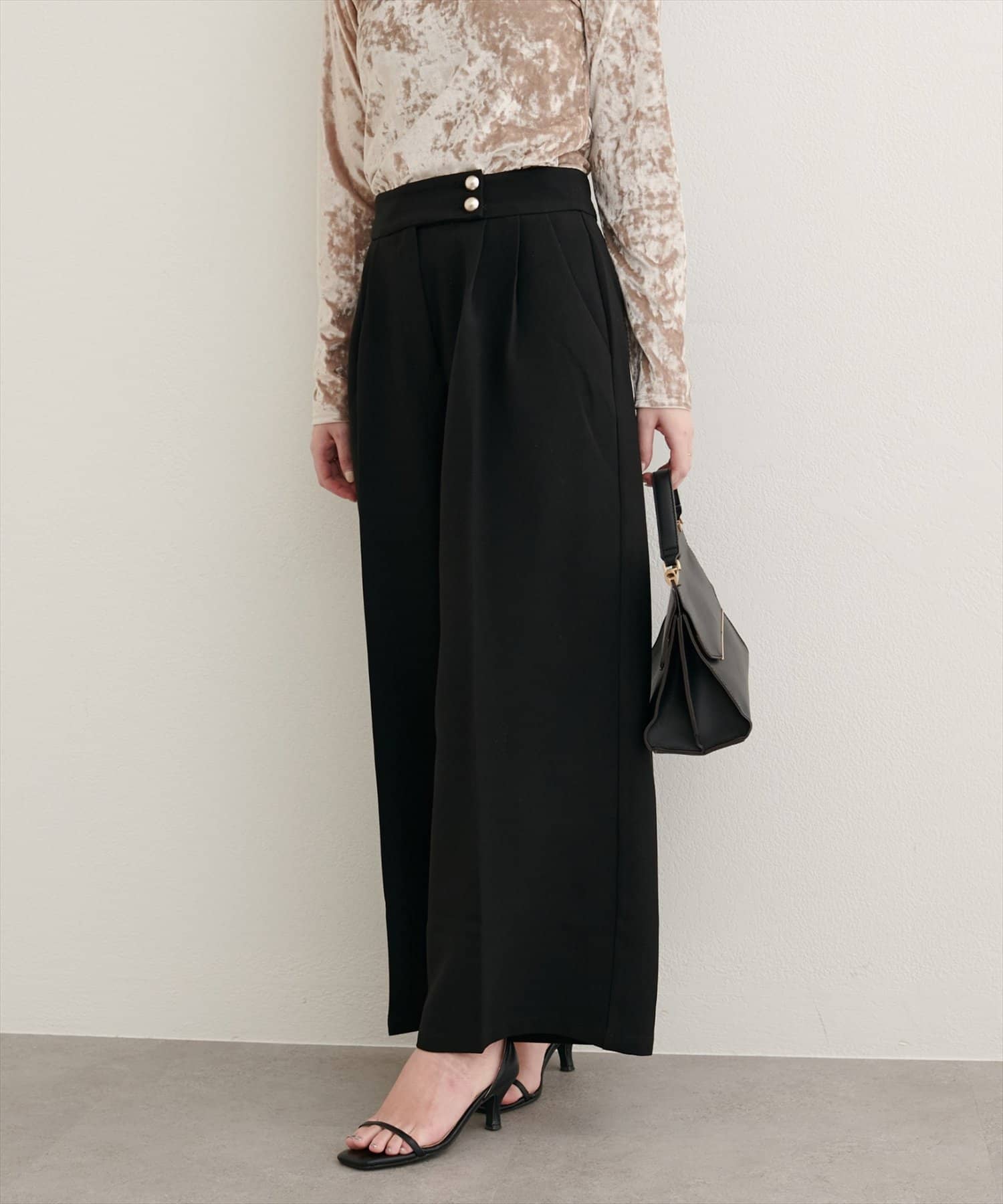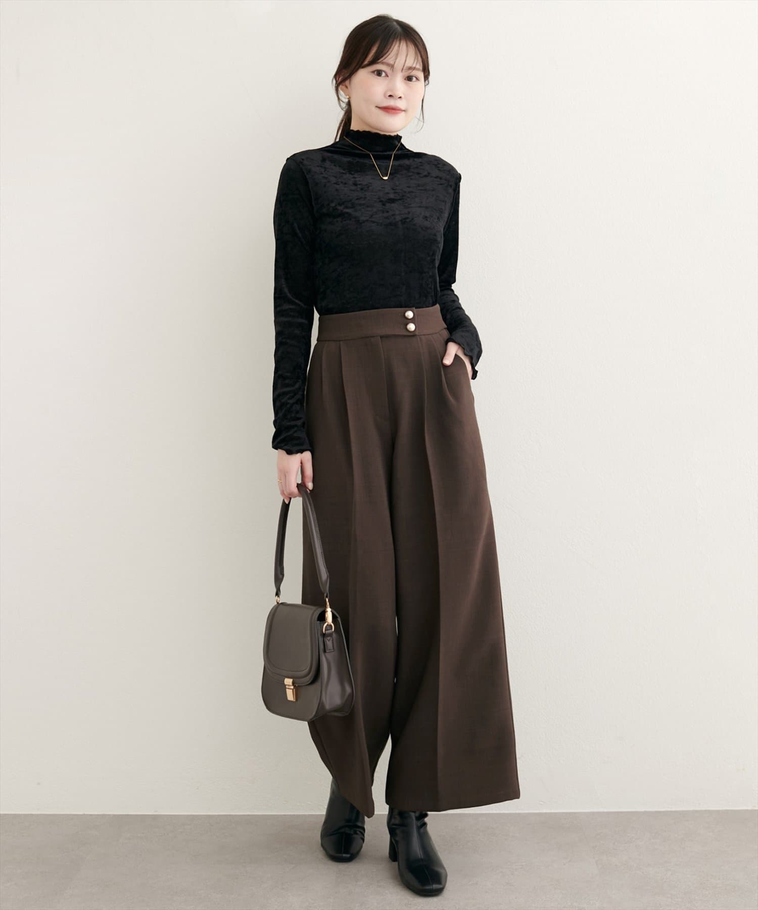 コーディネート全体を上品に引き締めます。リラックス感のあるワイドシルエットは、トレンド感たっぷり。