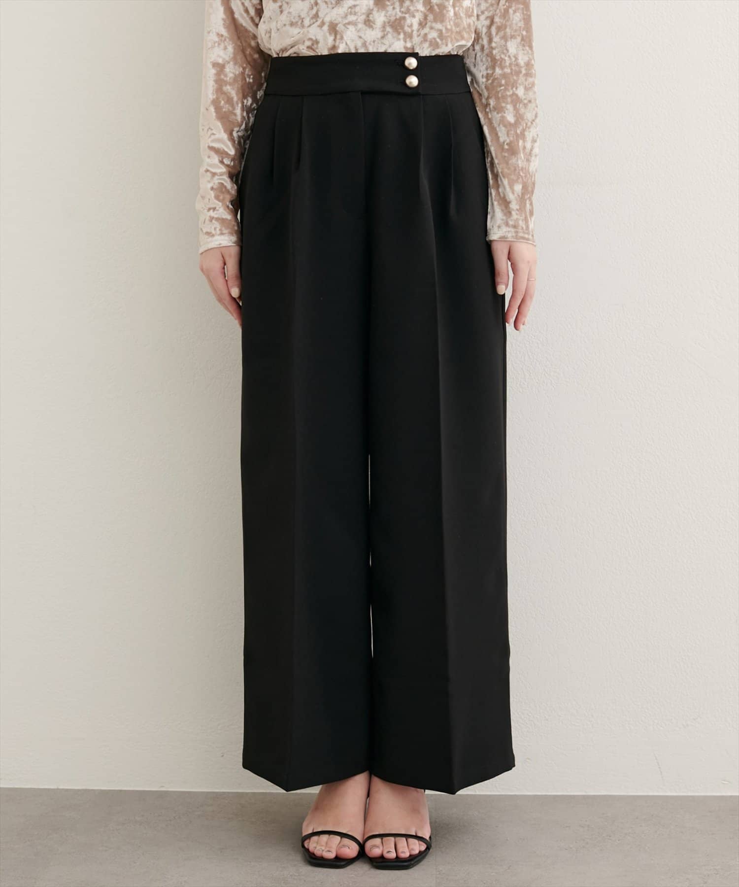 ウエスト部分にあしらわれた金釦が、さりげないアクセント。