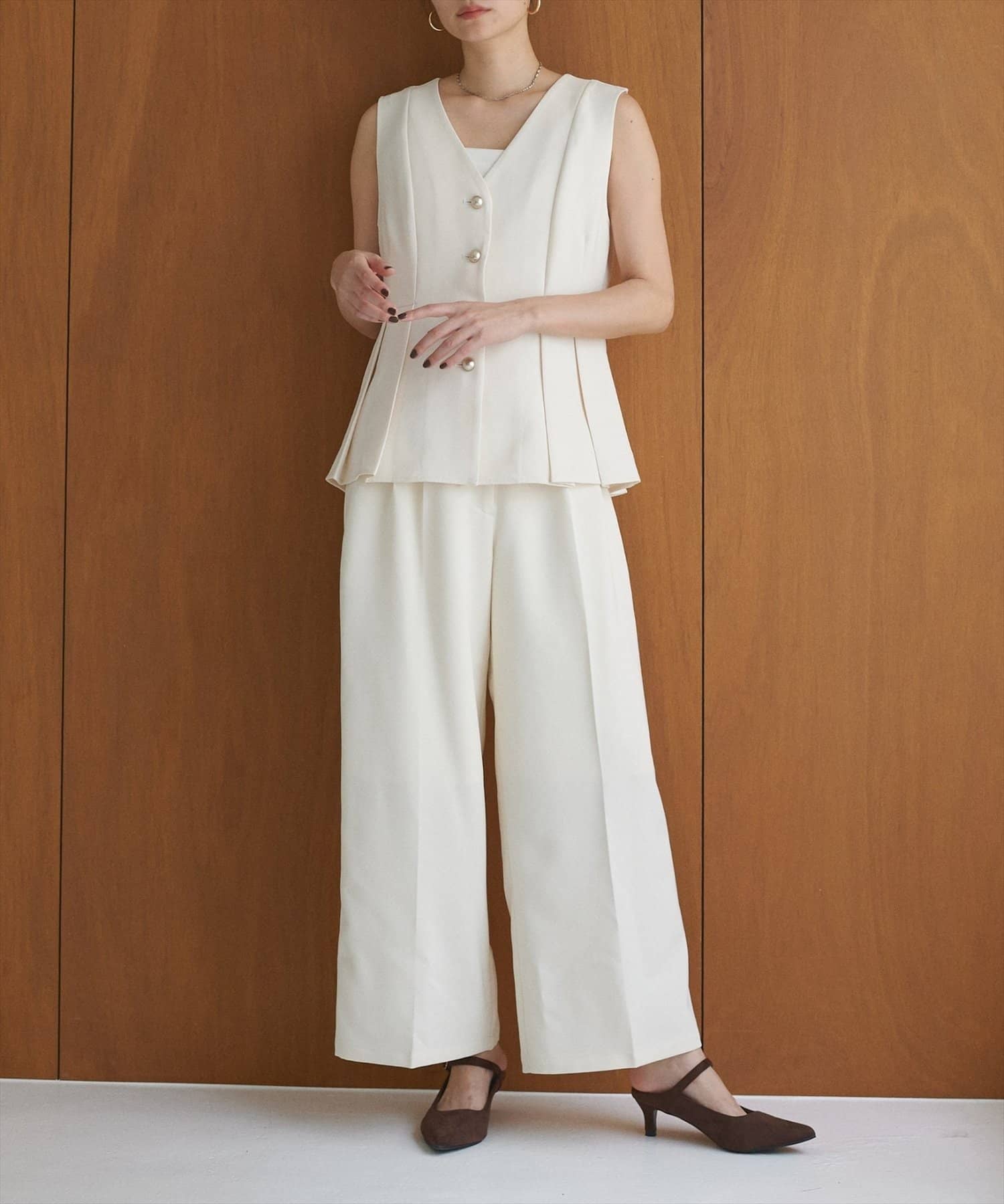 【natural couture】釦タックワイドパンツ
