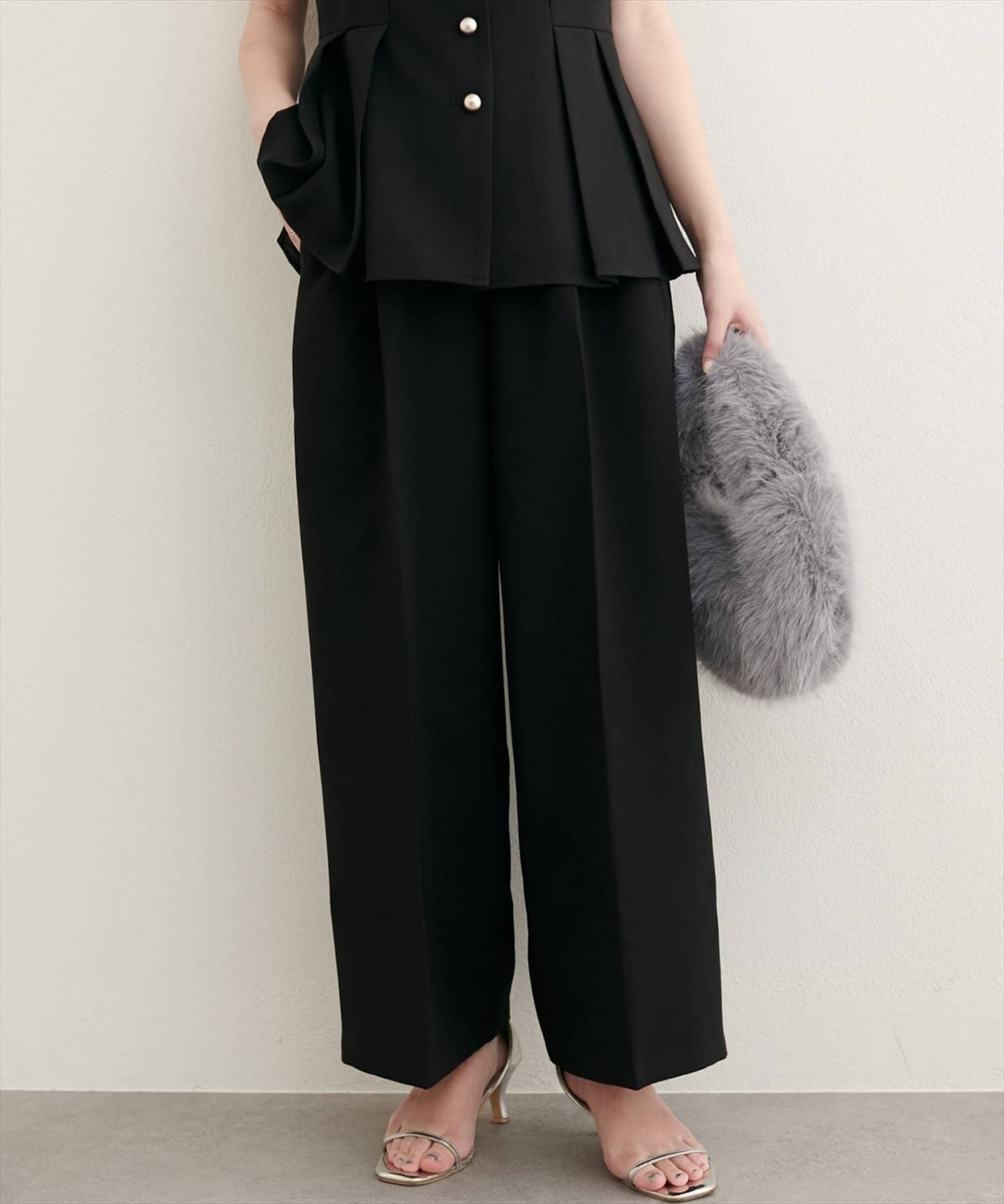 【WEB限定】金釦タックワイドパンツ
