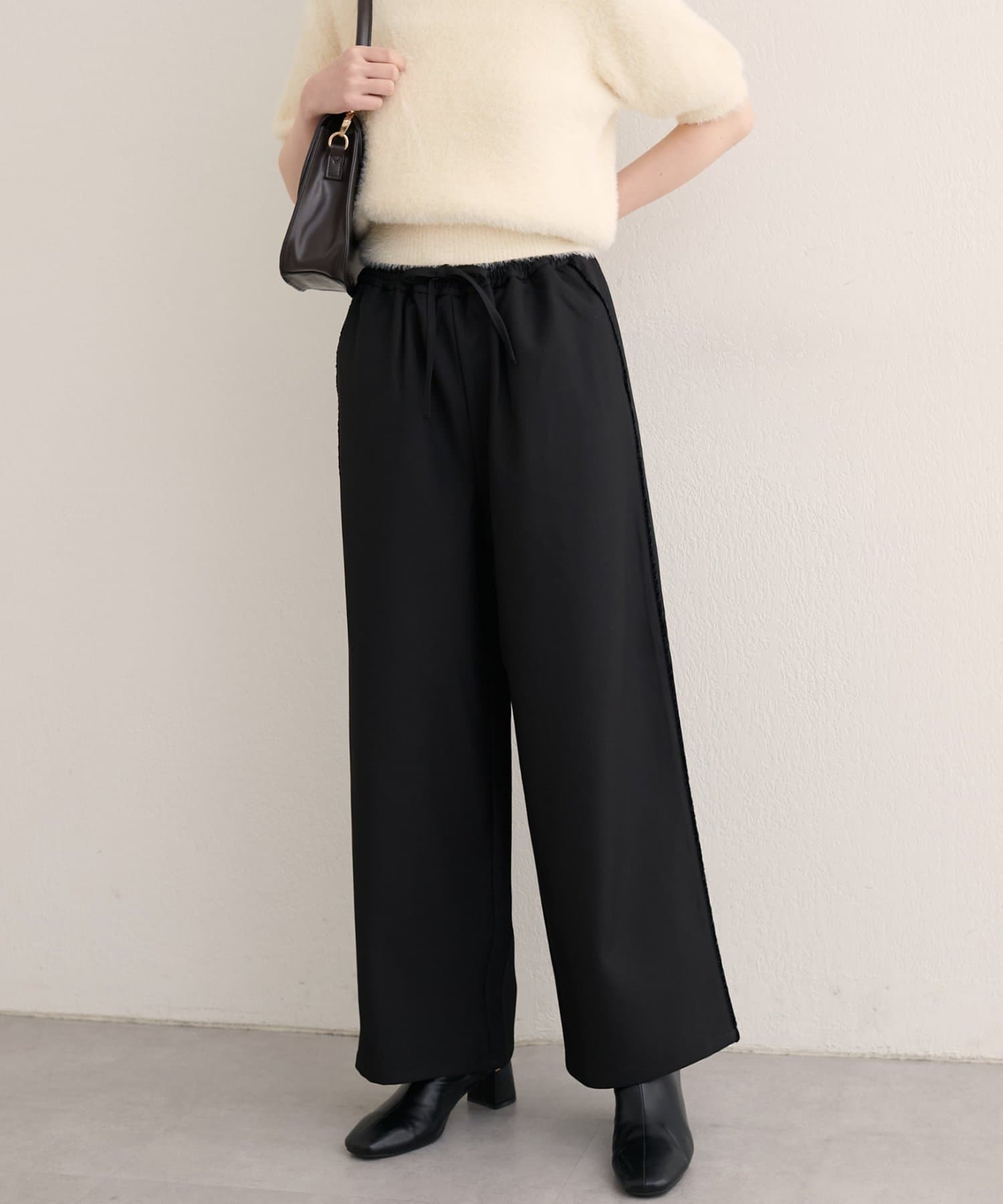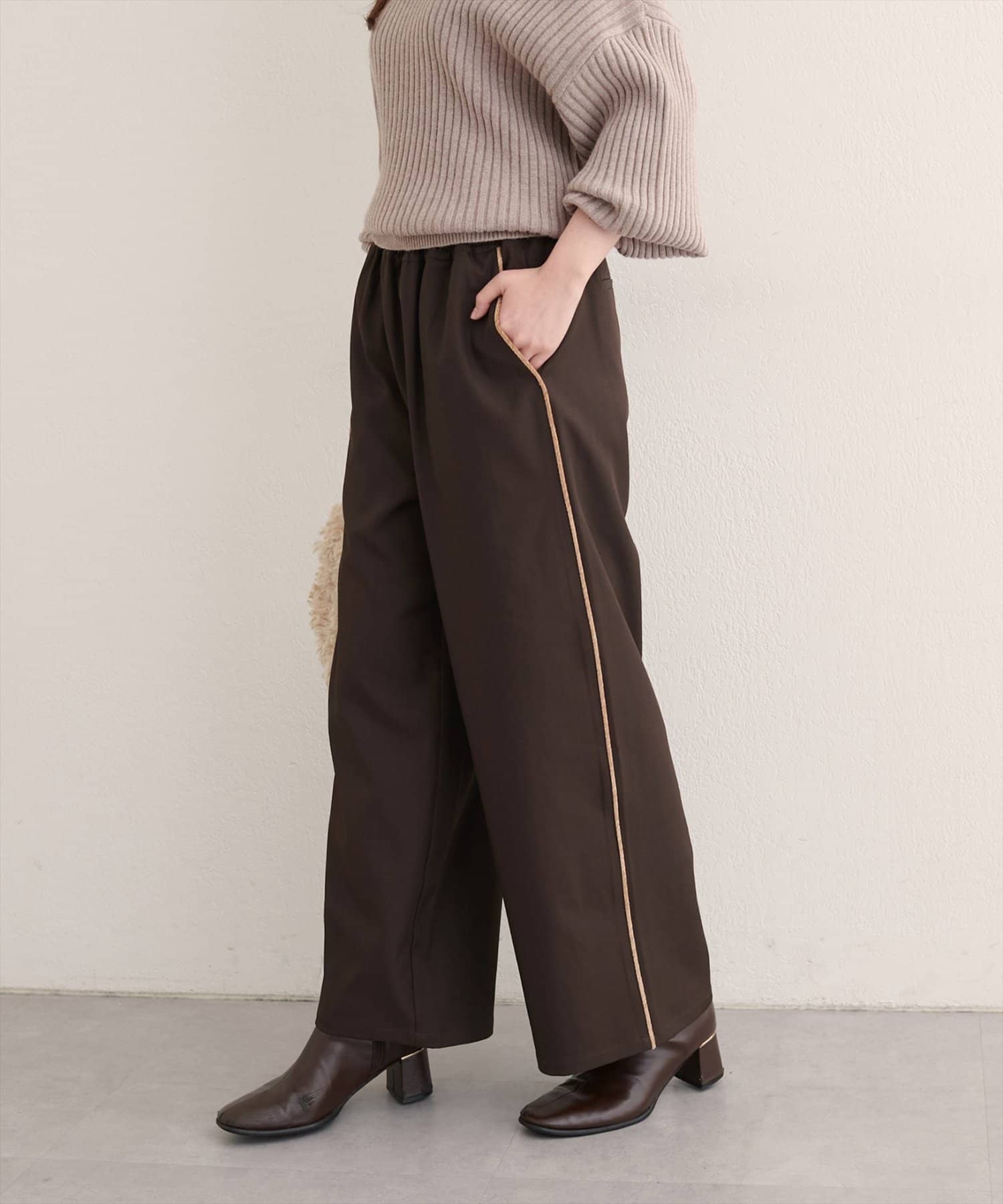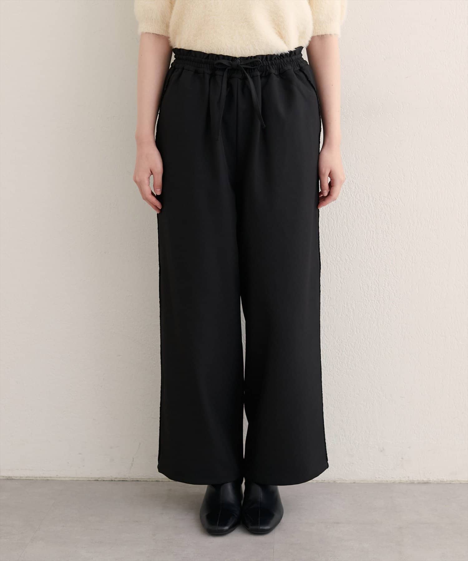 サイドにあしらわれた繊細なラインが魅力のパンツ。