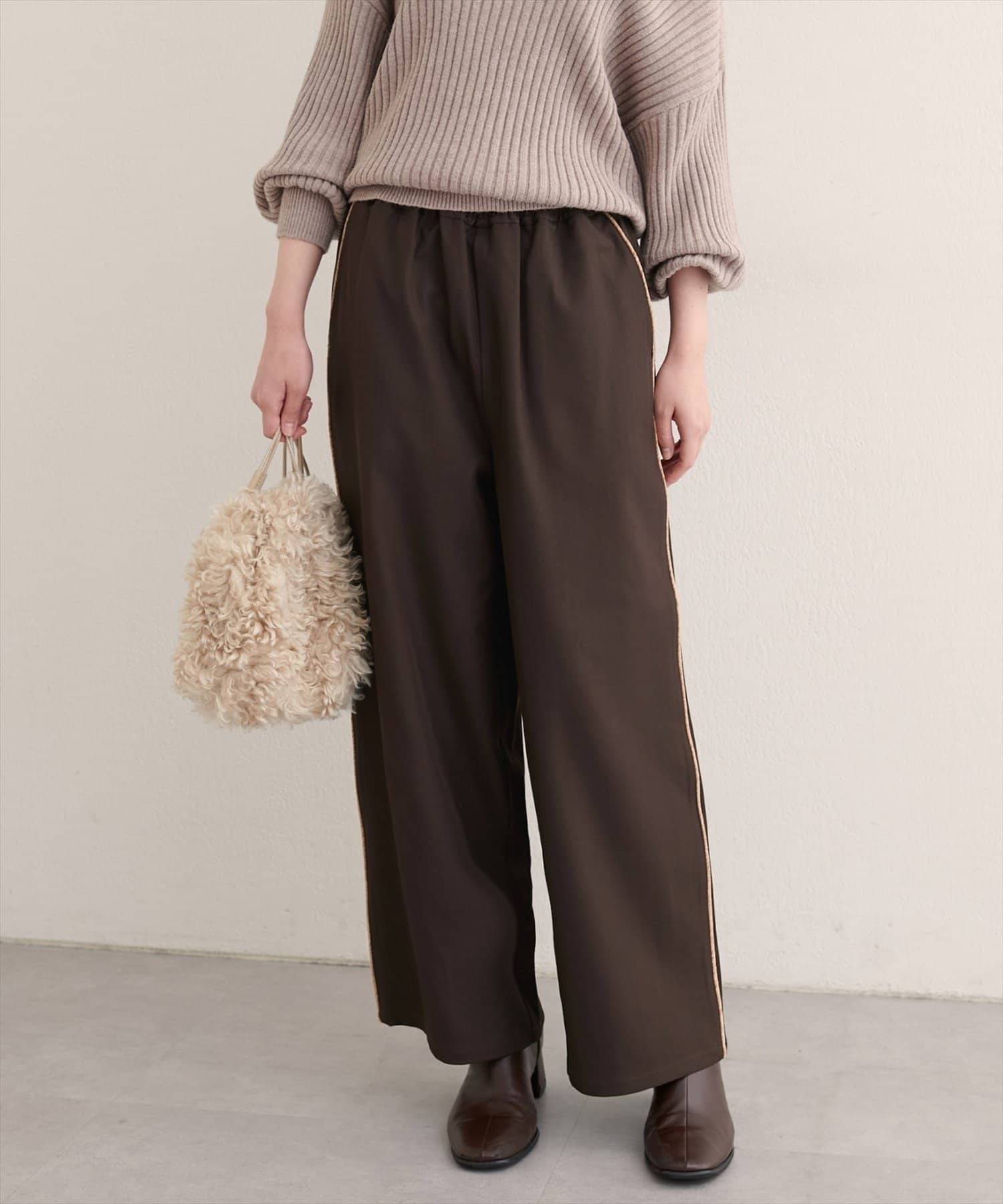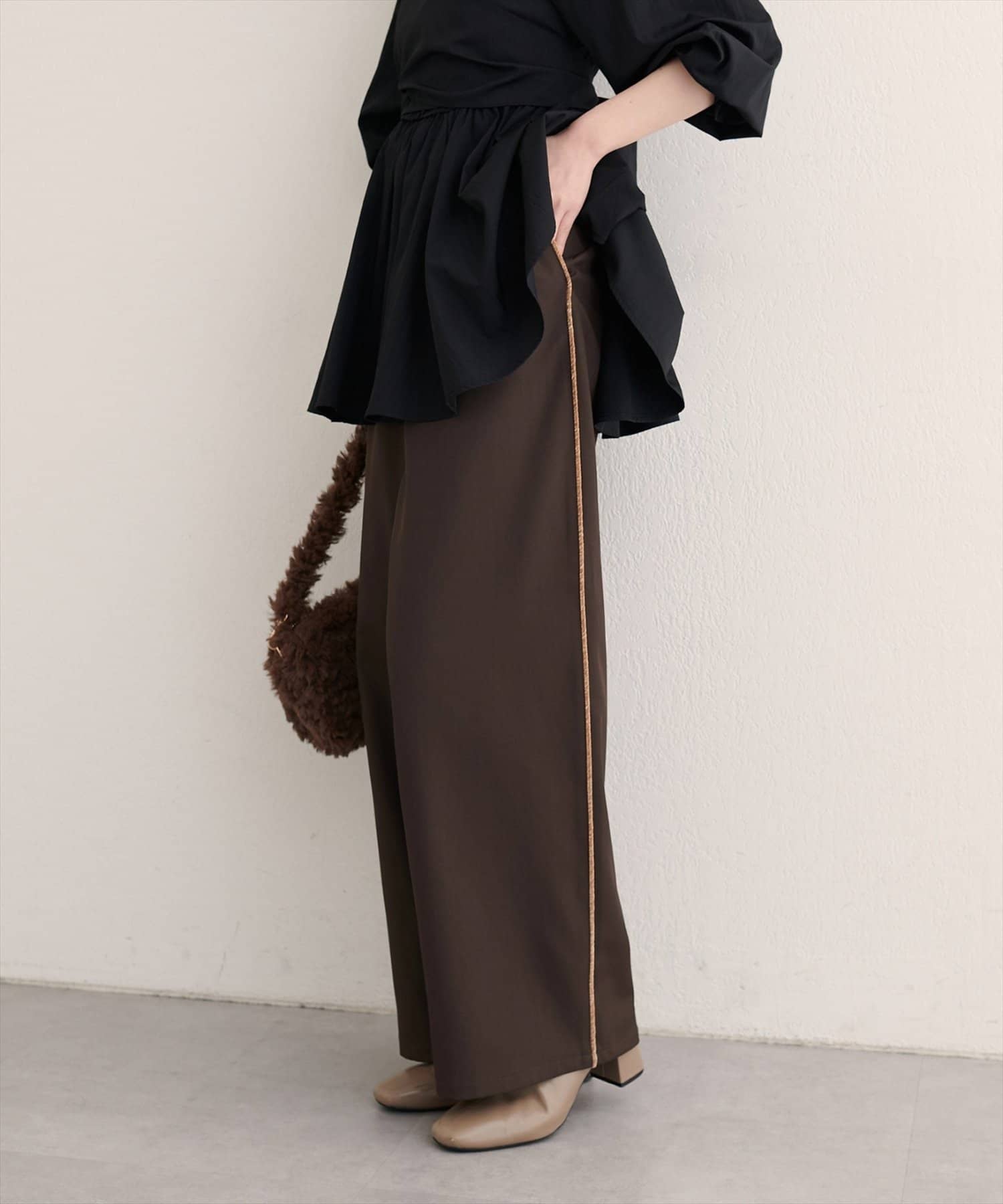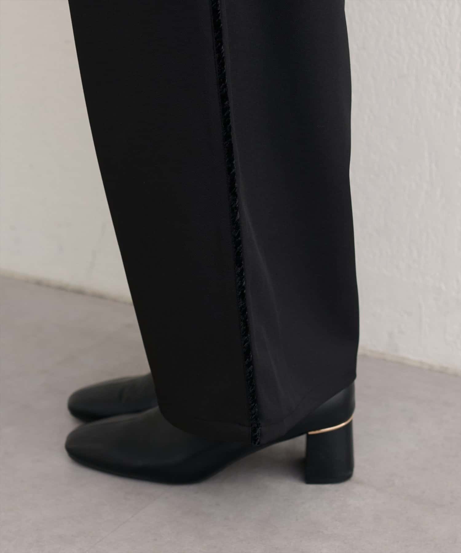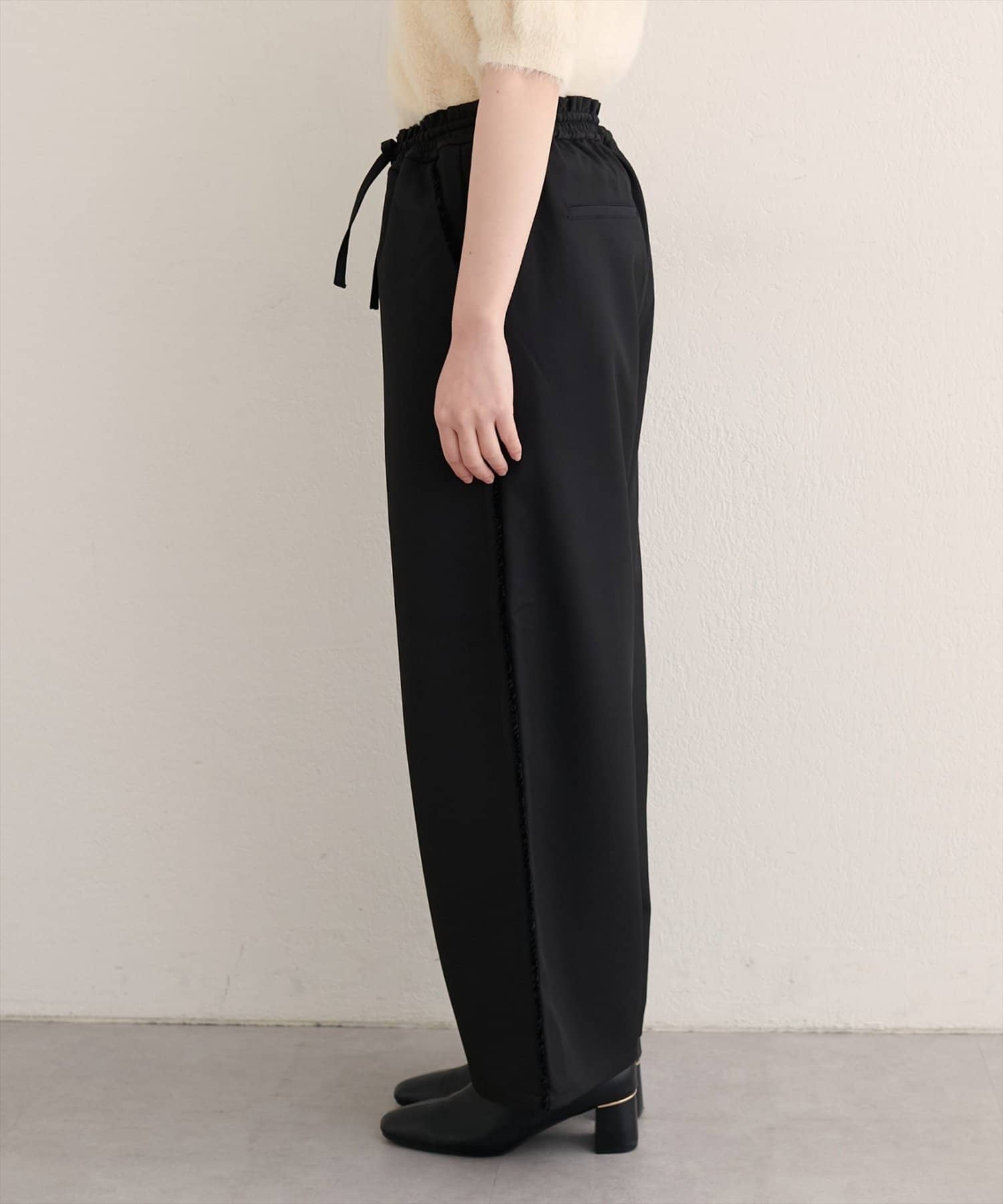サイドにあしらわれた繊細なラインが魅力のパンツ。