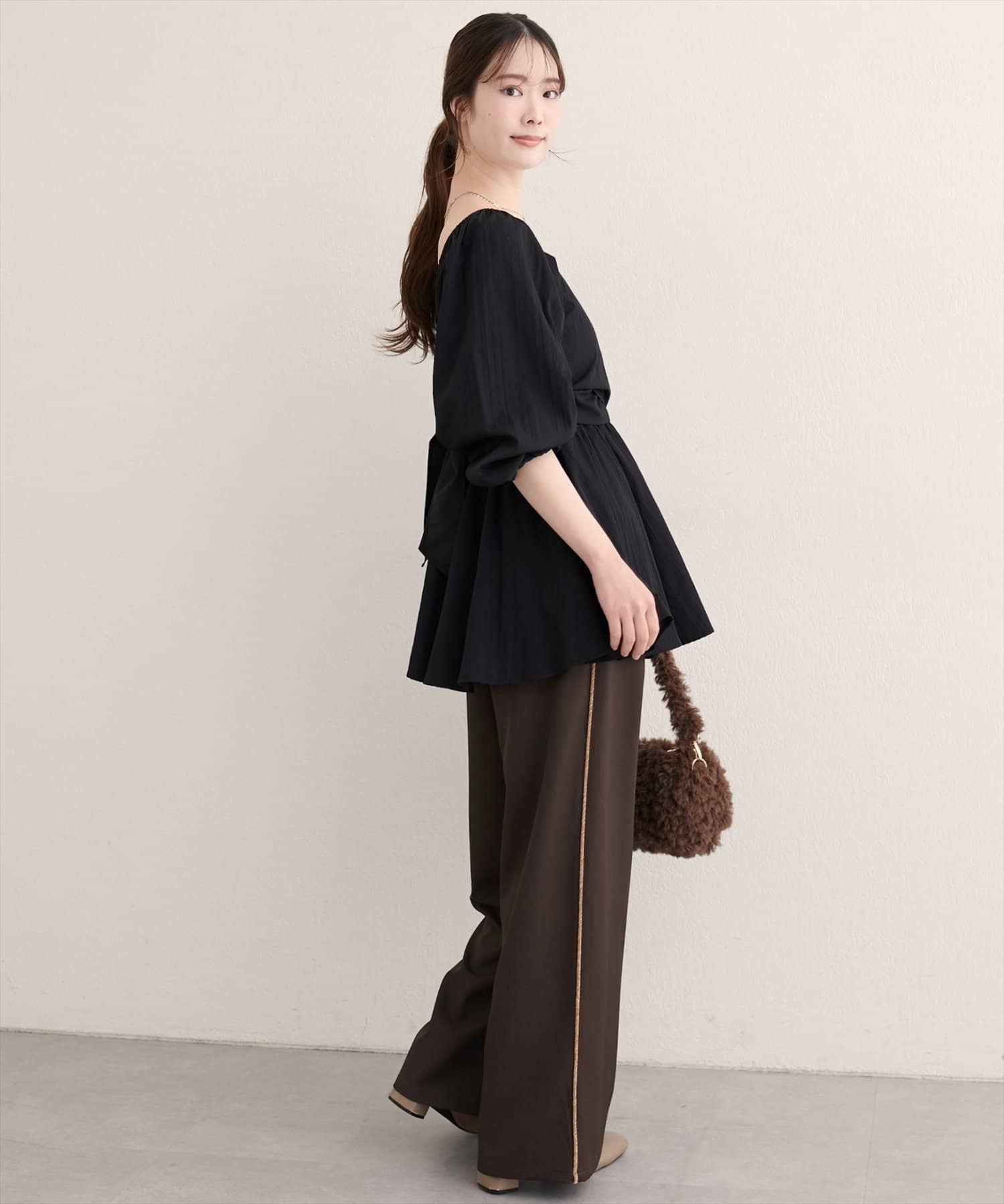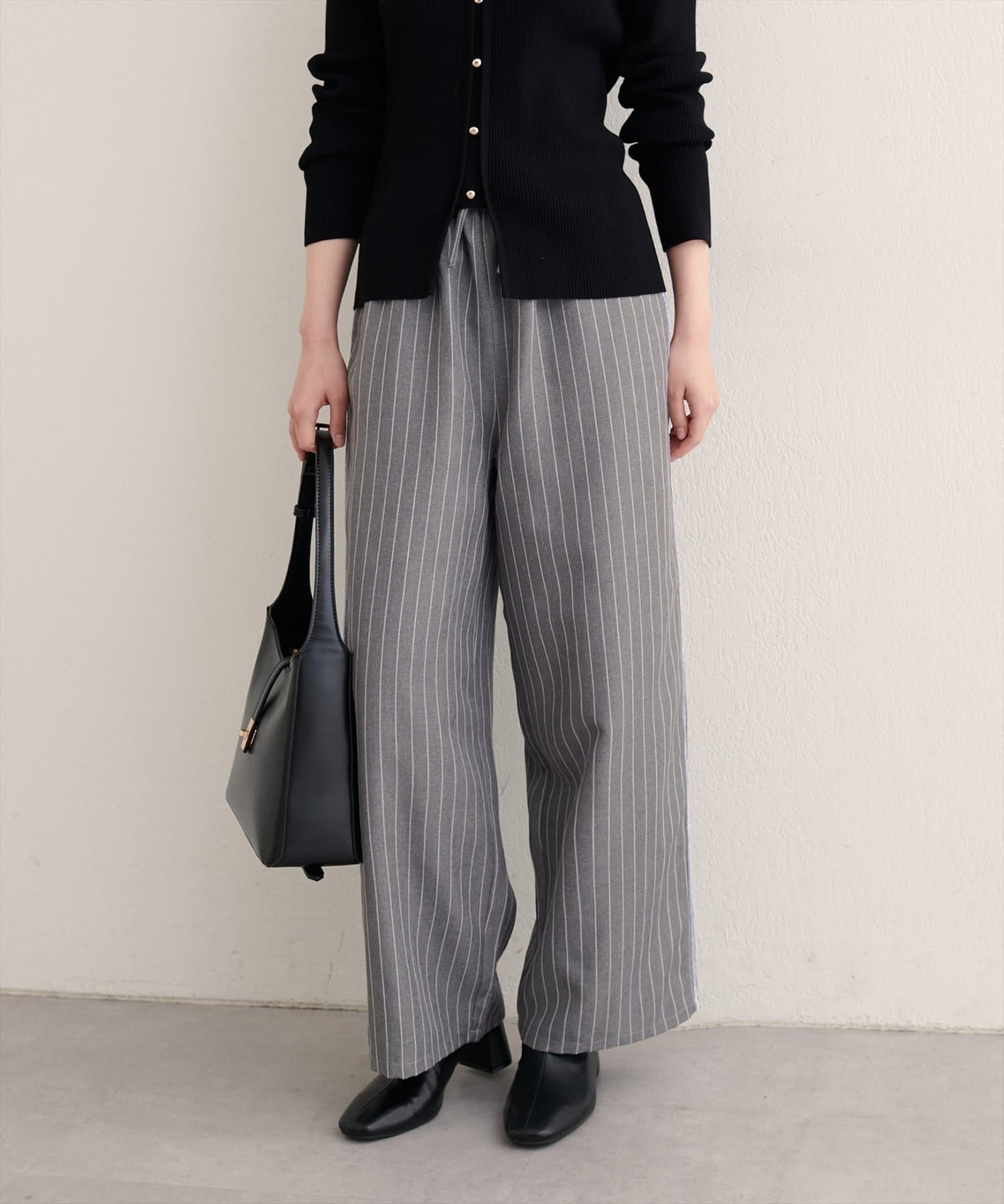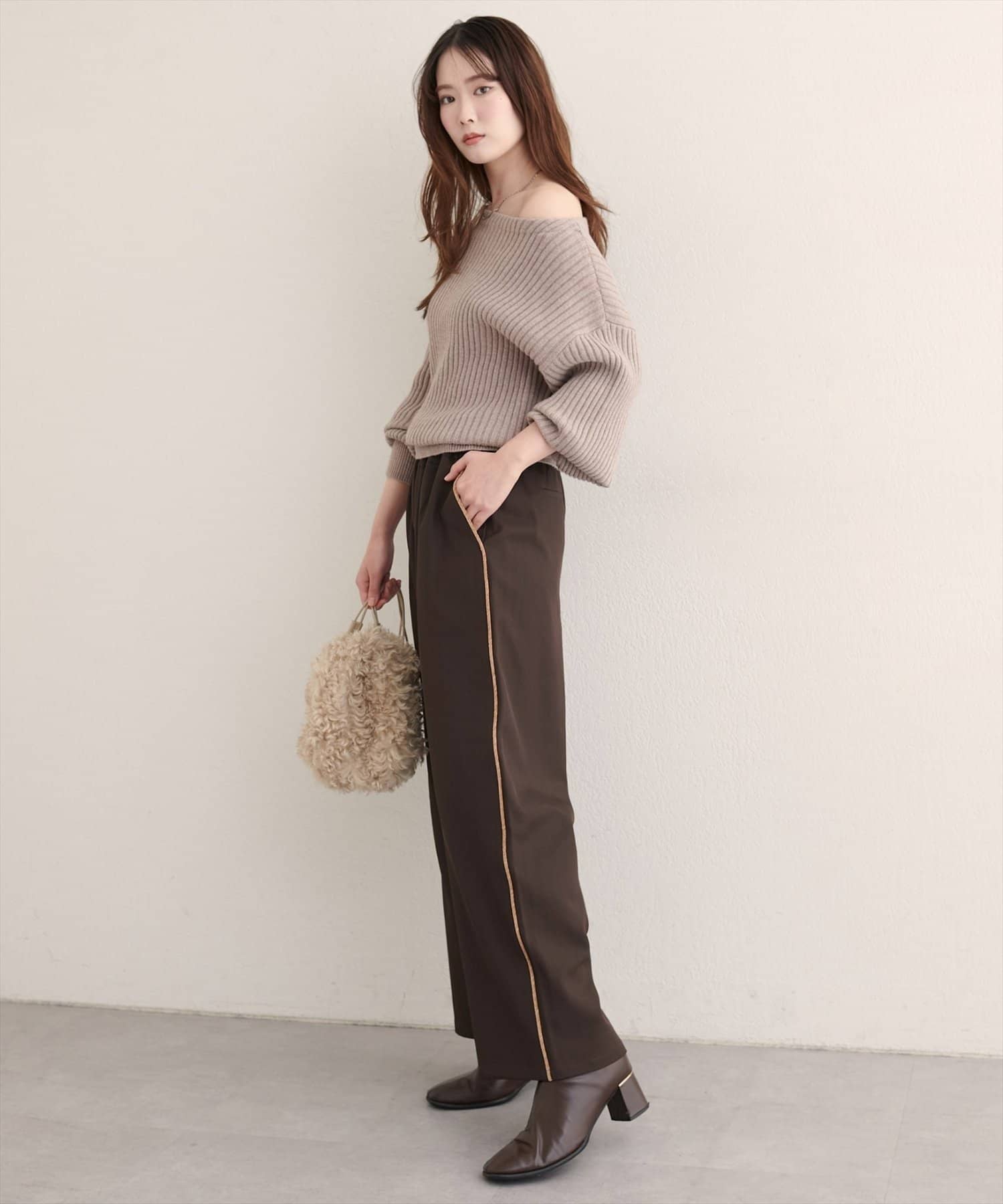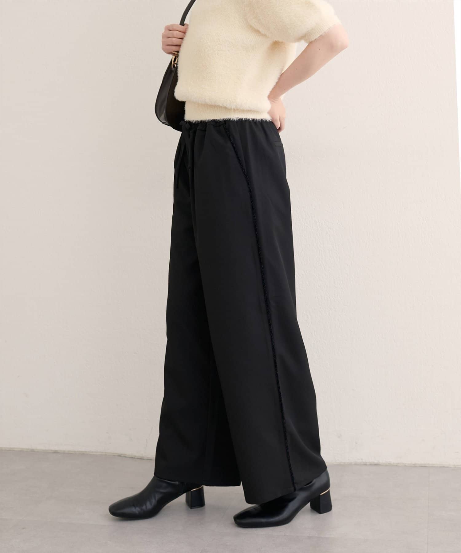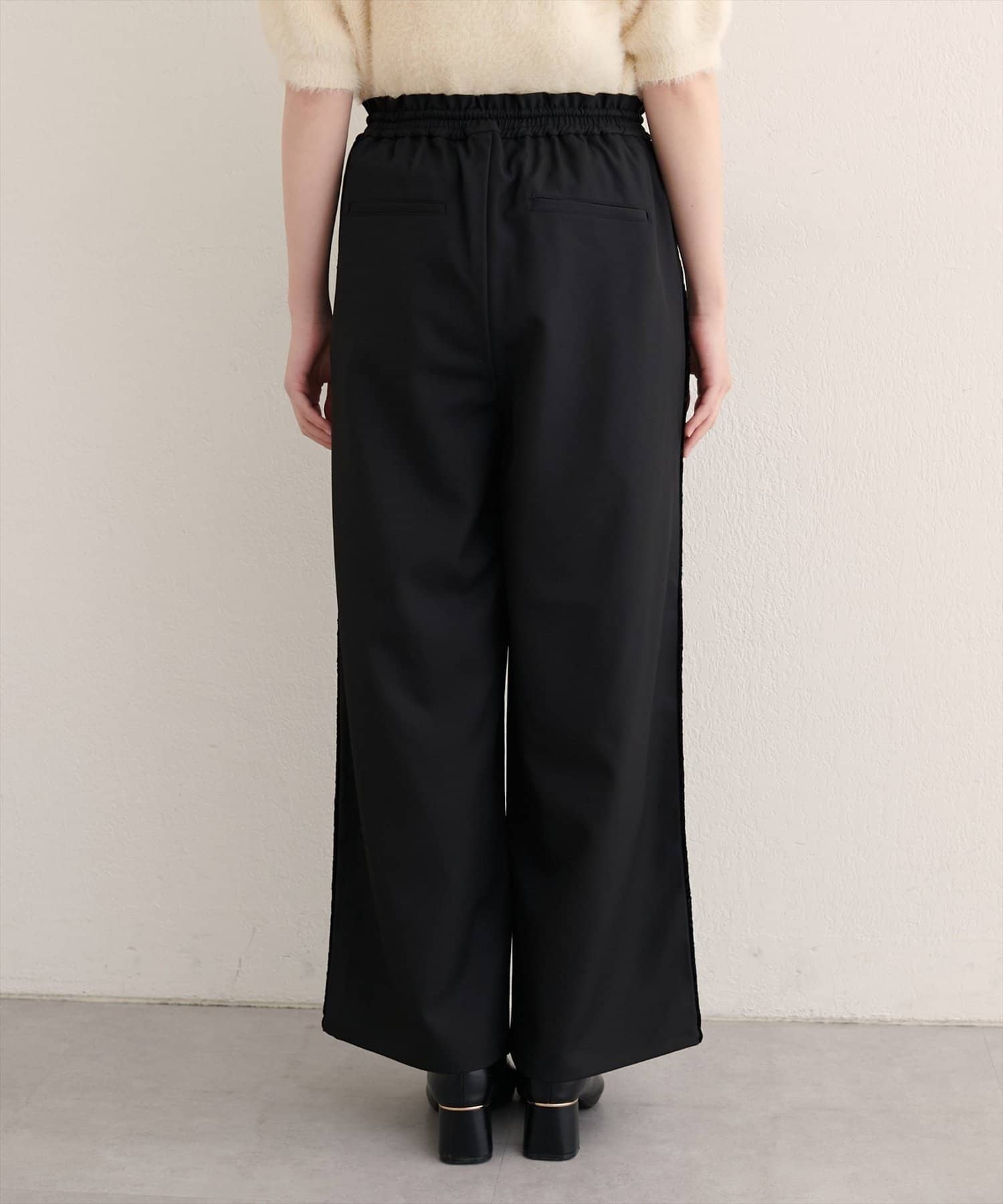 サイドにあしらわれた繊細なラインが魅力のパンツ。