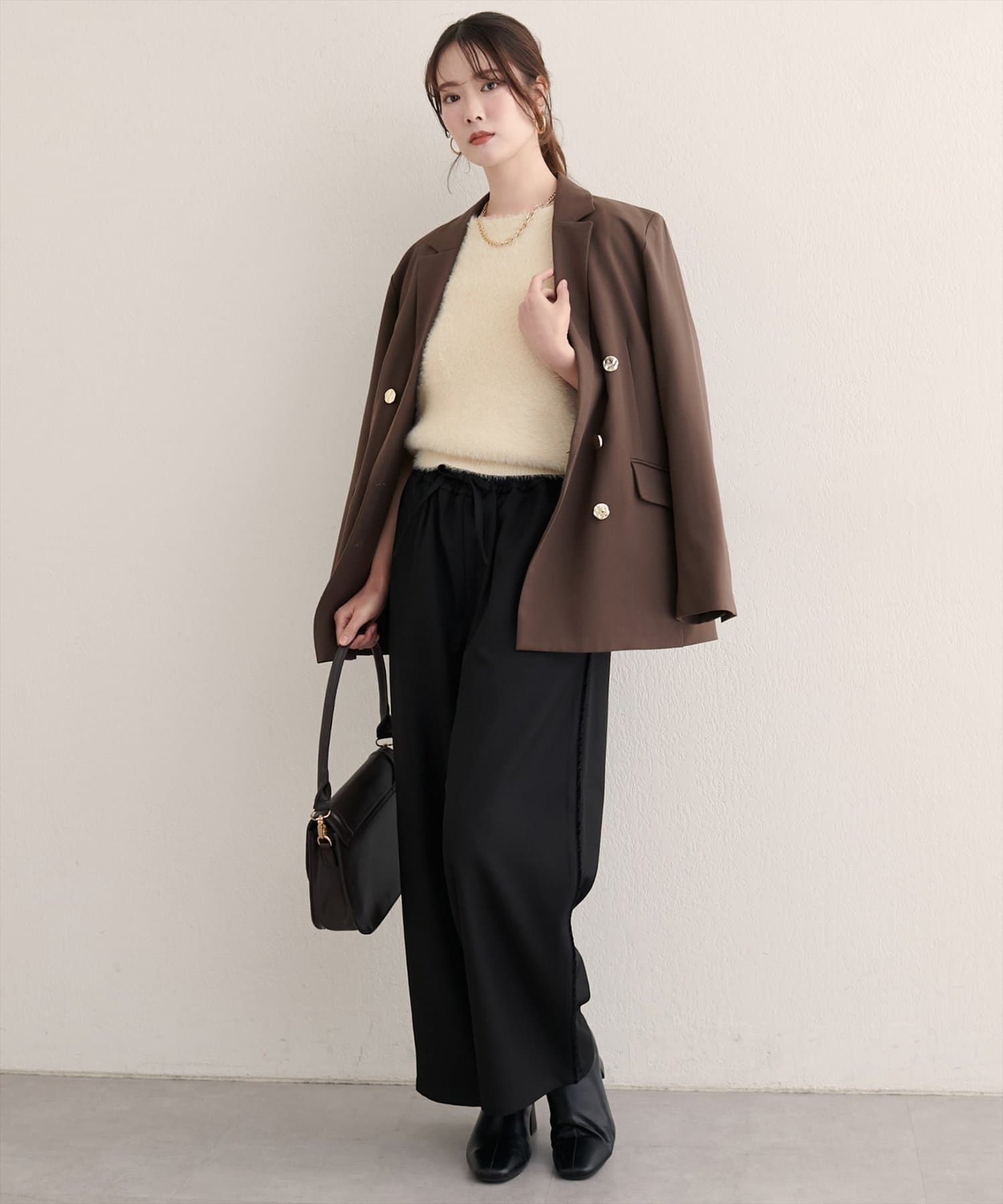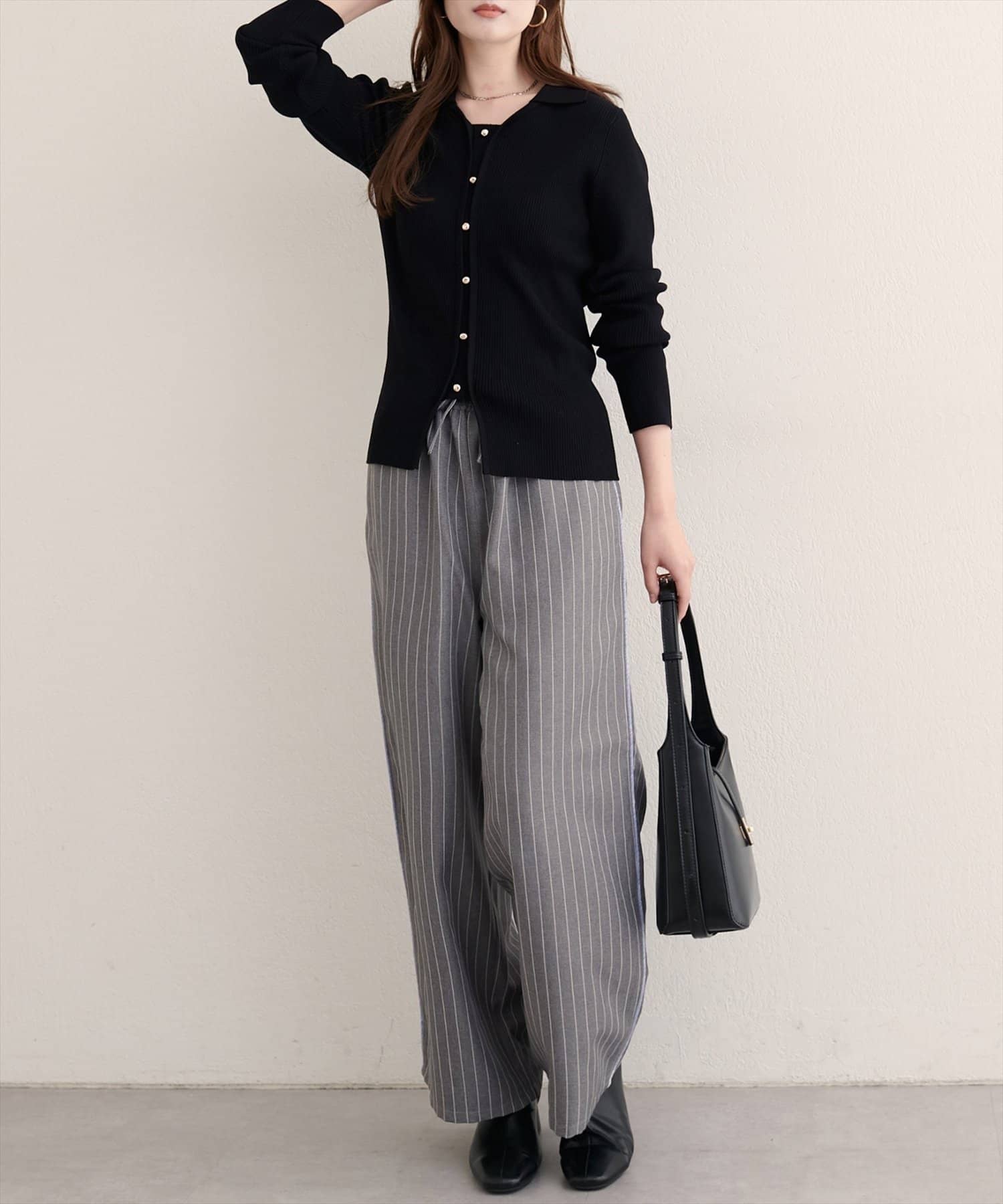 ブラウスやシャツと合わせれば、オフィスにも対応できるきちんと感を演出できます。