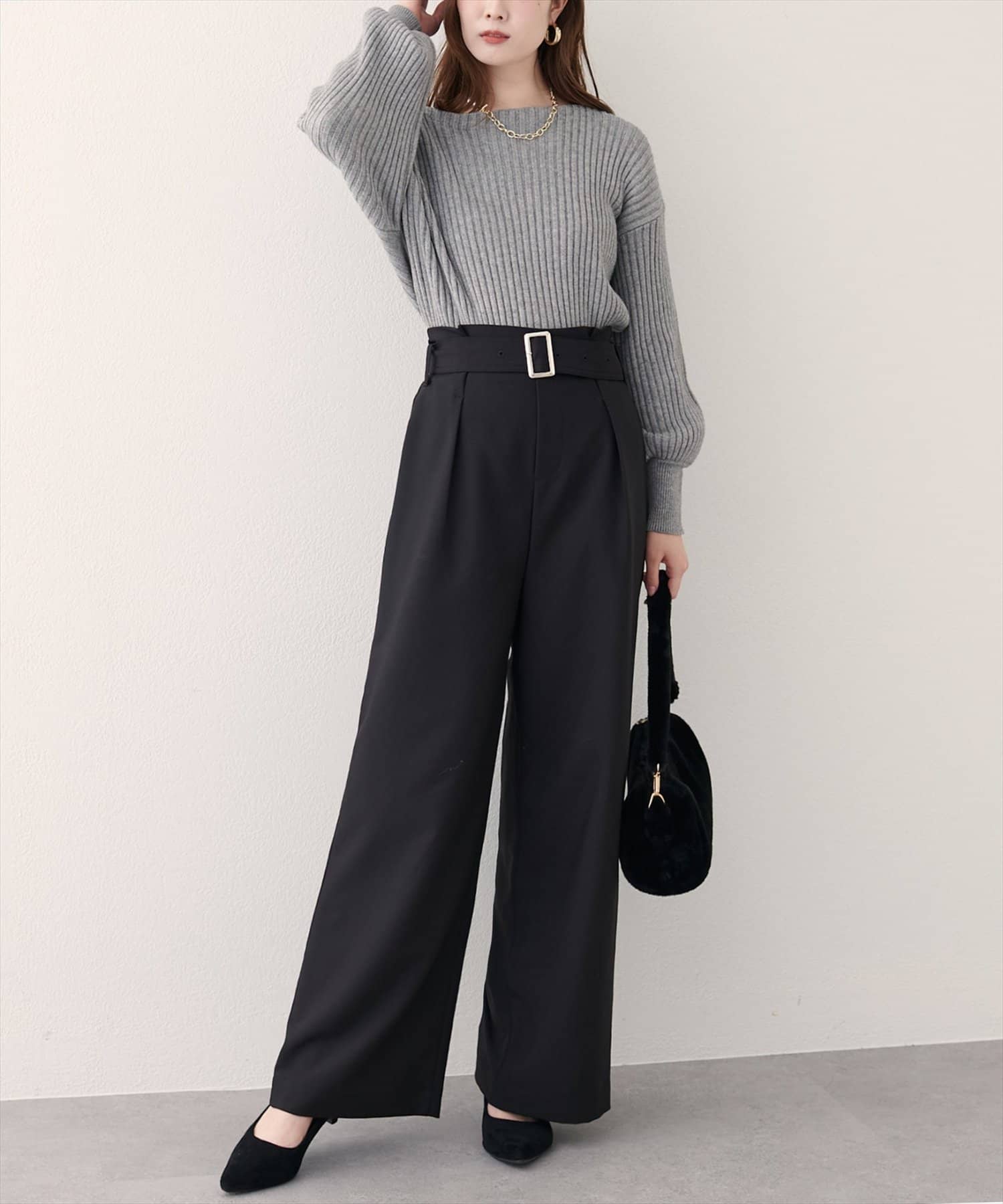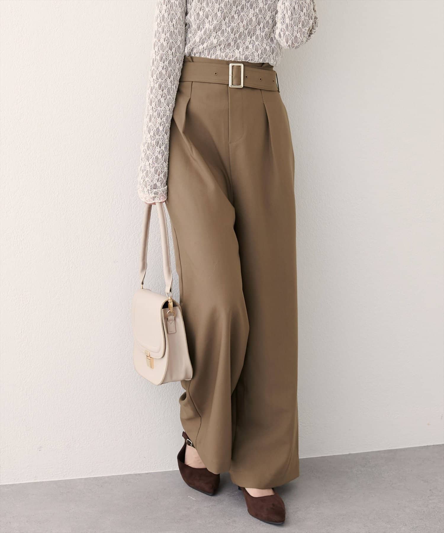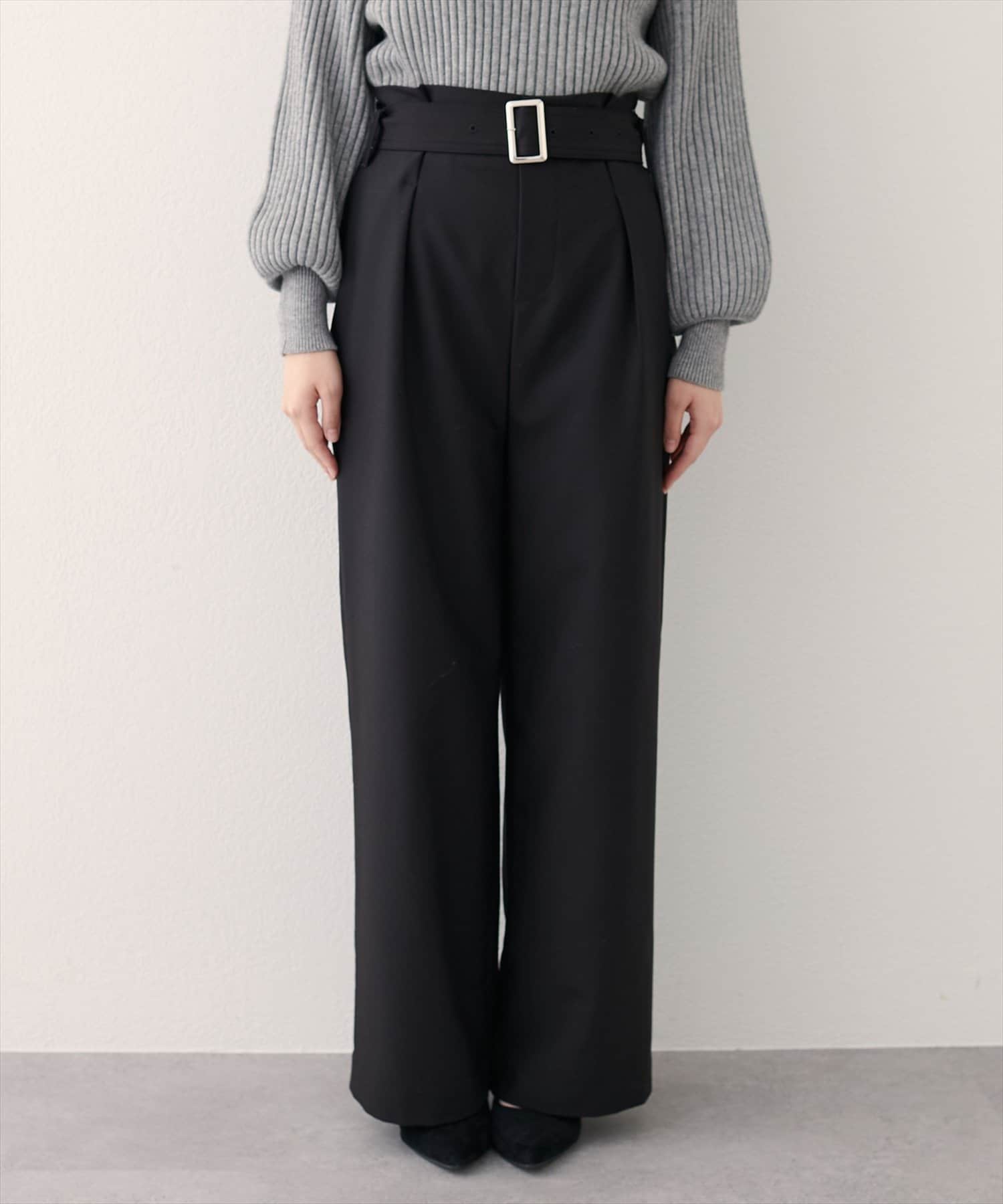 バックルベルト付きタックパンツ