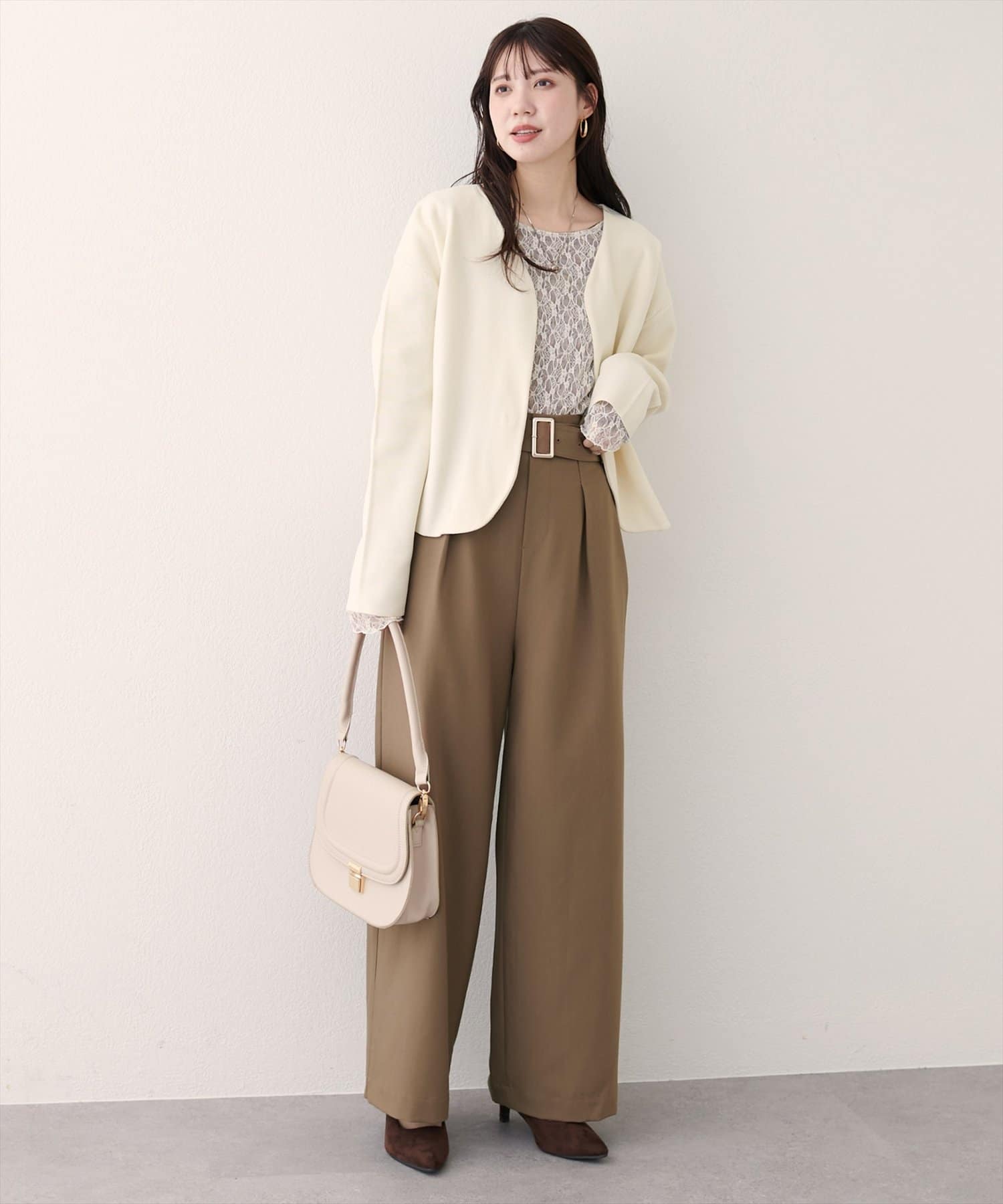 ジャケットやカーディガンを羽織れば、より上品で洗練された印象になります。