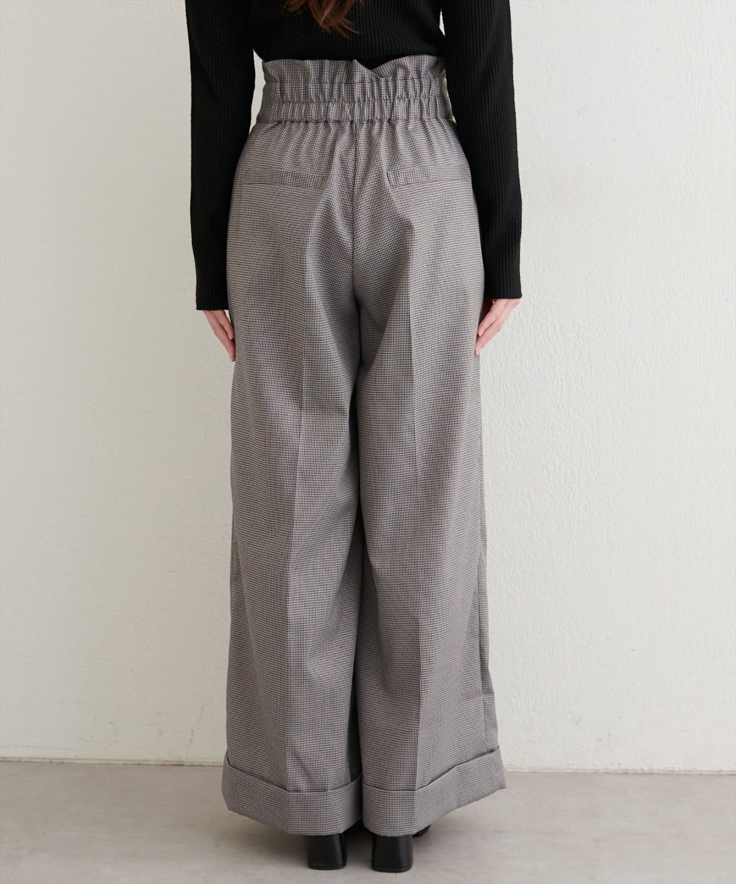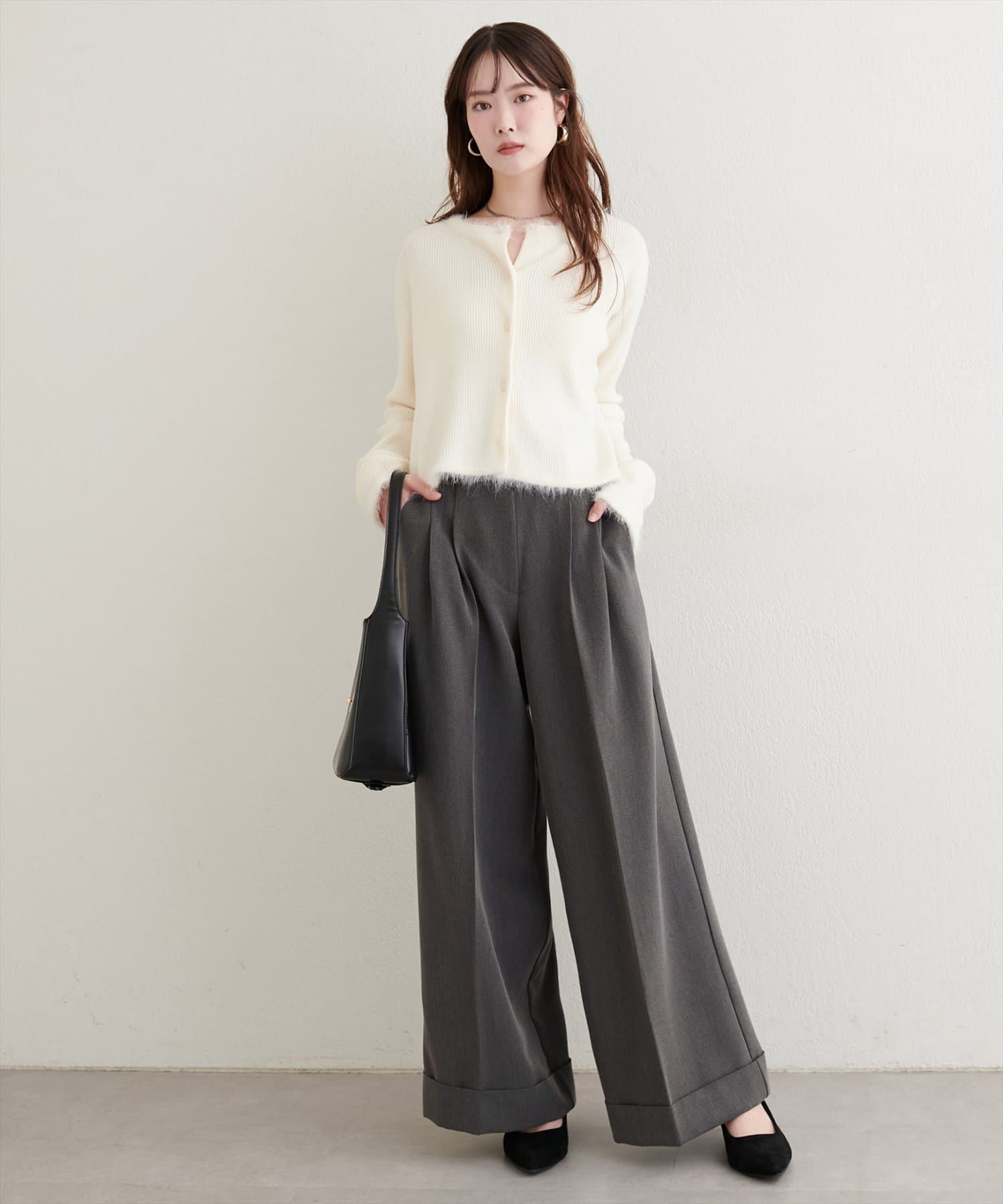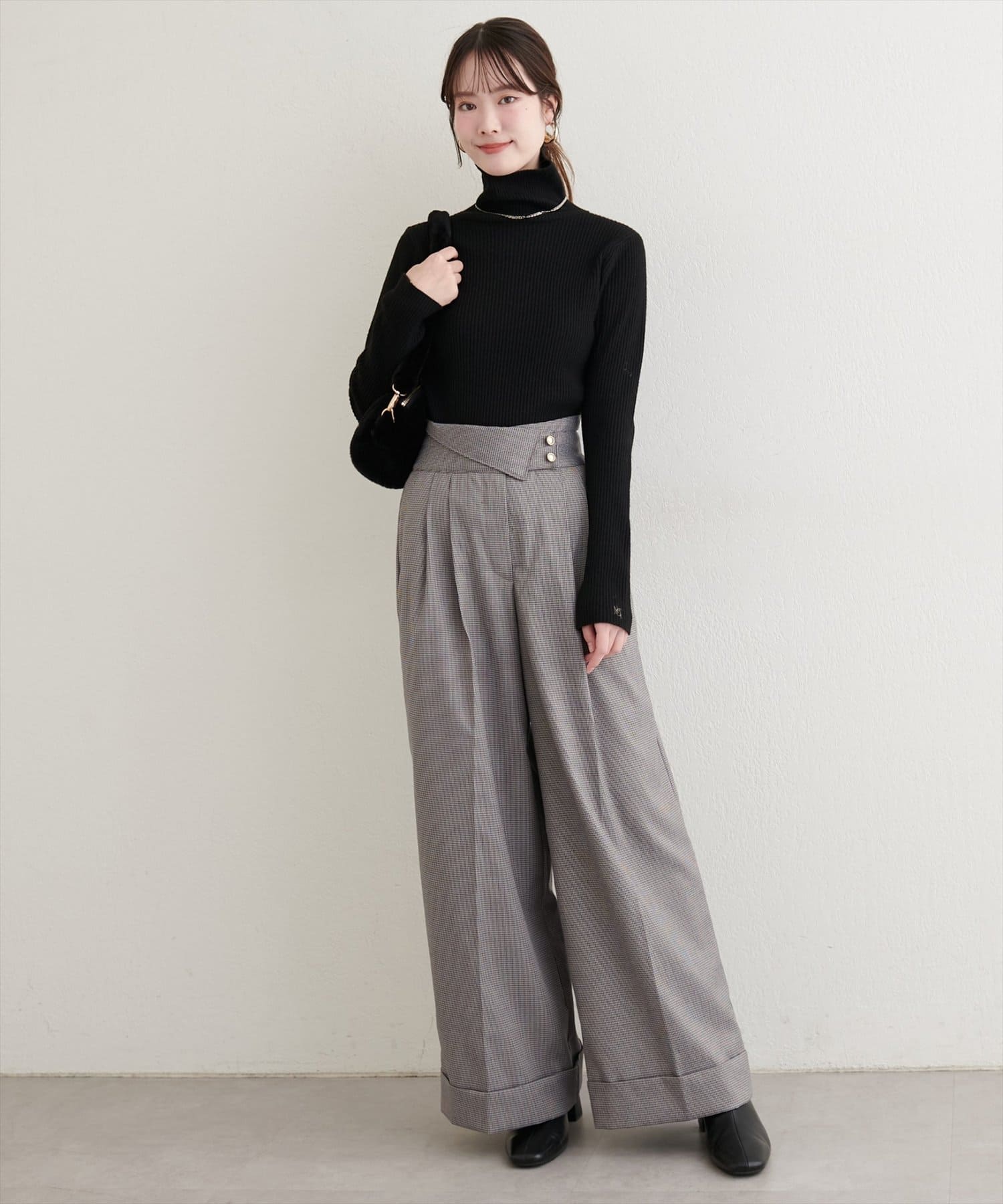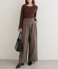 ウエスト周りはすっきりと見せつつ、裾に向かって広がるワイドシルエットが、リラックス感のある着心地を提供します。