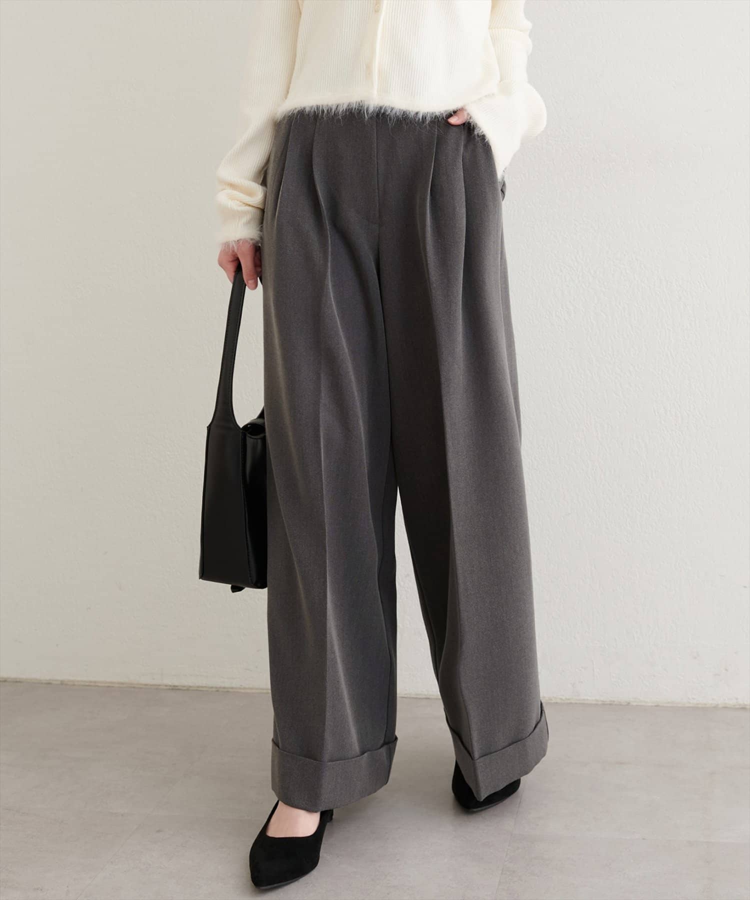 深めのタックが入っていることで、美しいドレープが生まれ、動きのあるシルエットを実現。