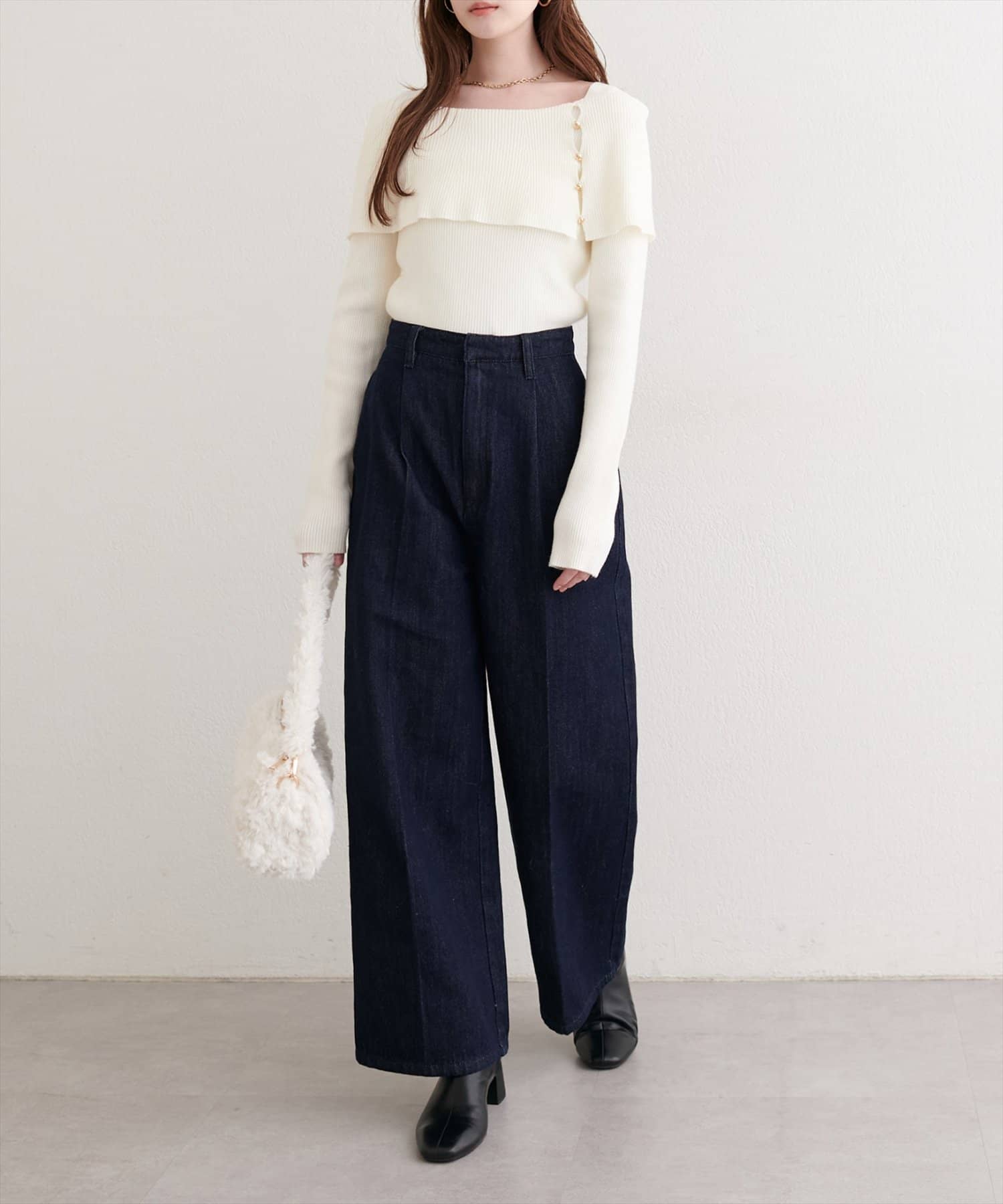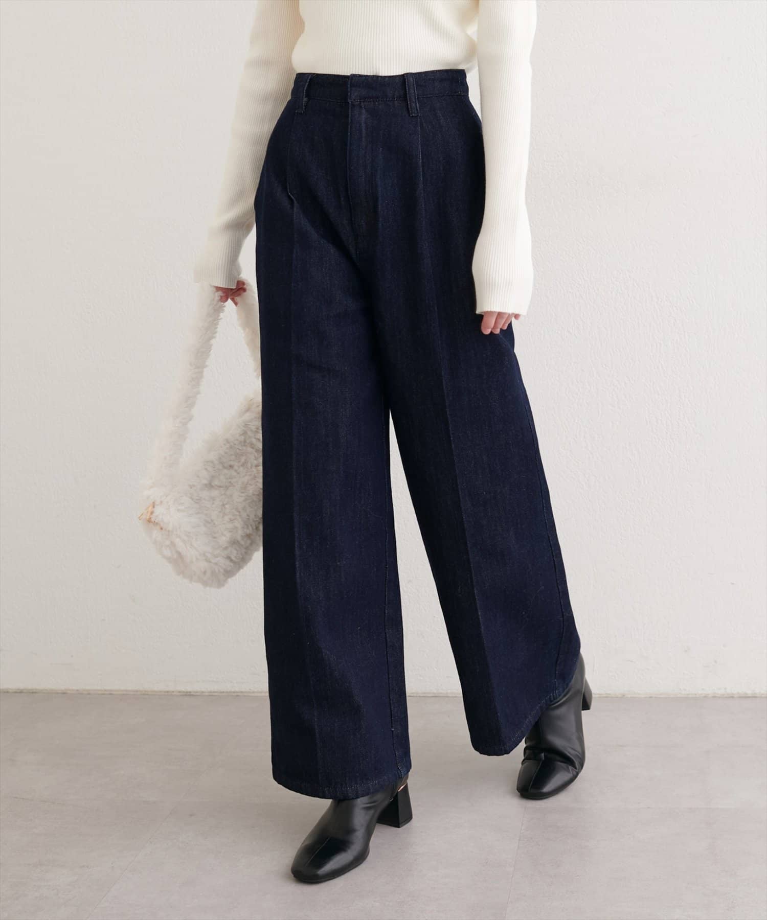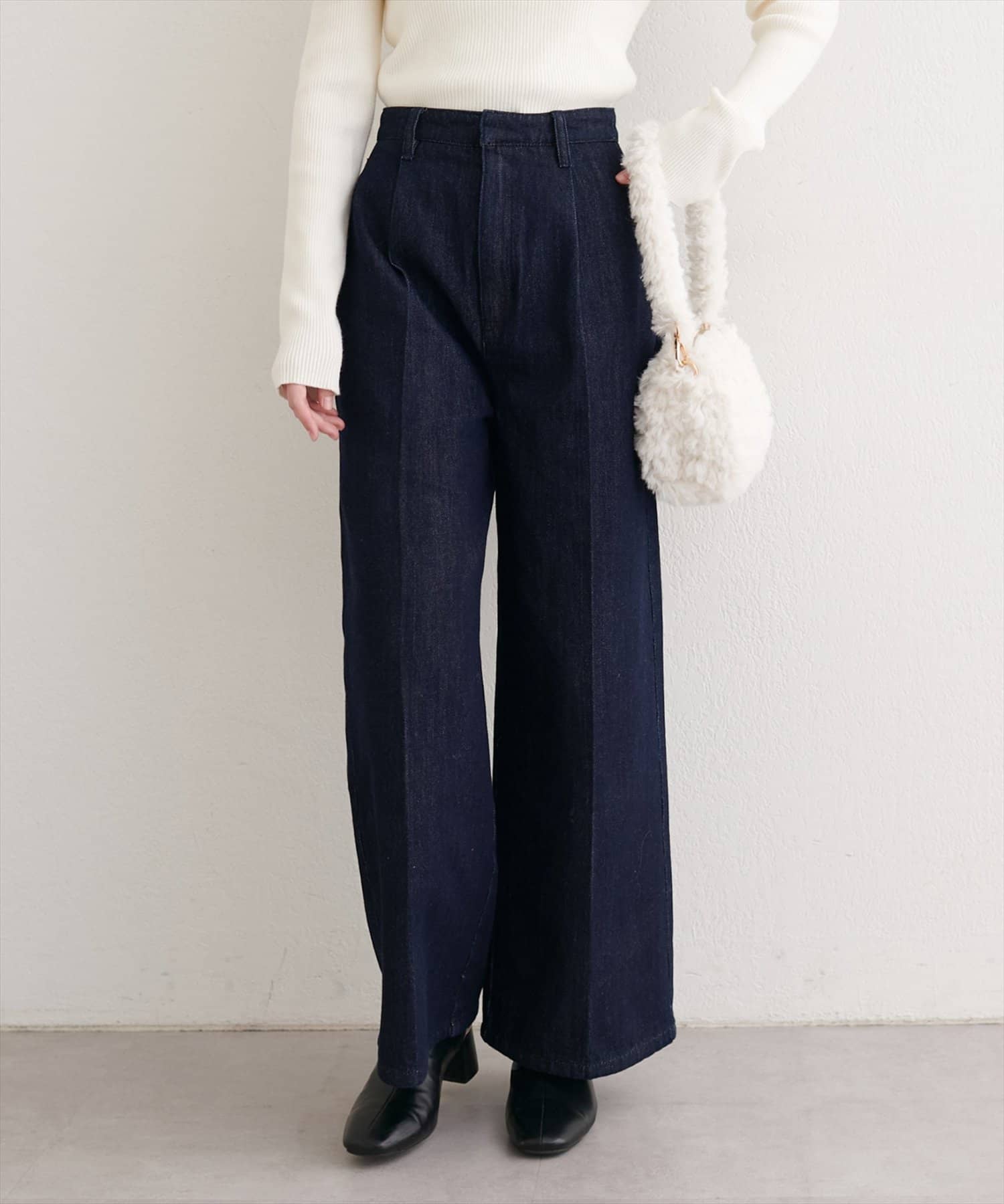 深みのある色合いが魅力的なデニム生地を採用し、カジュアルながらも落ち着いた雰囲気を演出。