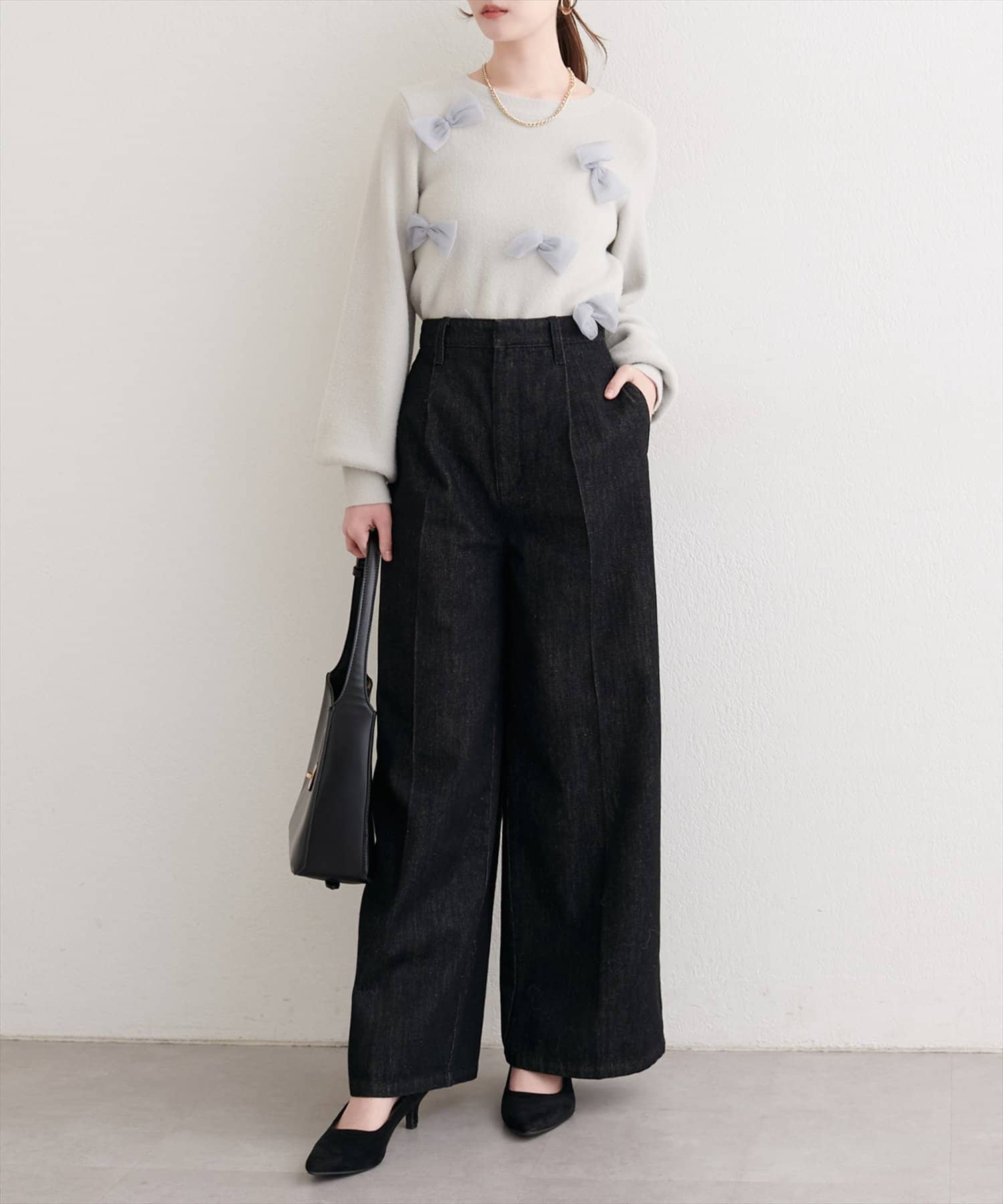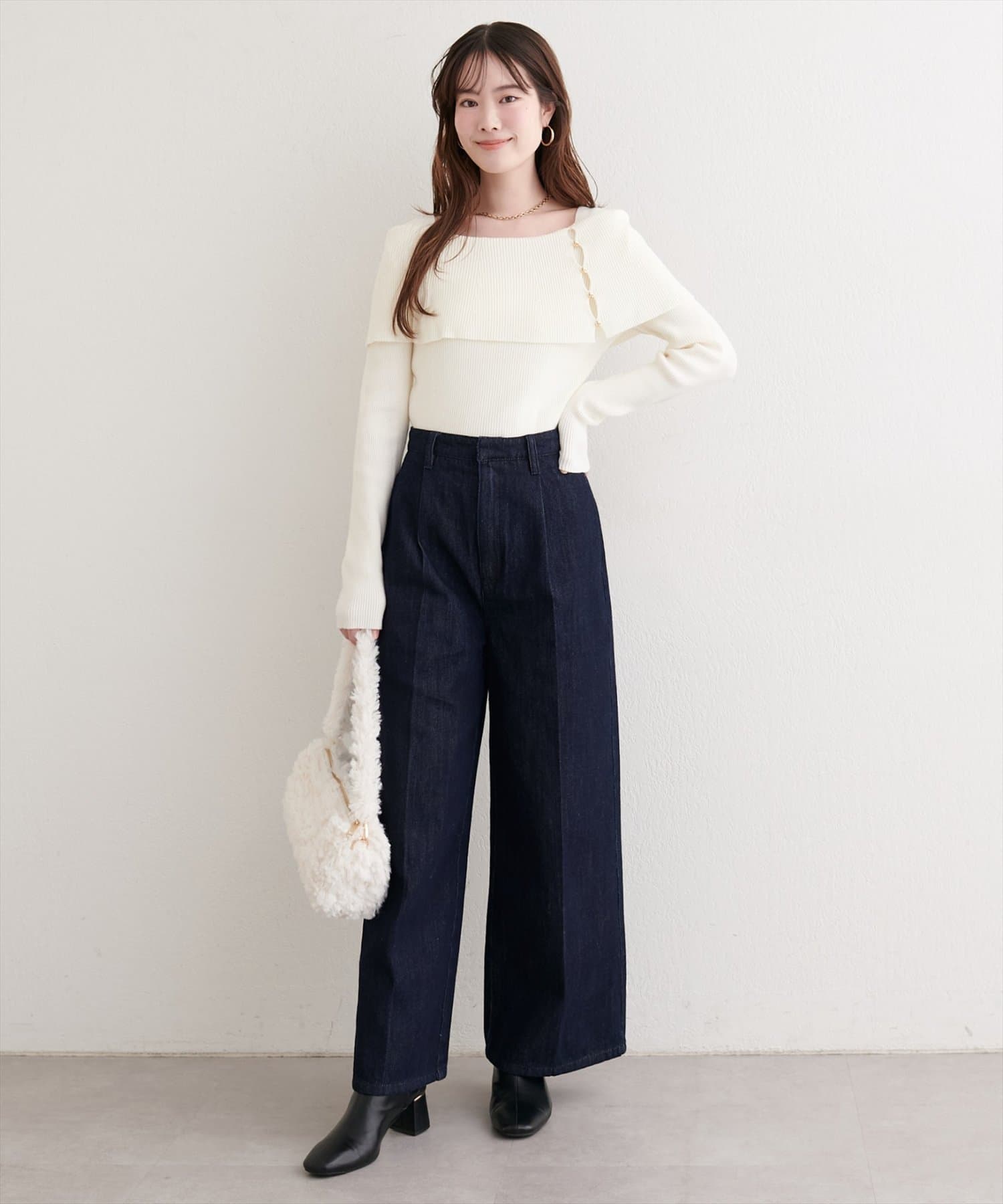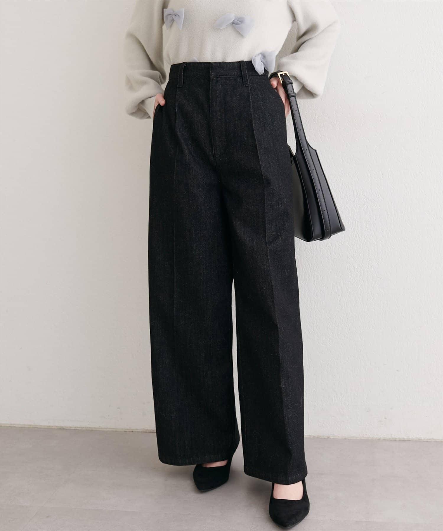 深みのある色合いが魅力的なデニム生地を採用し、カジュアルながらも落ち着いた雰囲気を演出。