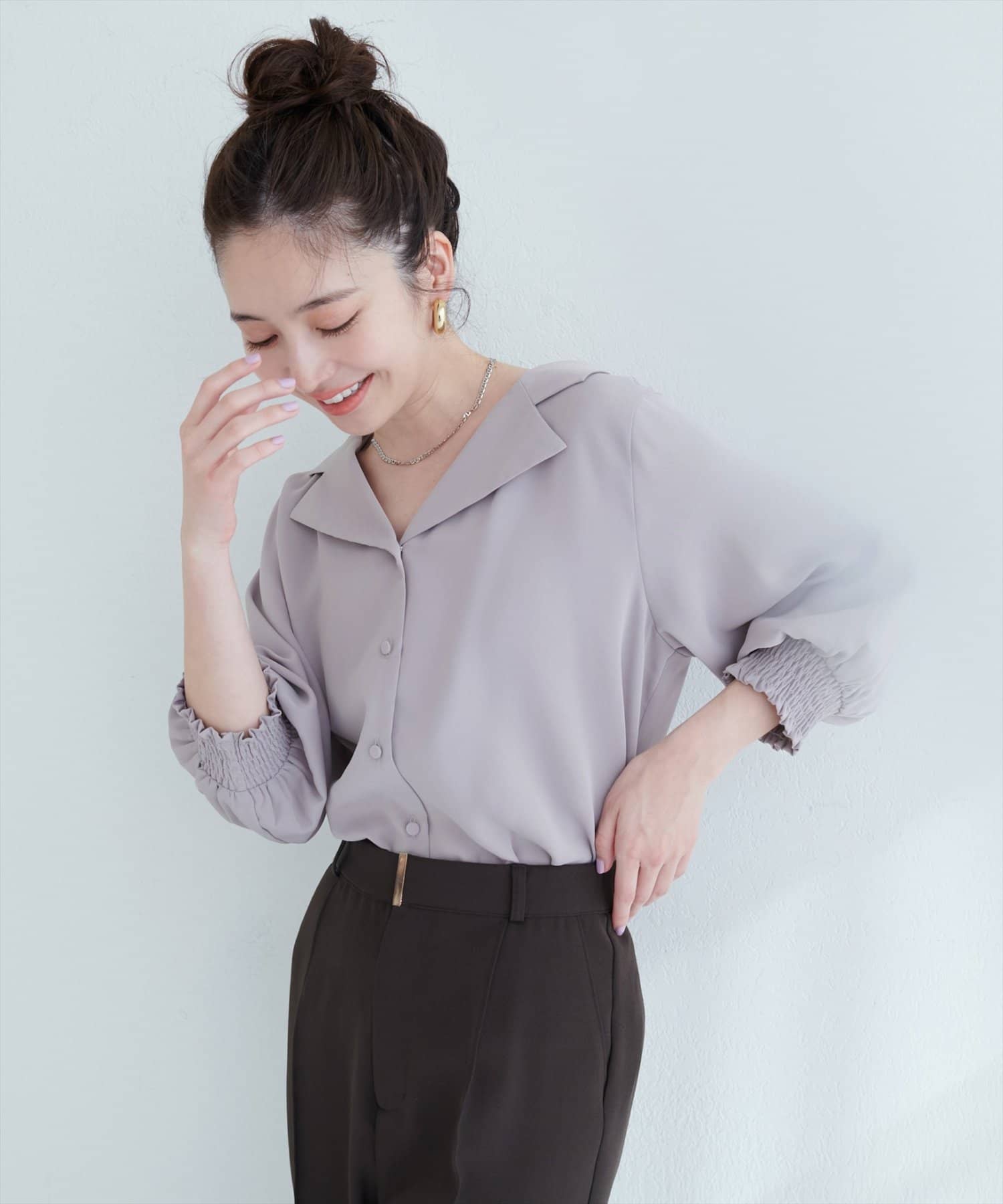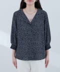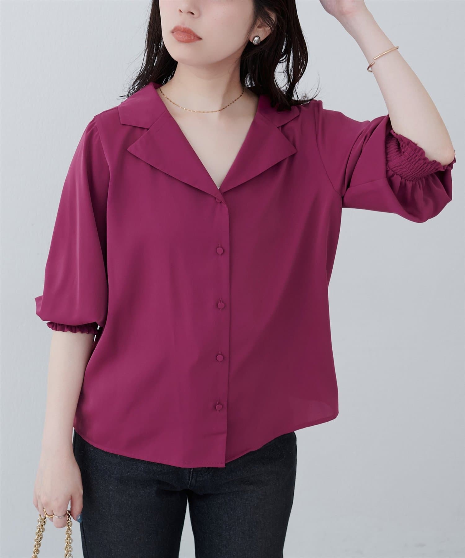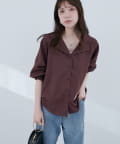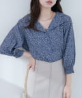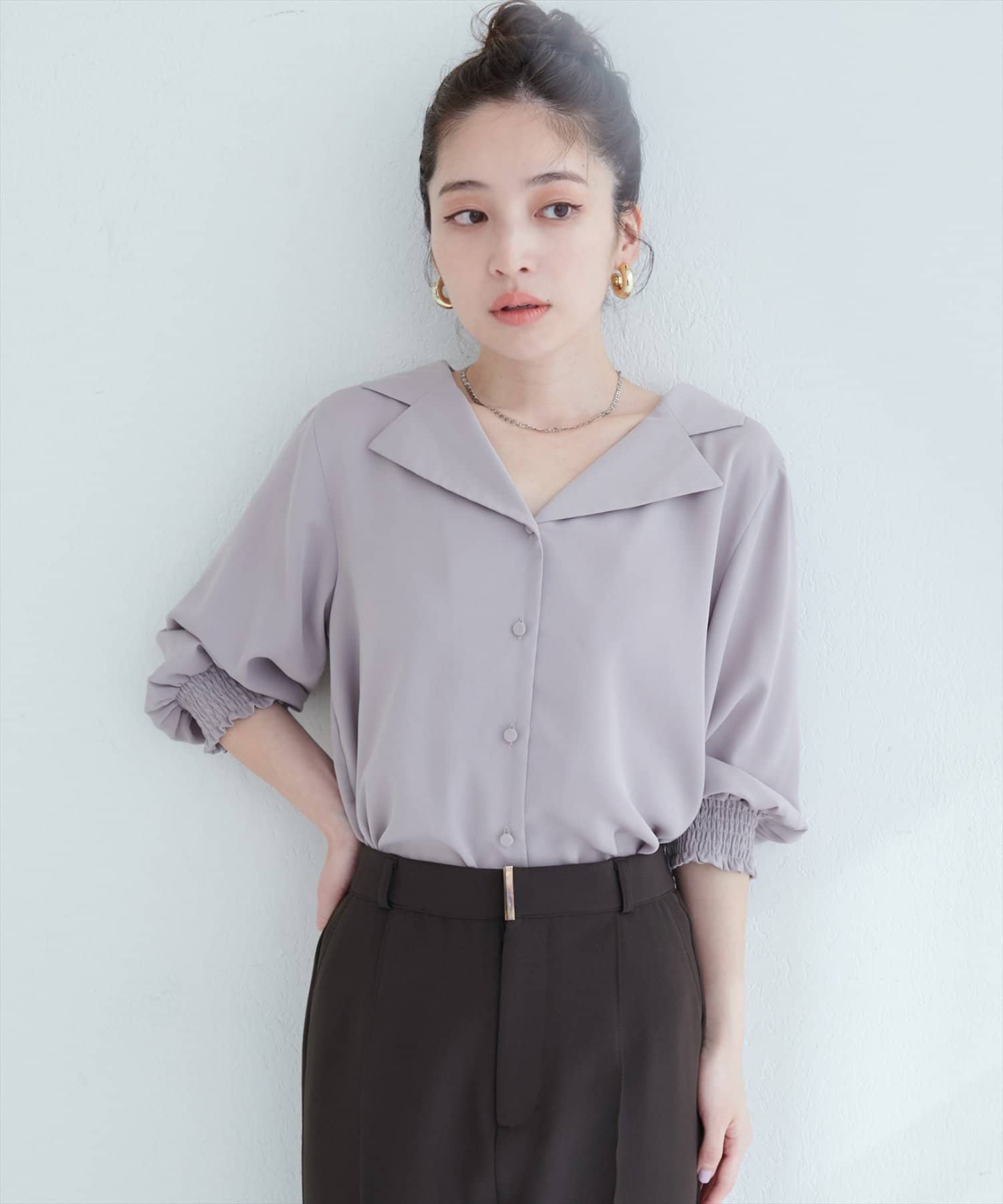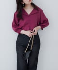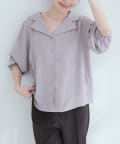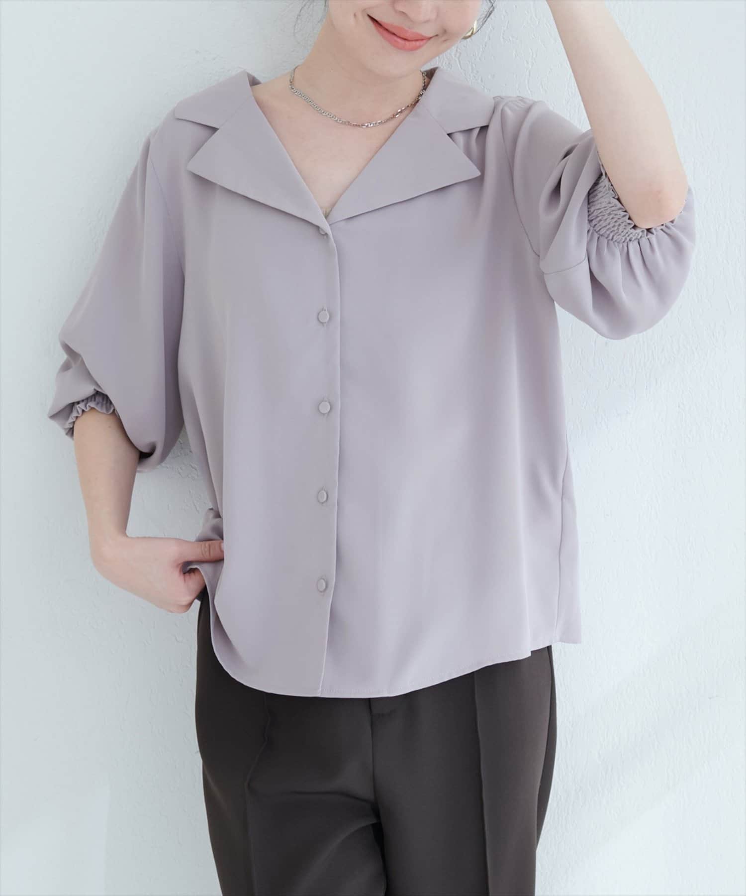 【WEB限定】オープンカラー袖口シャーリングブラウス