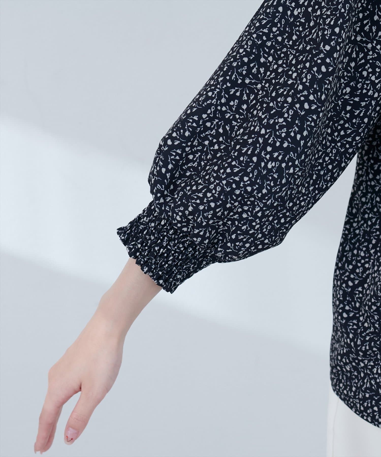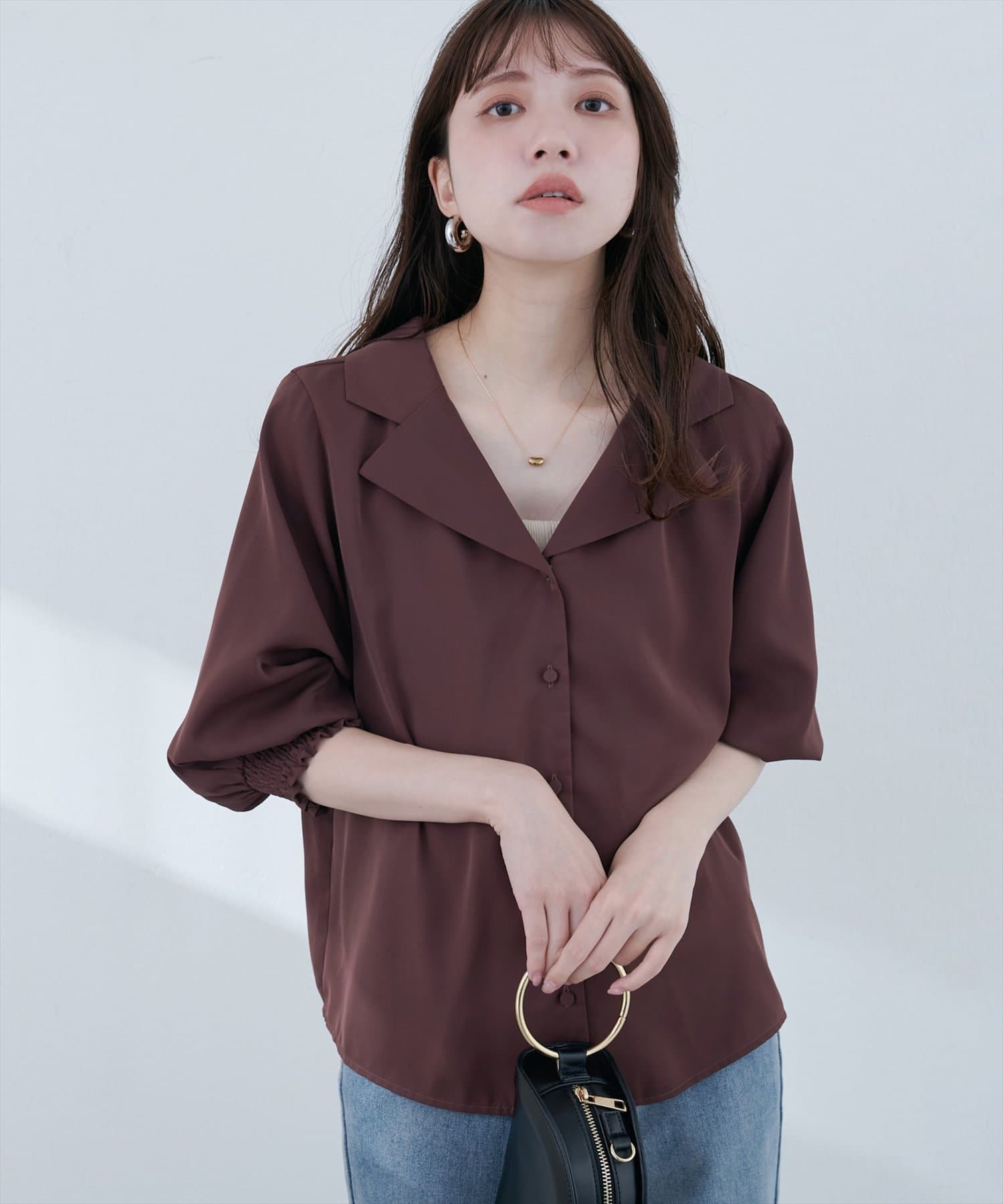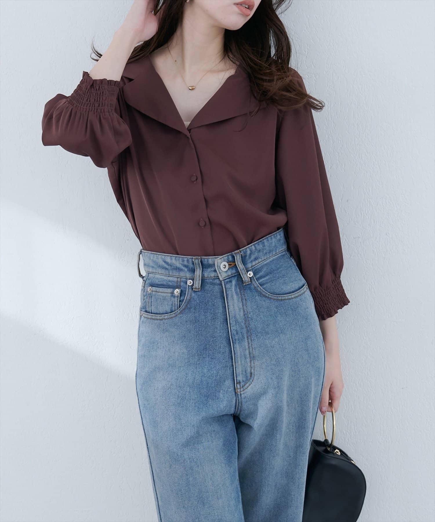 【WEB限定】オープンカラー袖口シャーリングブラウス