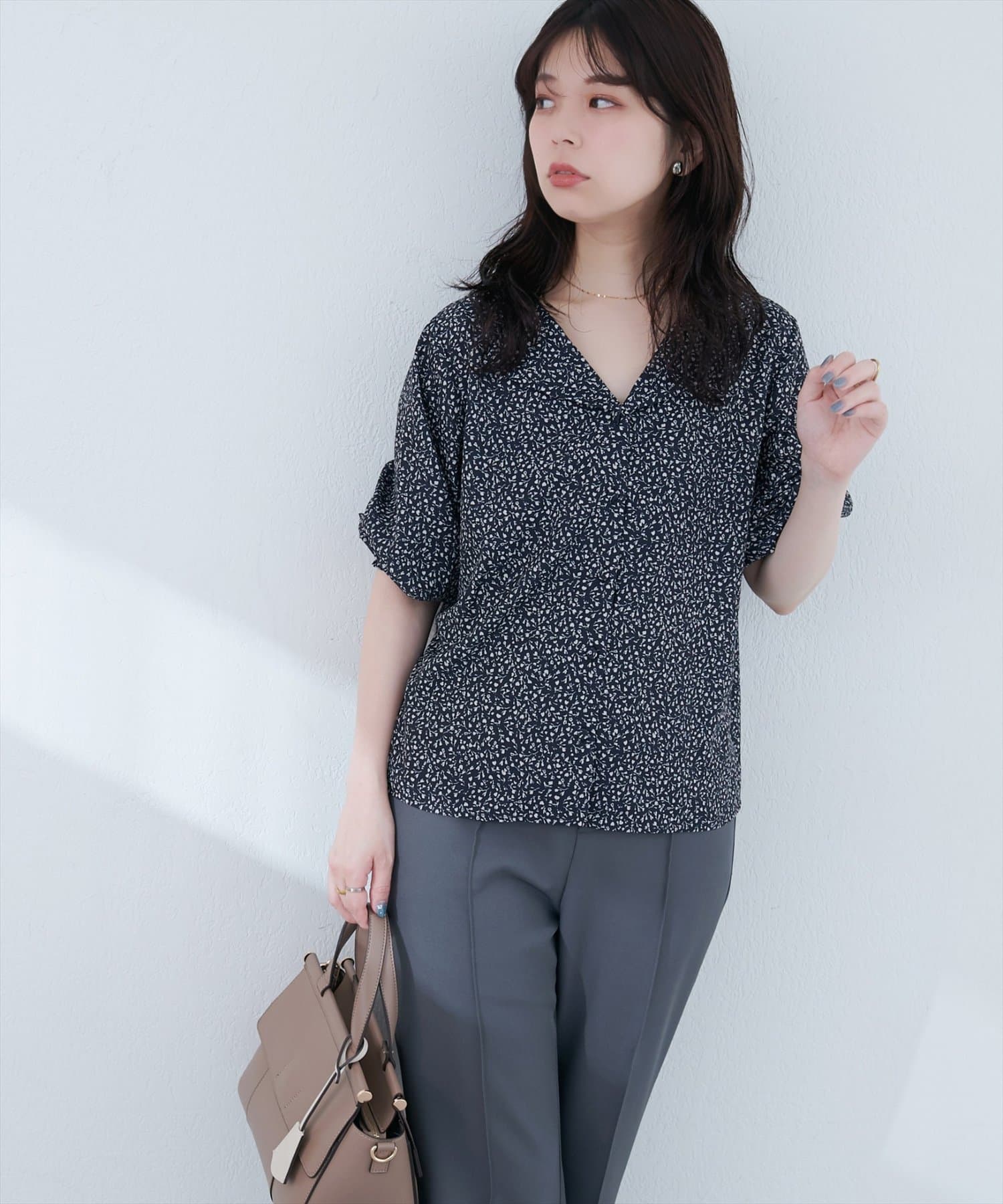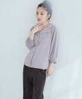 • natural couture(ナチュラルクチュール) 【WEB限定】オープンカラー袖口シャーリングブラウス