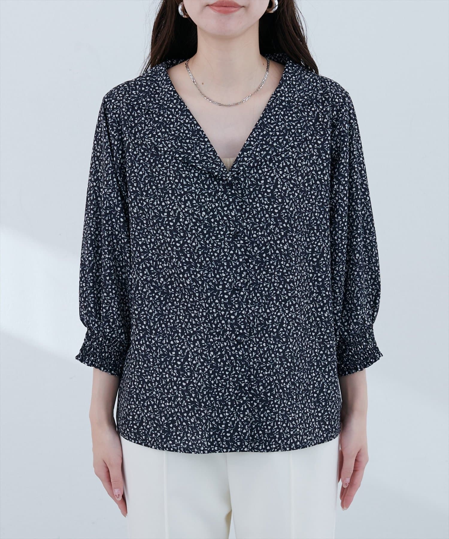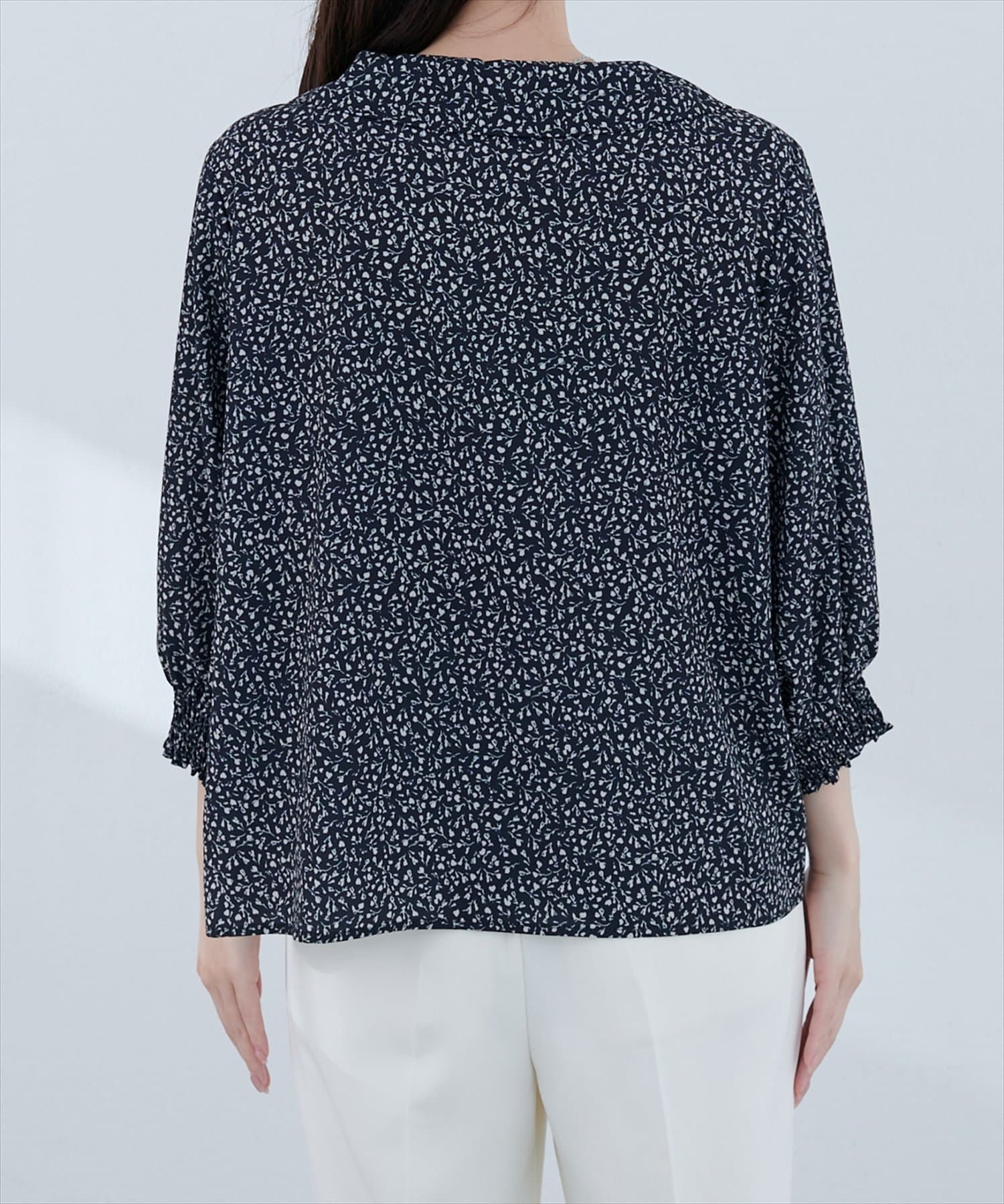 natural couture(ナチュラルクチュール) 【WEB限定】オープンカラー袖口シャーリングブラウス