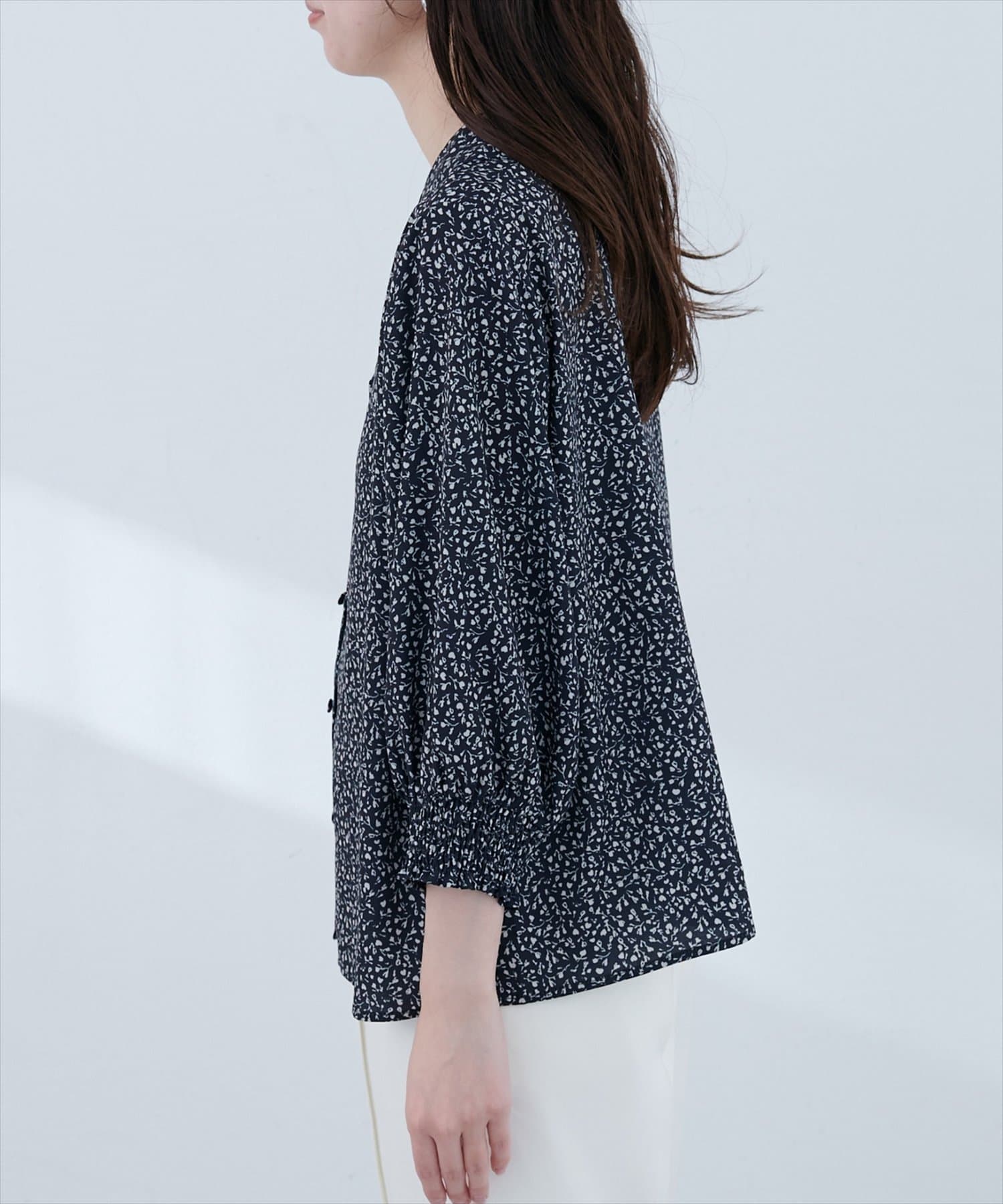 TOP > natural couture > レディース > トップス > シャツ/ブラウス(ボタン) > 【WEB限定】オープンカラー袖口シャーリングブラウス