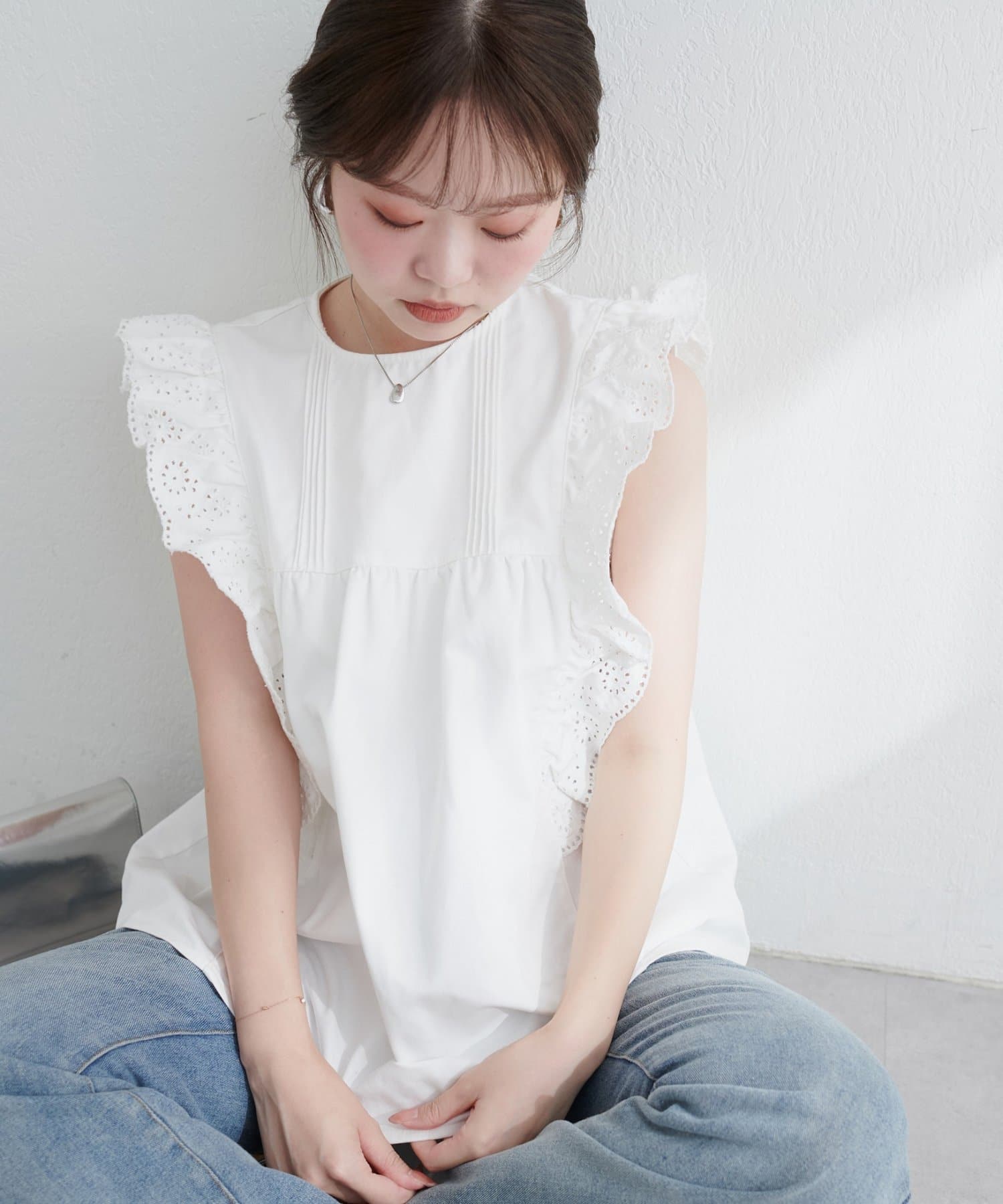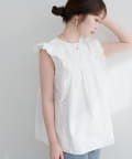 フリルの縁にあしらわれた刺繍が、ブラウスに奥行きと立体感をプラス。さりげないアクセントとして、コーディネートを格上げします。