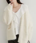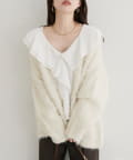 目を引くフリルが顔まわりを華やかに演出し、アクセサリーなしでも上品な印象に。