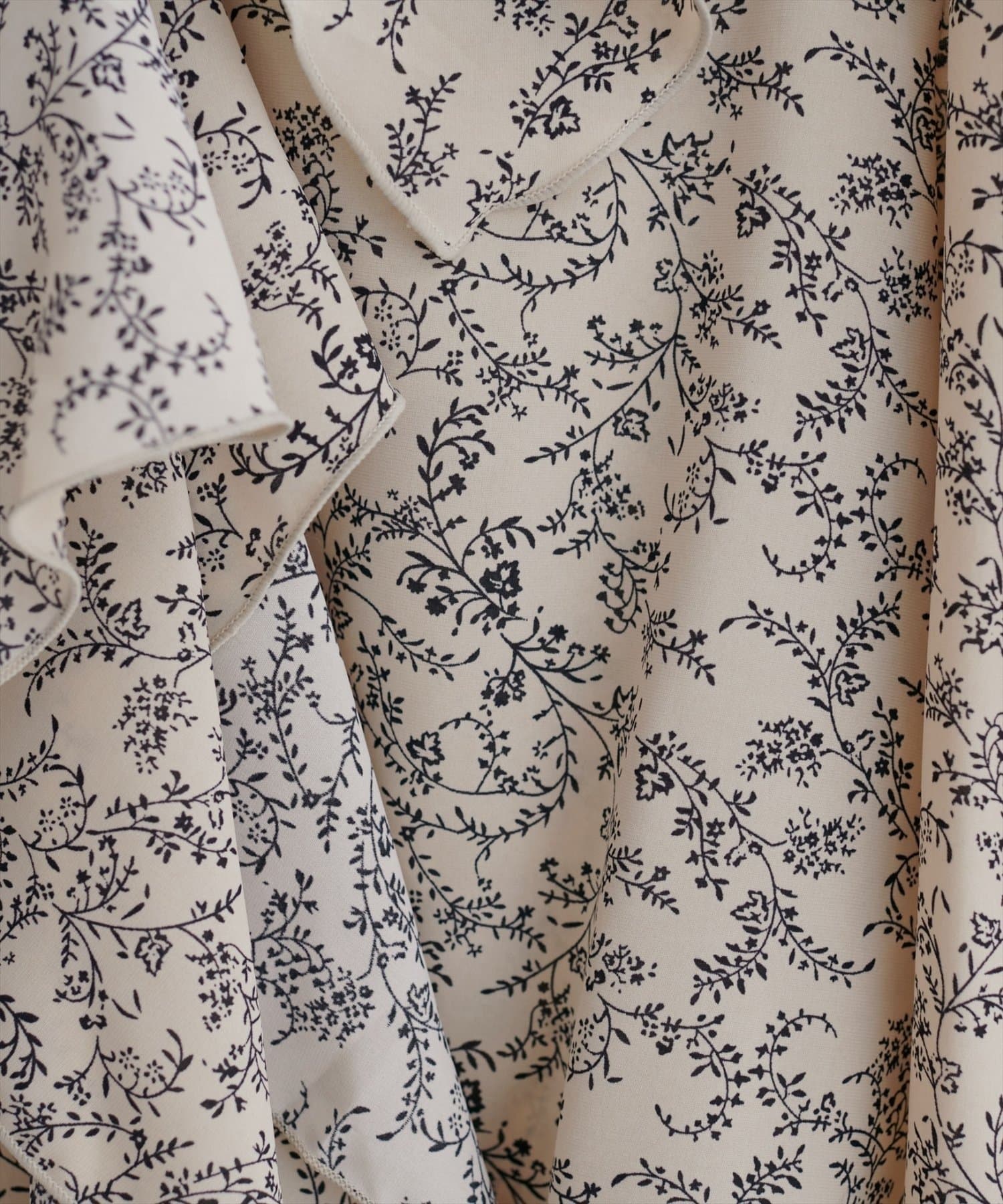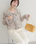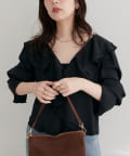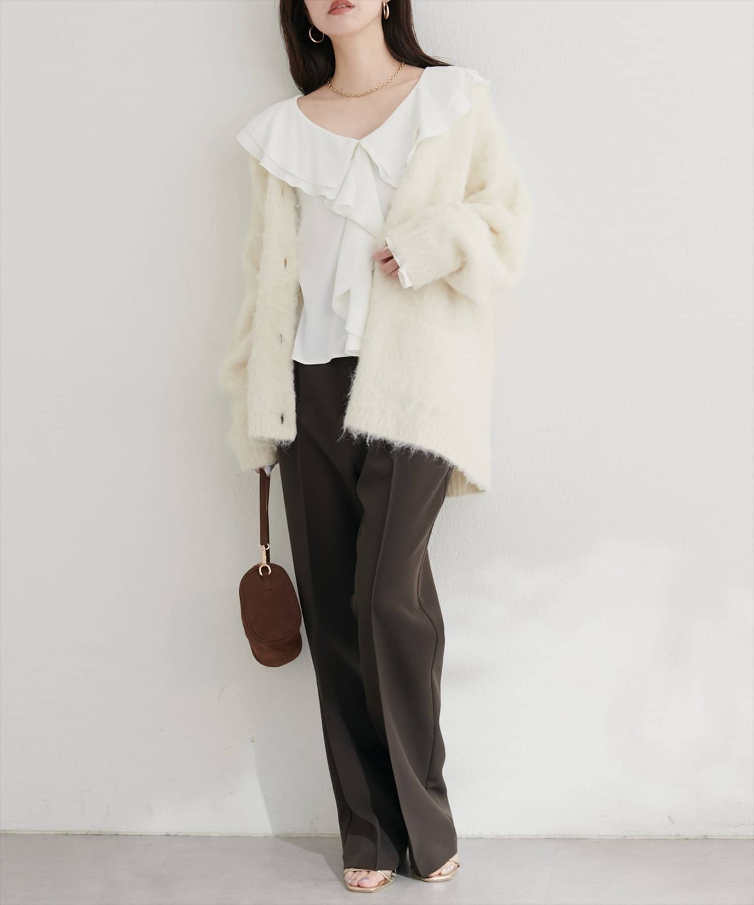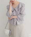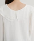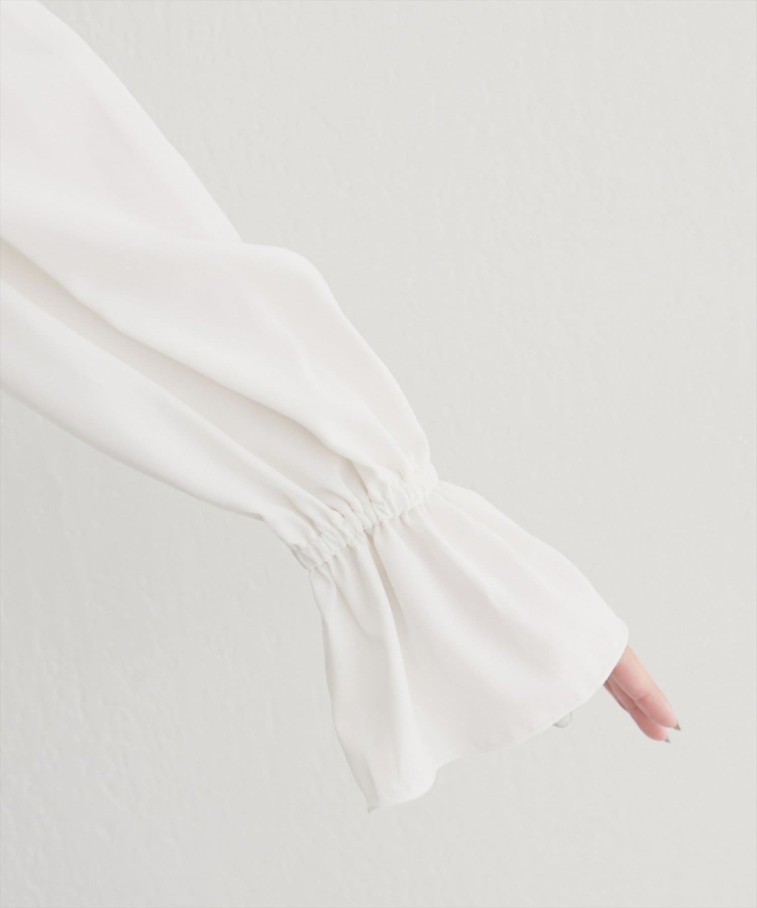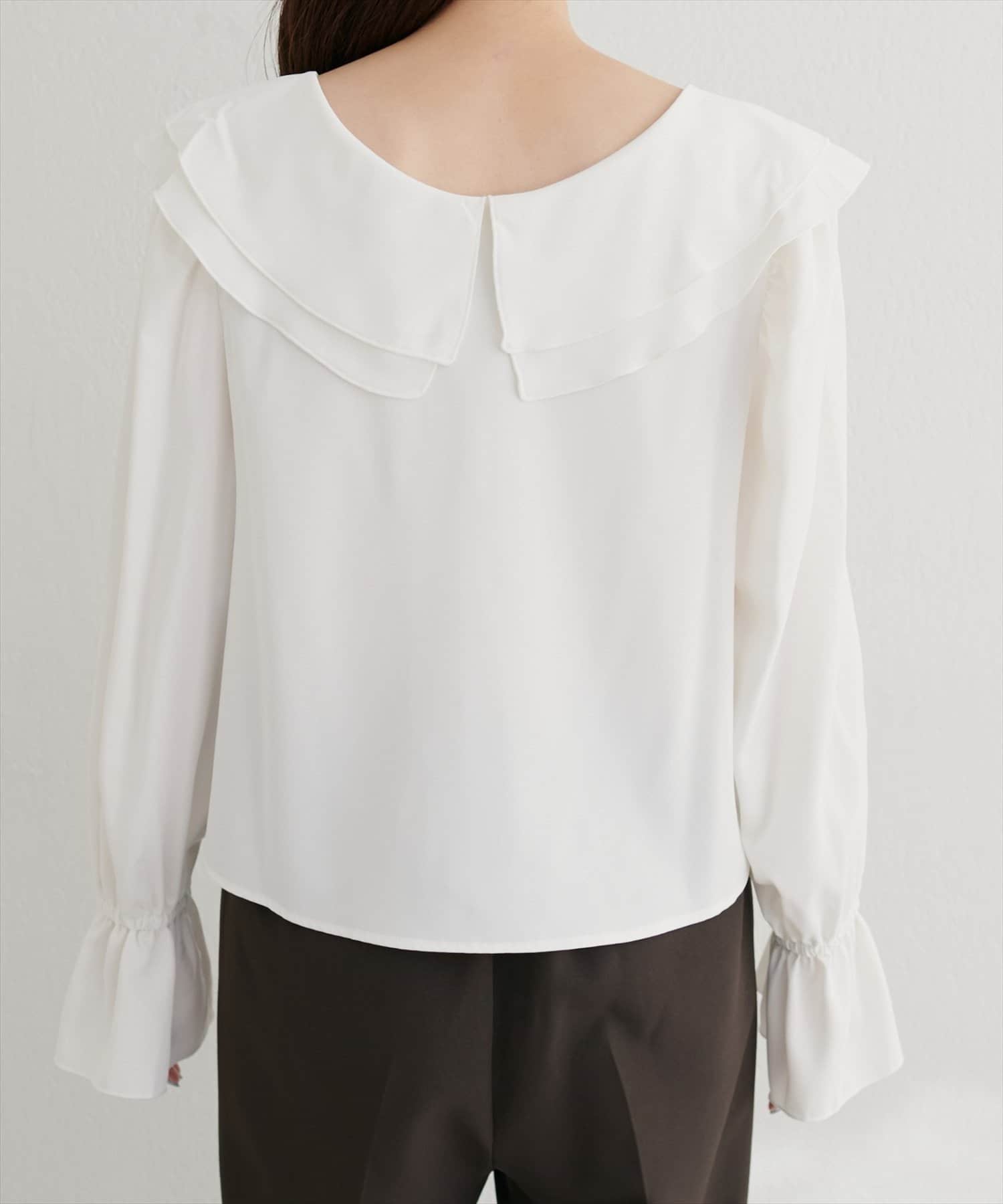 ふんわりと波打つフリルが、顔周りを華やかに彩るブラウス。