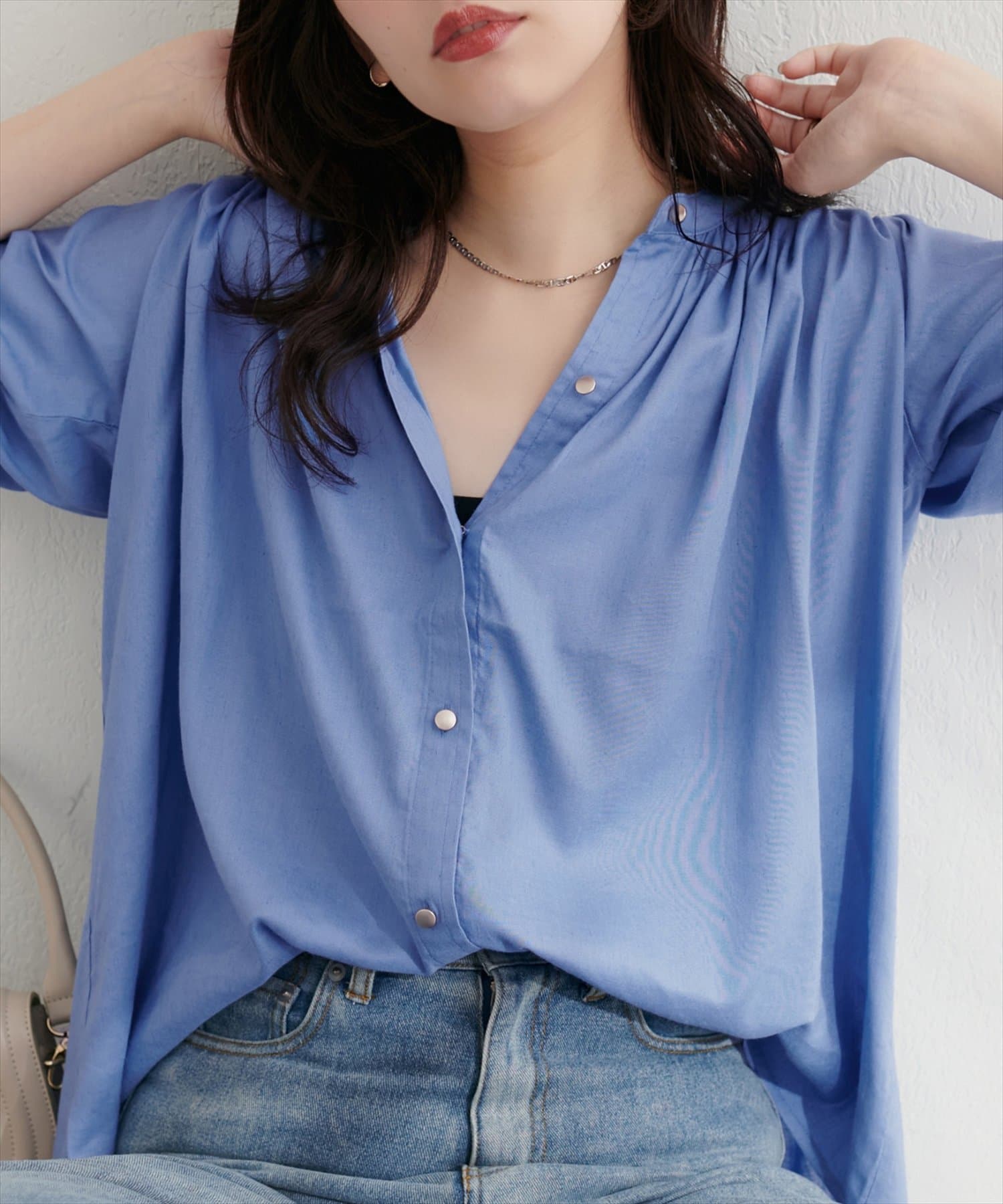 ボタンを開けてスキッパー風や、衿を抜いたり、フロントだけインしたりと、様々なアレンジが楽しめます。