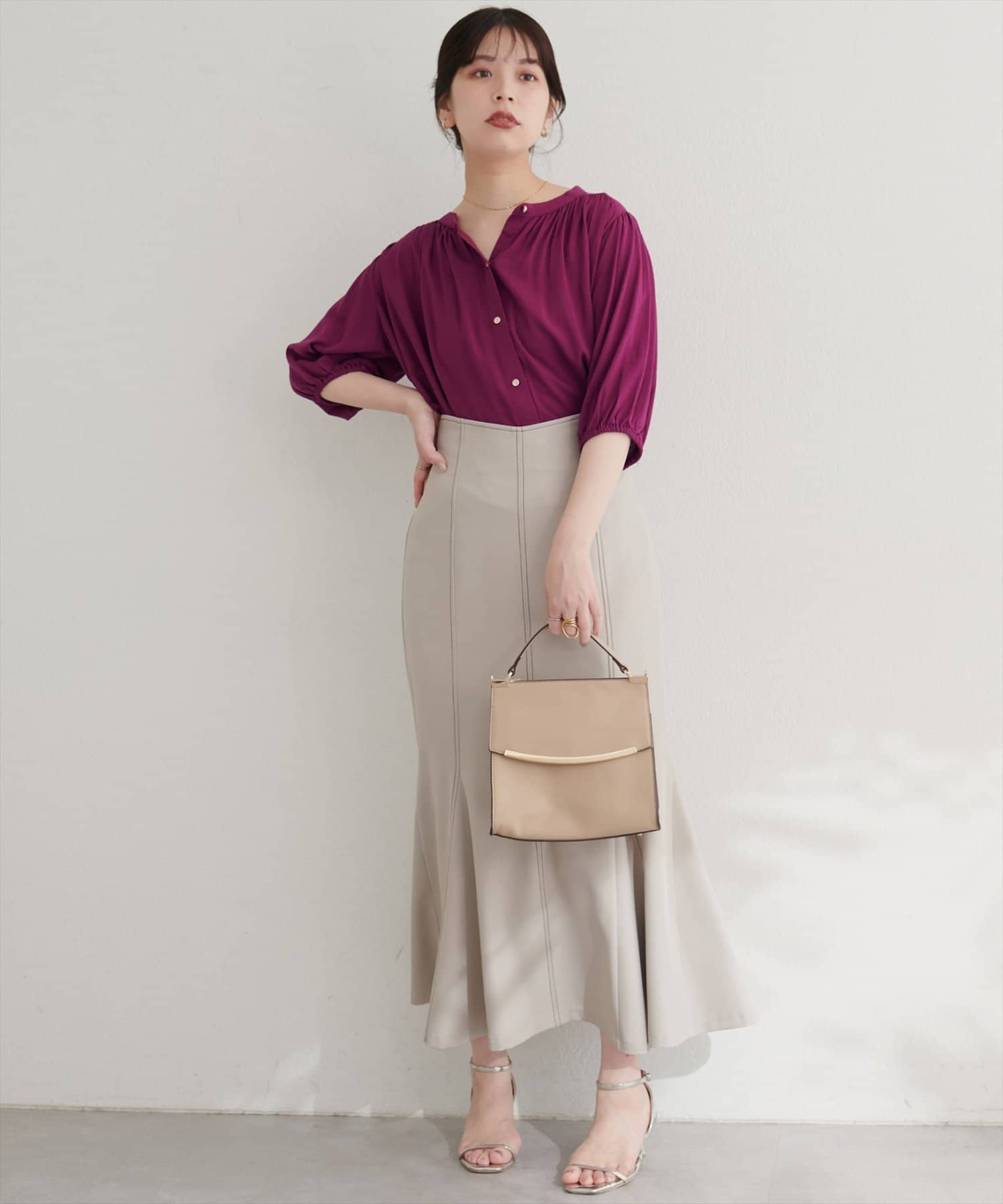 マーメイドシルエットやフレアライン、Iラインのスカートにウエストインして、