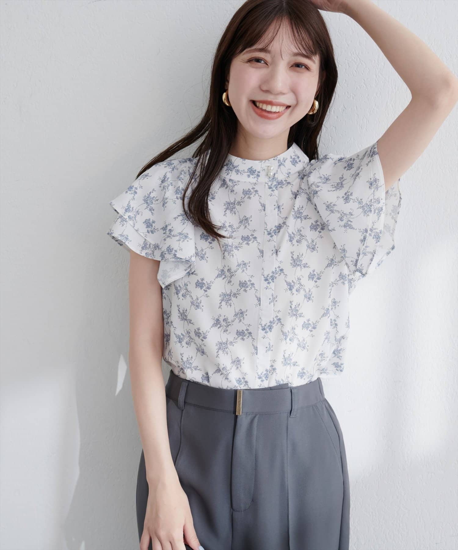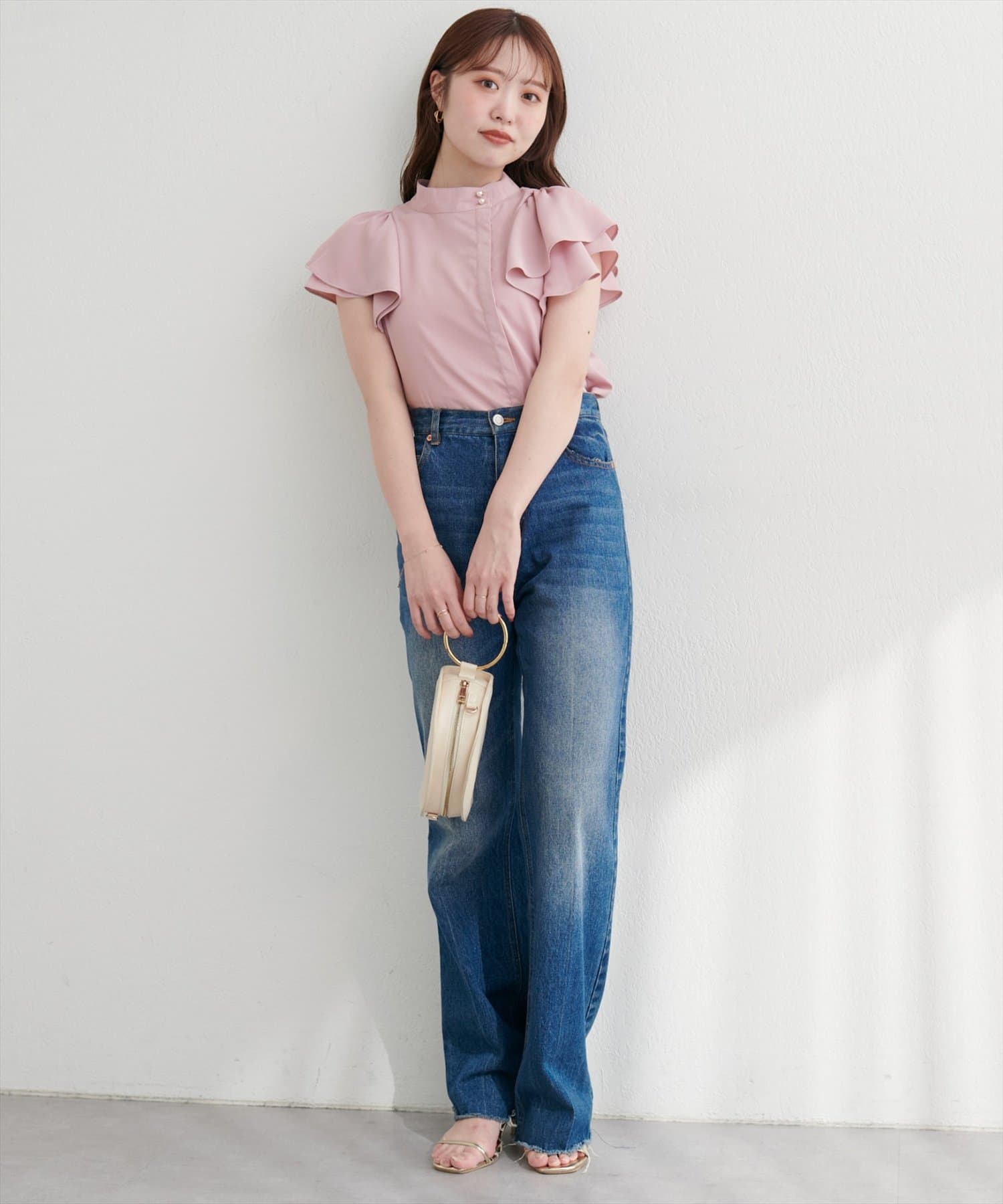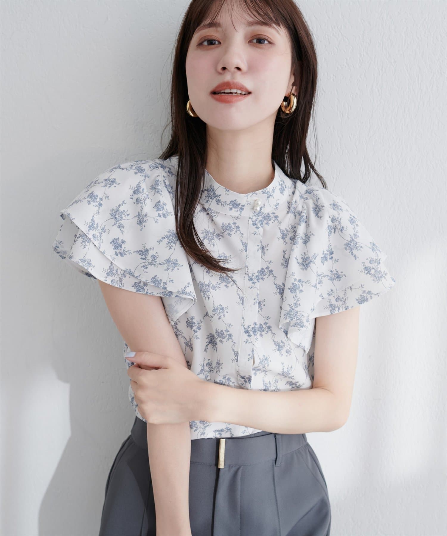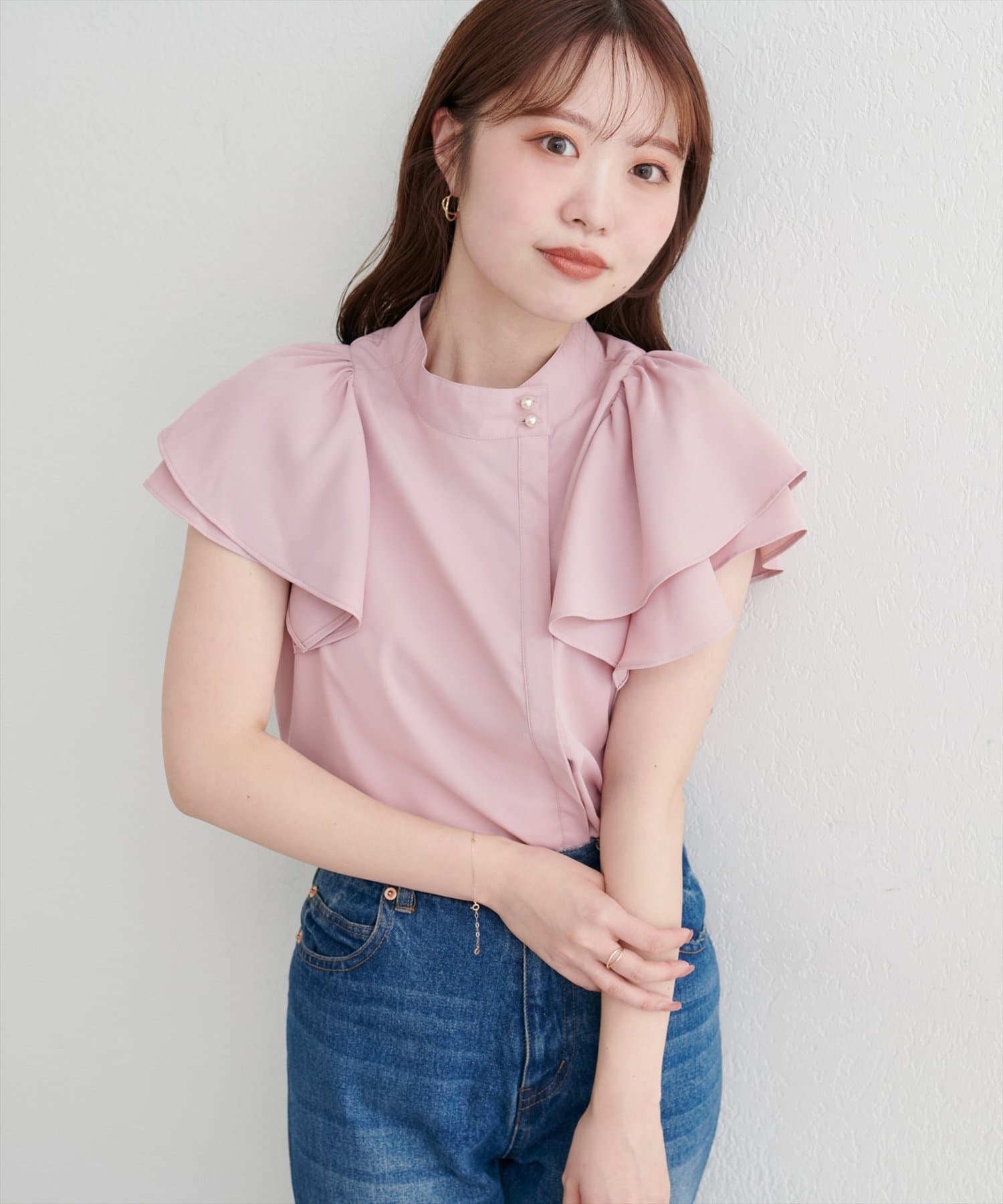 • natural couture(ナチュラルクチュール) ラッフルフリルフロントアシメブラウス