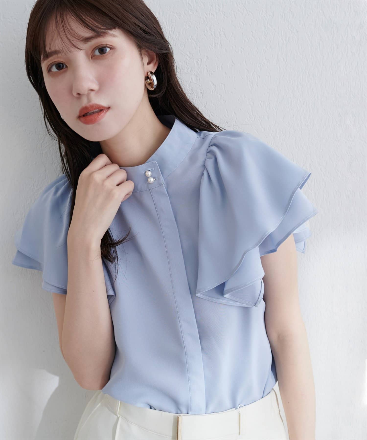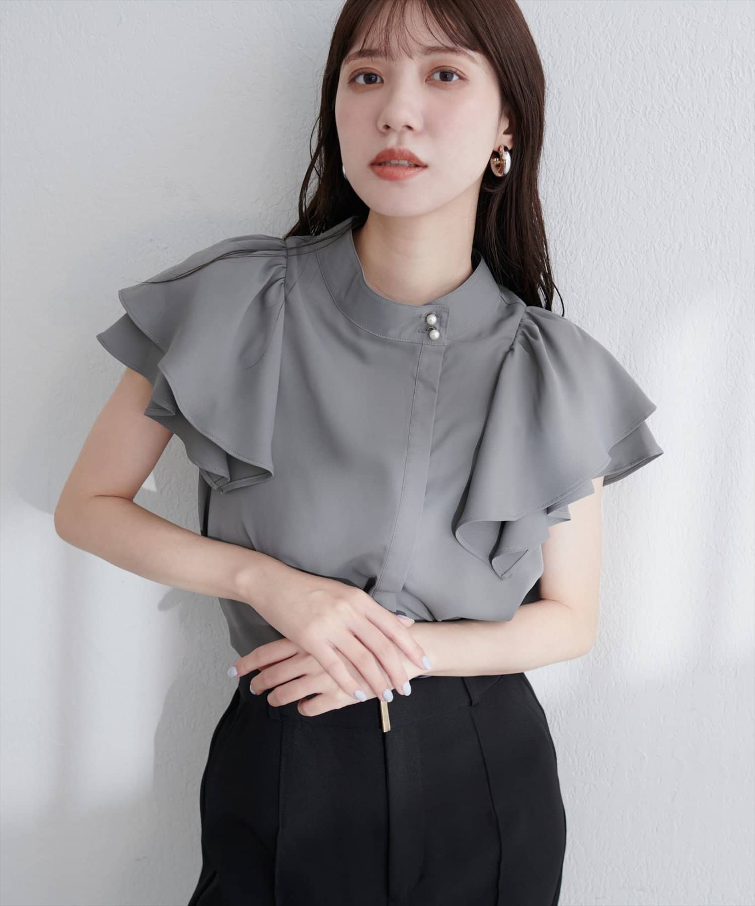 程良い甘さのラッフルフリルを贅沢に2枚仕立てにし、立体感のあるデザインに仕上げた大人レディな1着。