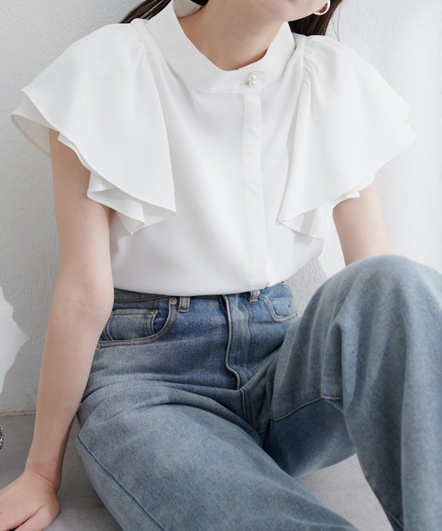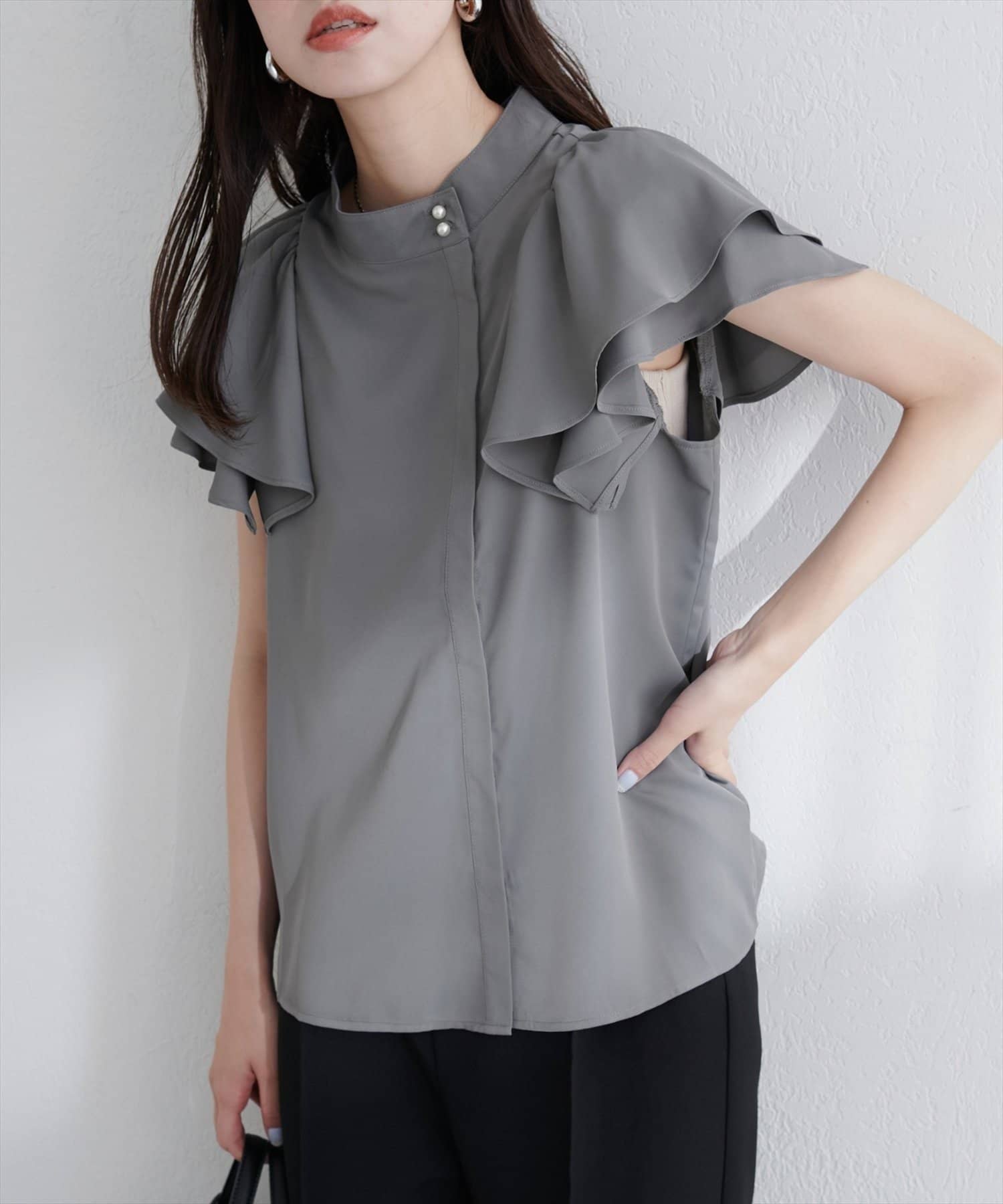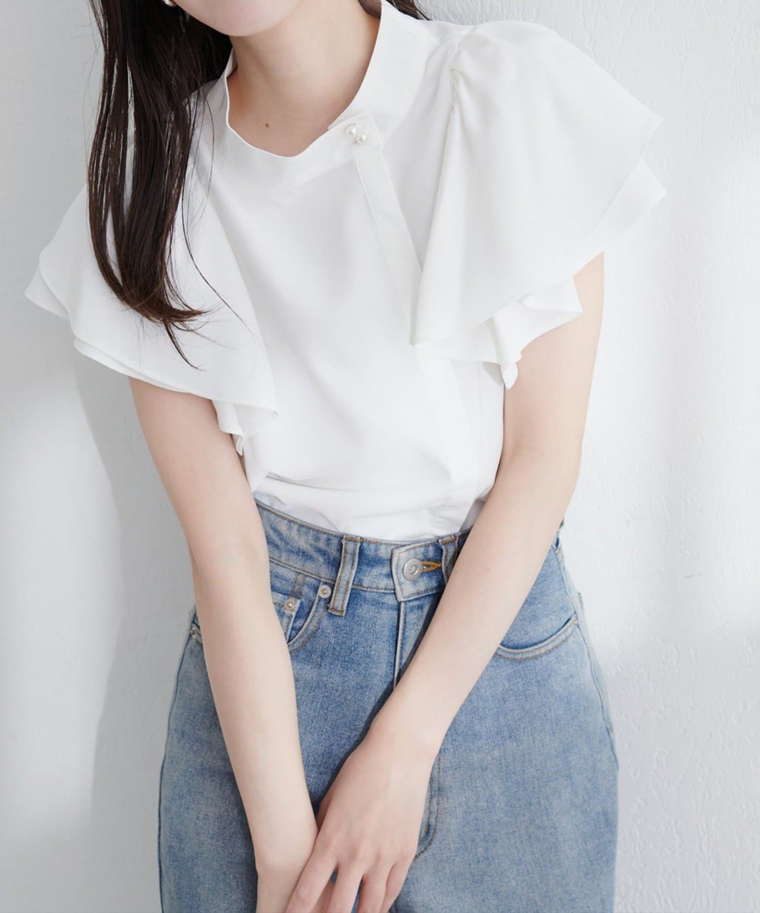 【natural couture】ラッフルフリルフロントアシメブラウス