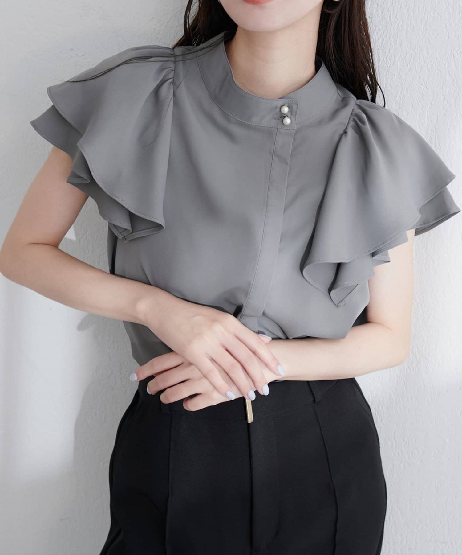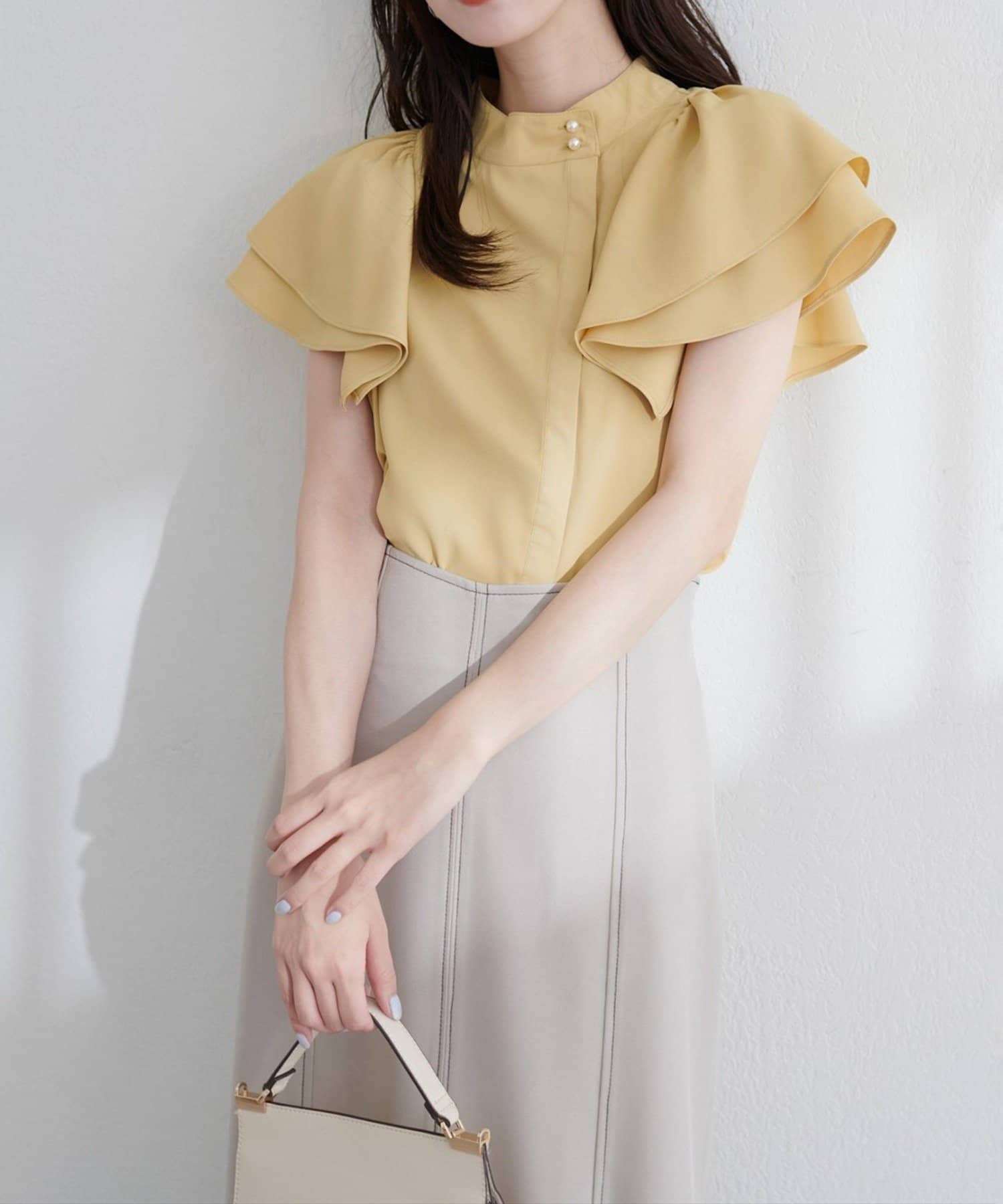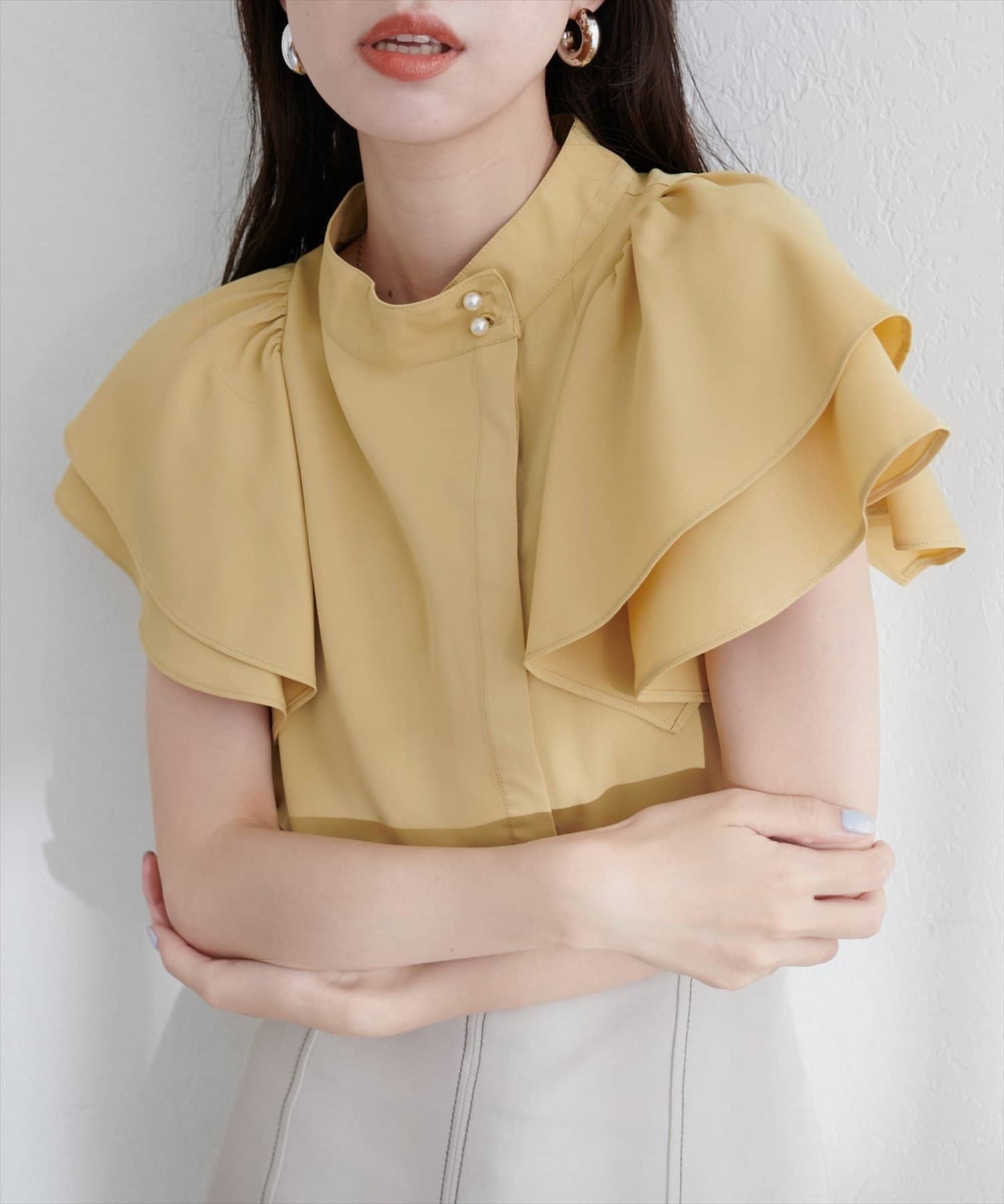 程良い甘さのラッフルフリルを贅沢に2枚仕立てにし、立体感のあるデザインに仕上げた大人レディな1着。
