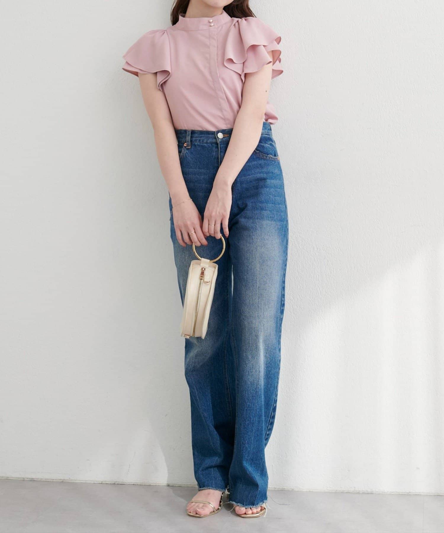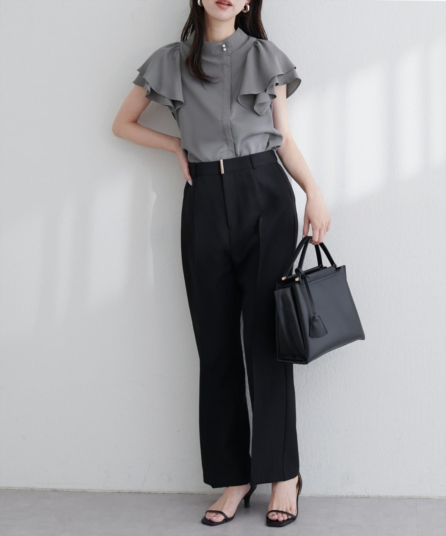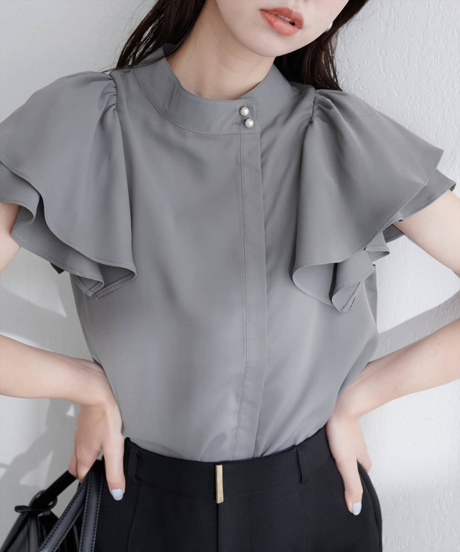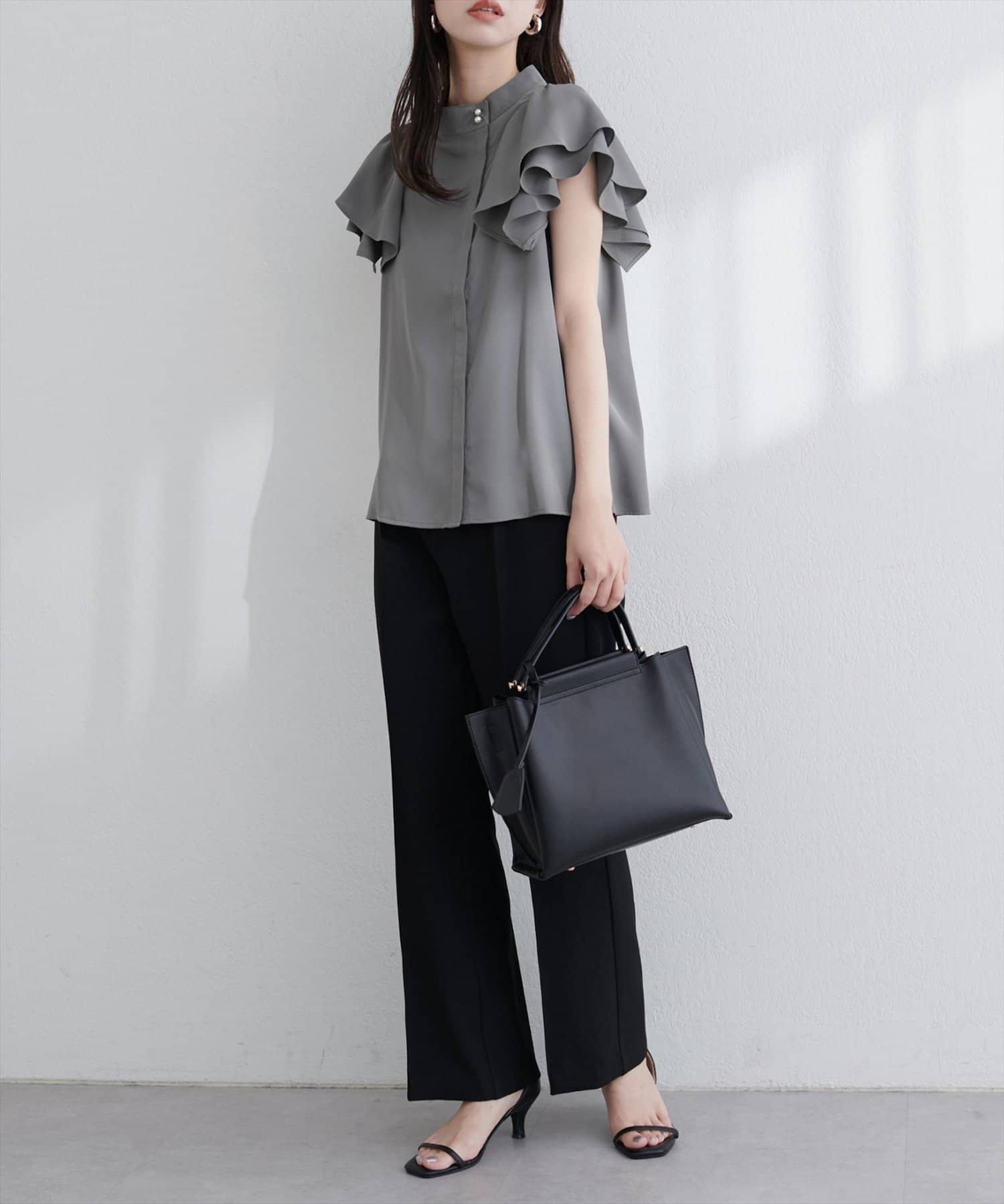 程良い甘さのラッフルフリルを贅沢に2枚仕立てにし、立体感のあるデザインに仕上げた大人レディな1着。