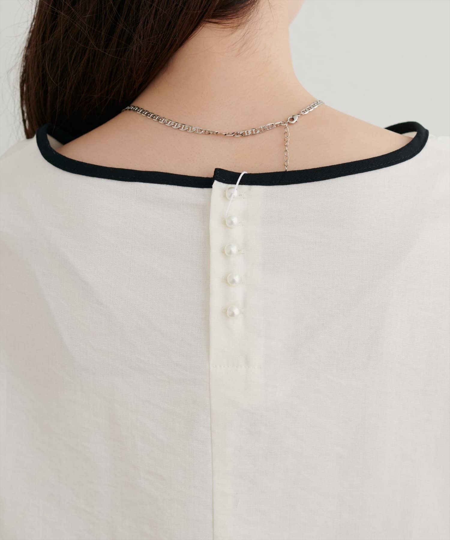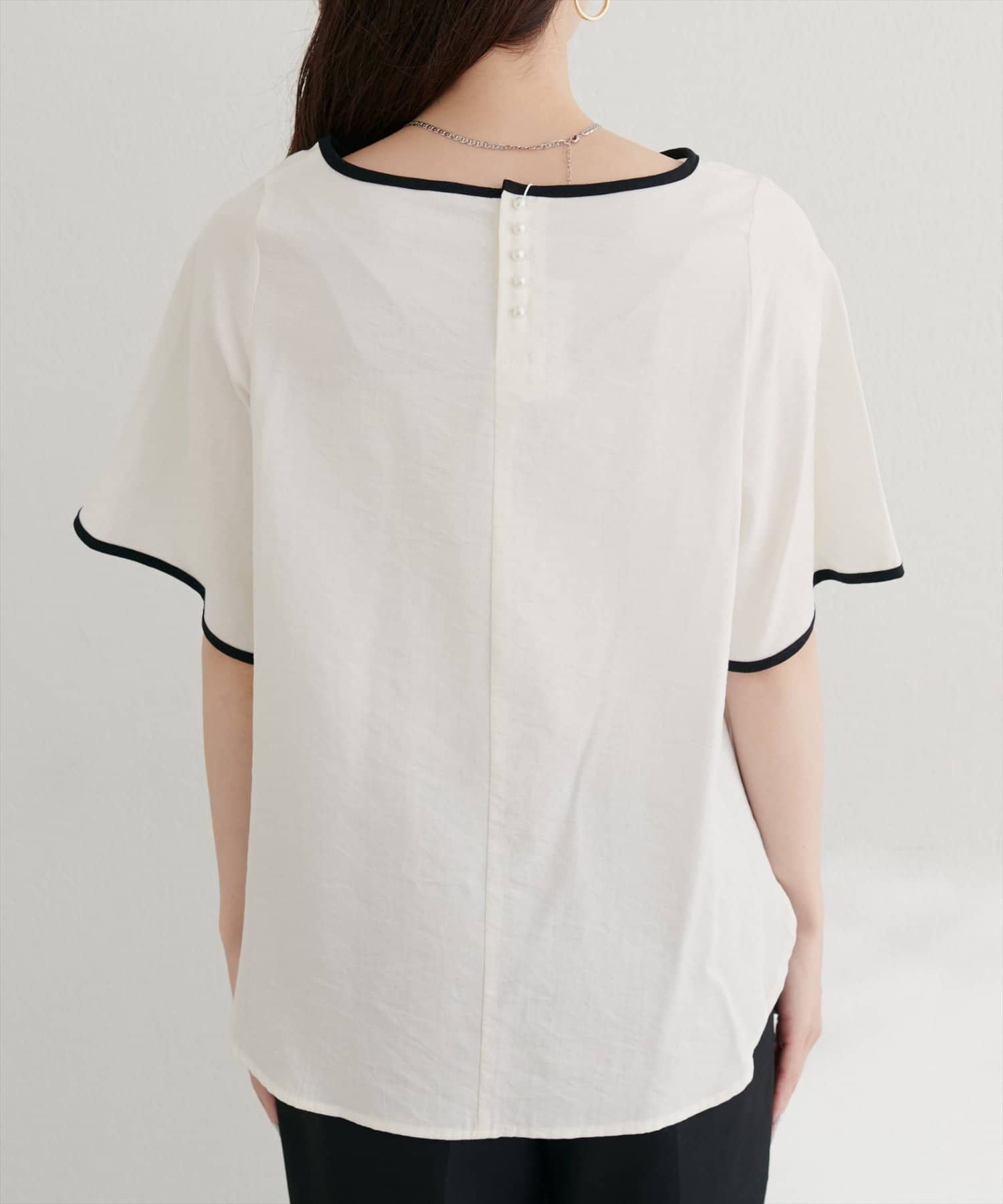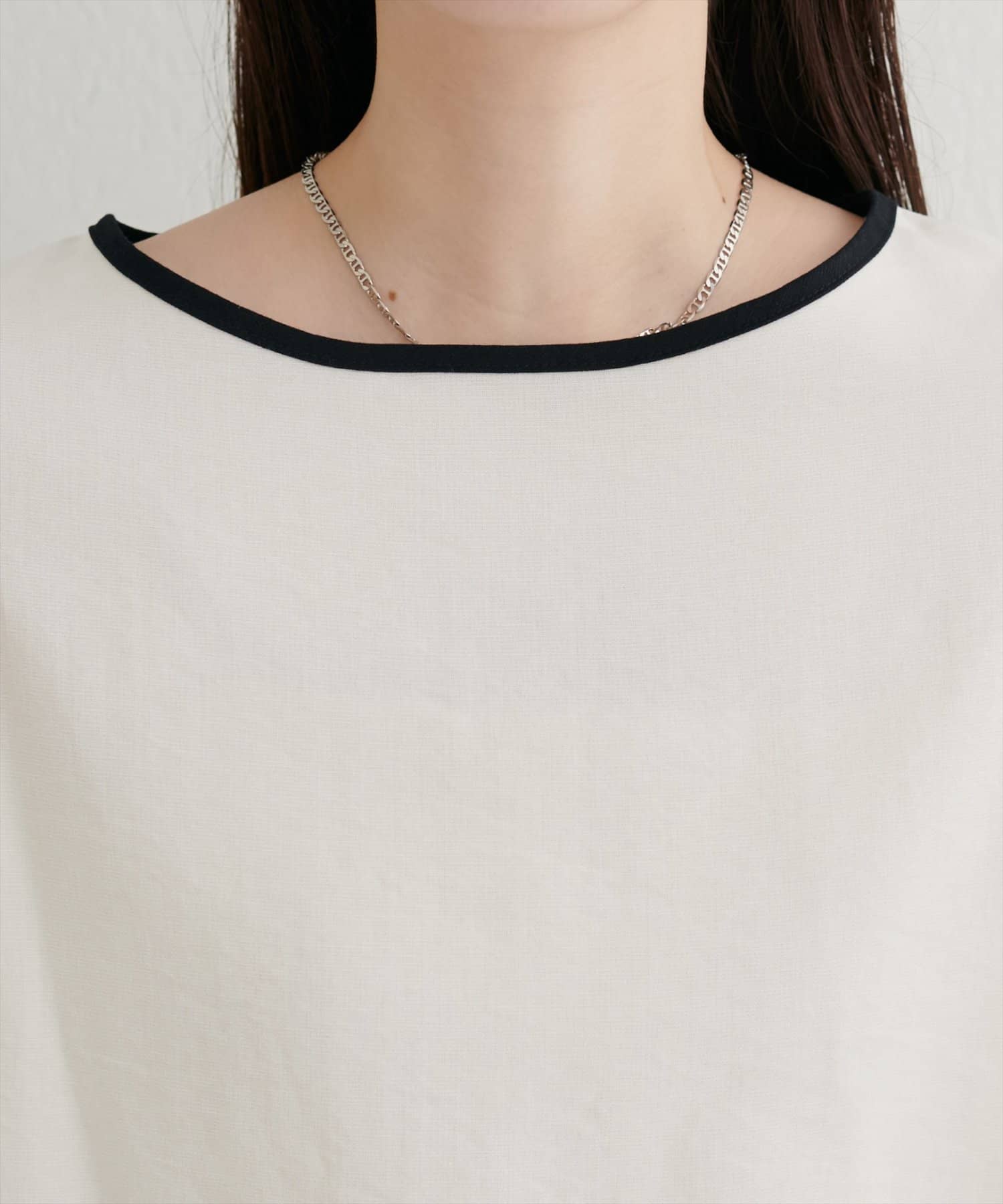 やや広めのネックラインは、お顔周りをすっきりと見せてくれます。