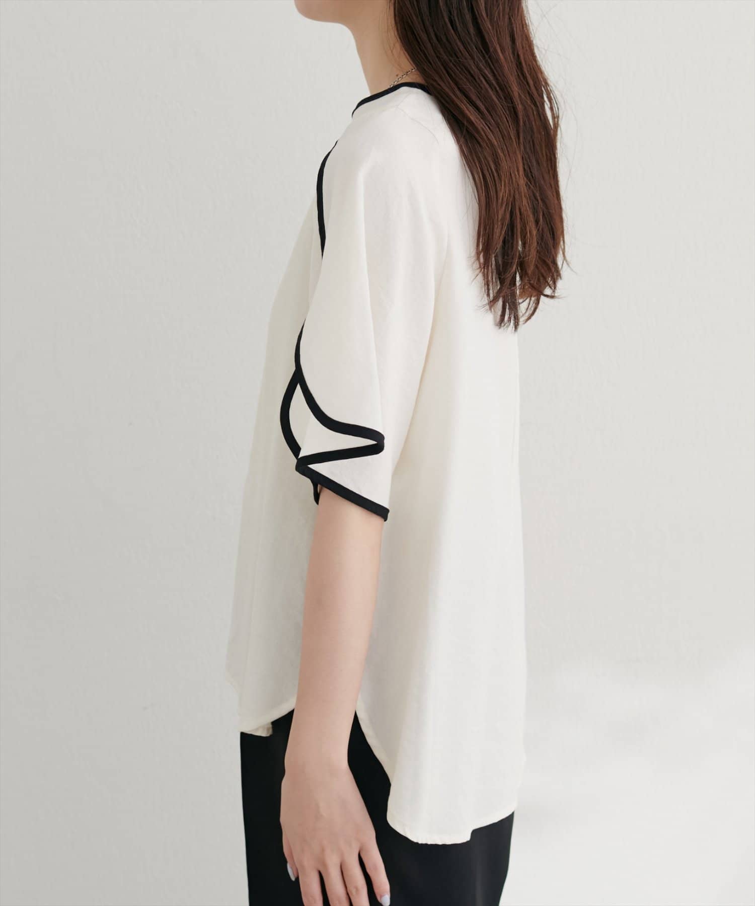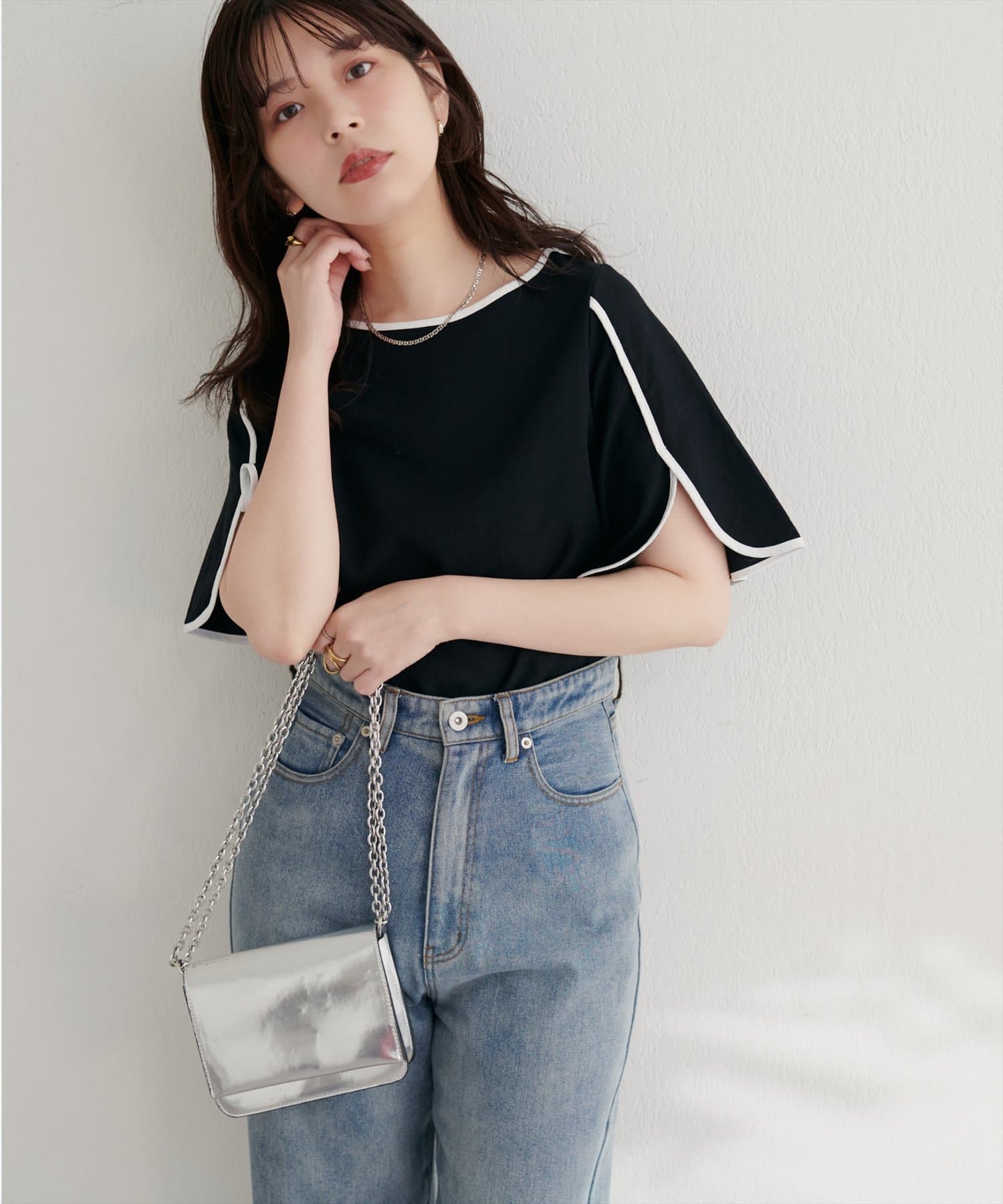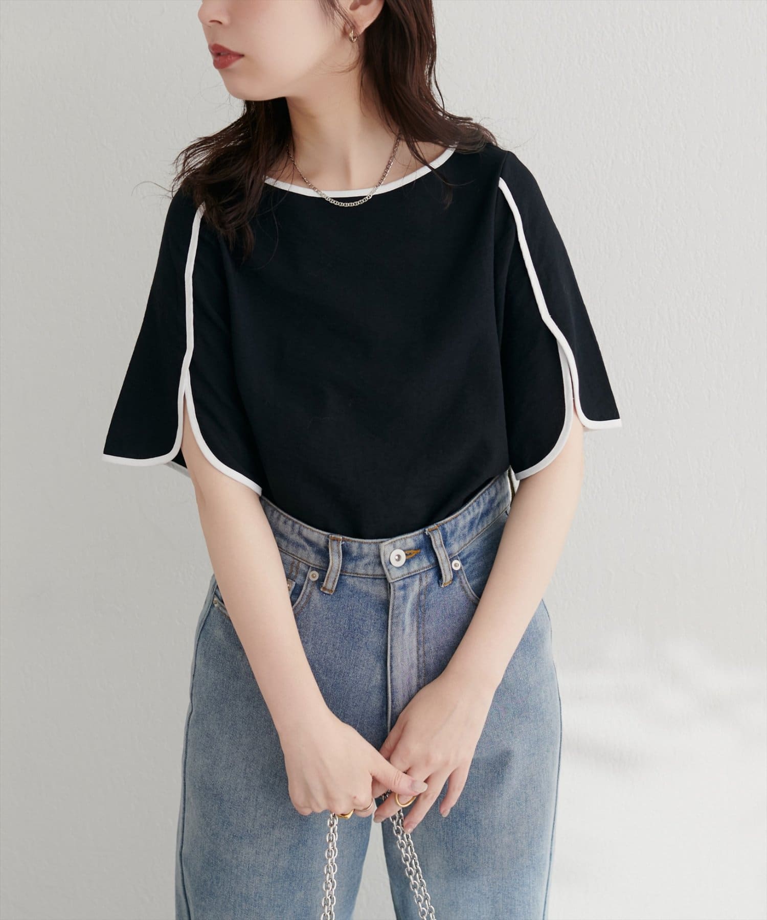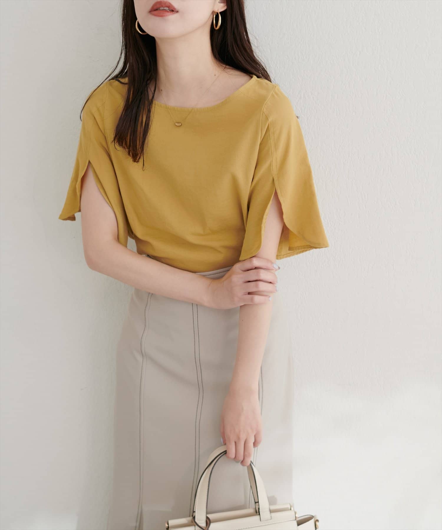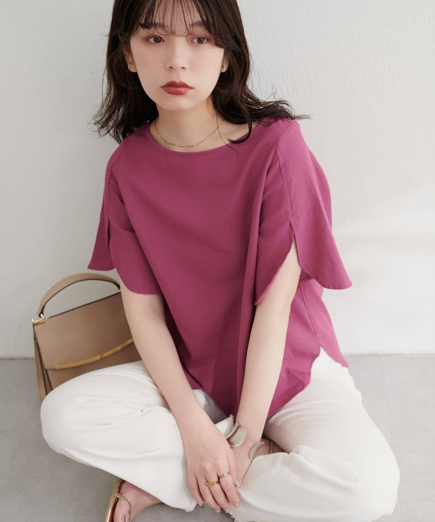 袖にハチワレのようなスリットを施した遊び心のある半袖ブラウス。