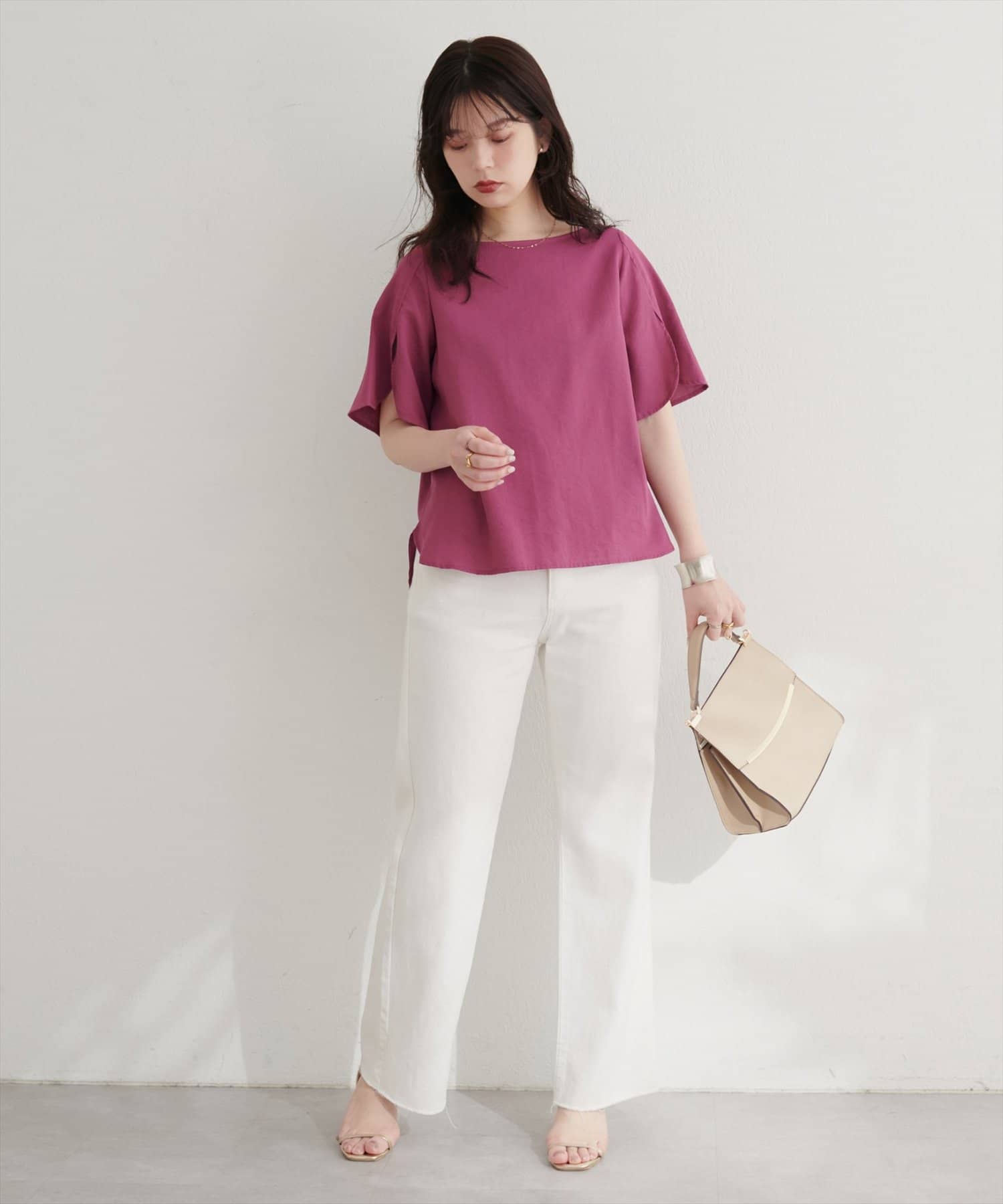 【WEB限定】ハチワレスリーブ麻調ブラウス