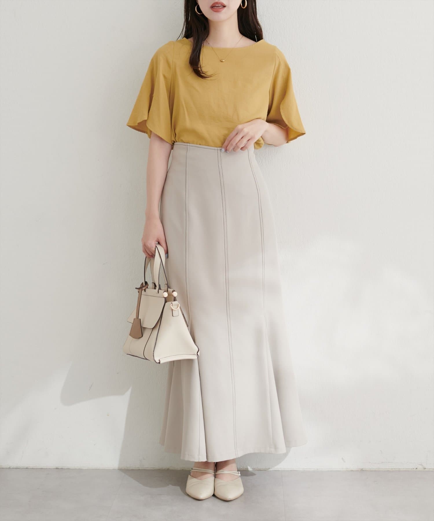 Aラインシルエットのスカートや、ナロースカーにウエストインしてすっきり上品に合わせて頂くのはもちろん、