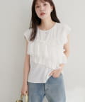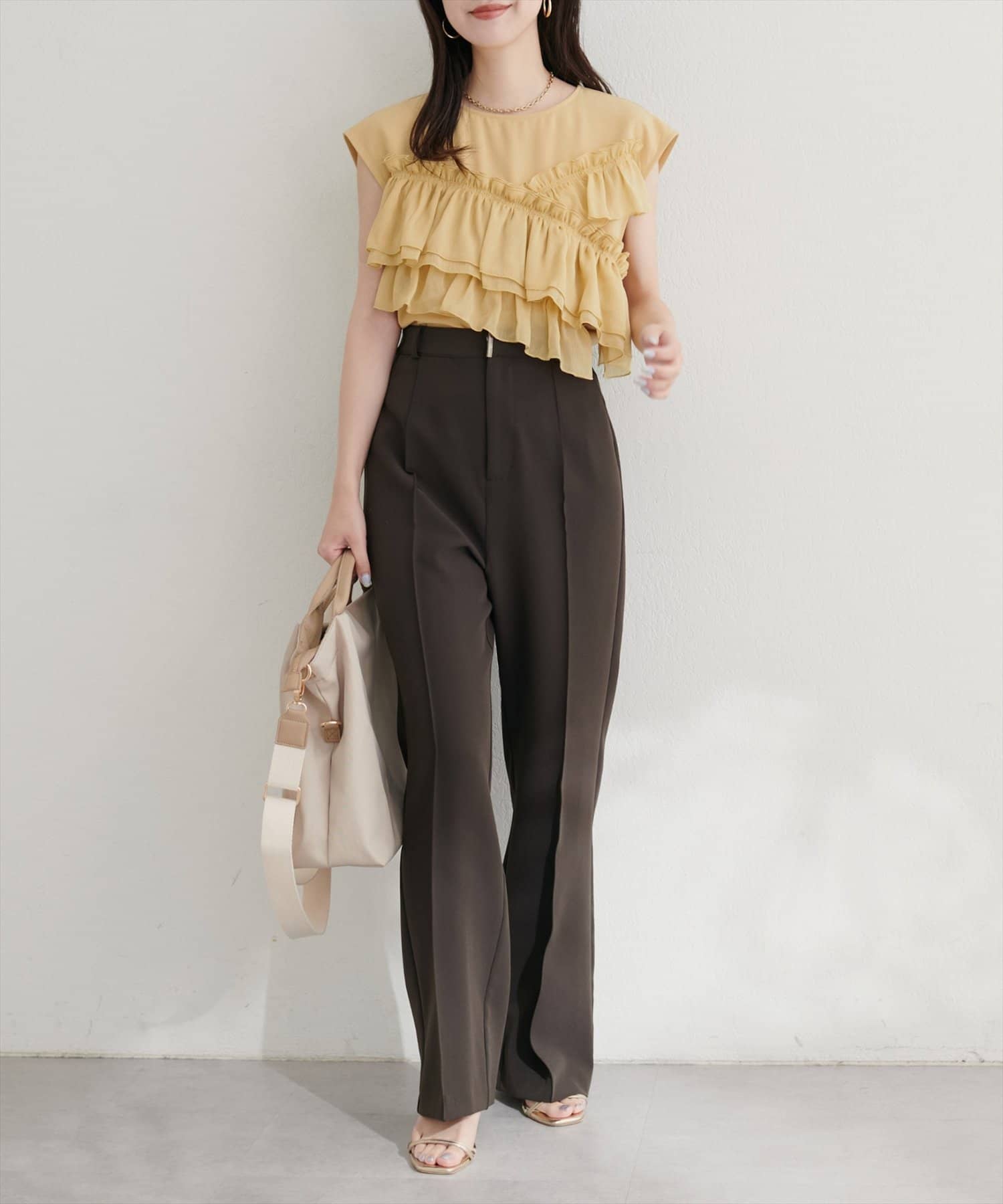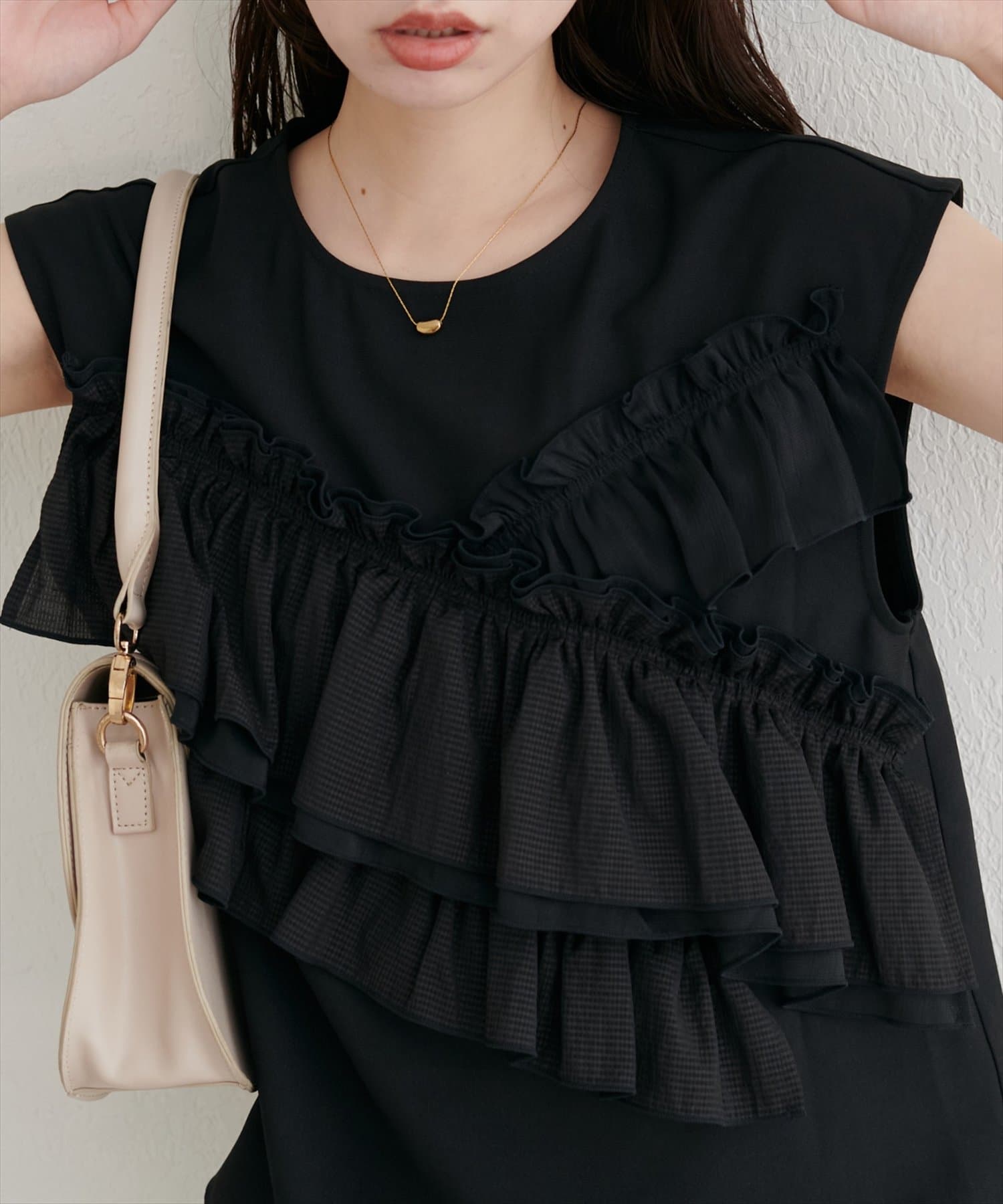 オフホワイト・ブラックは、それぞれ異なる素材のフリルがあしらわれこなれ感がプラス、イエローは同素材で一体感がプラス◎