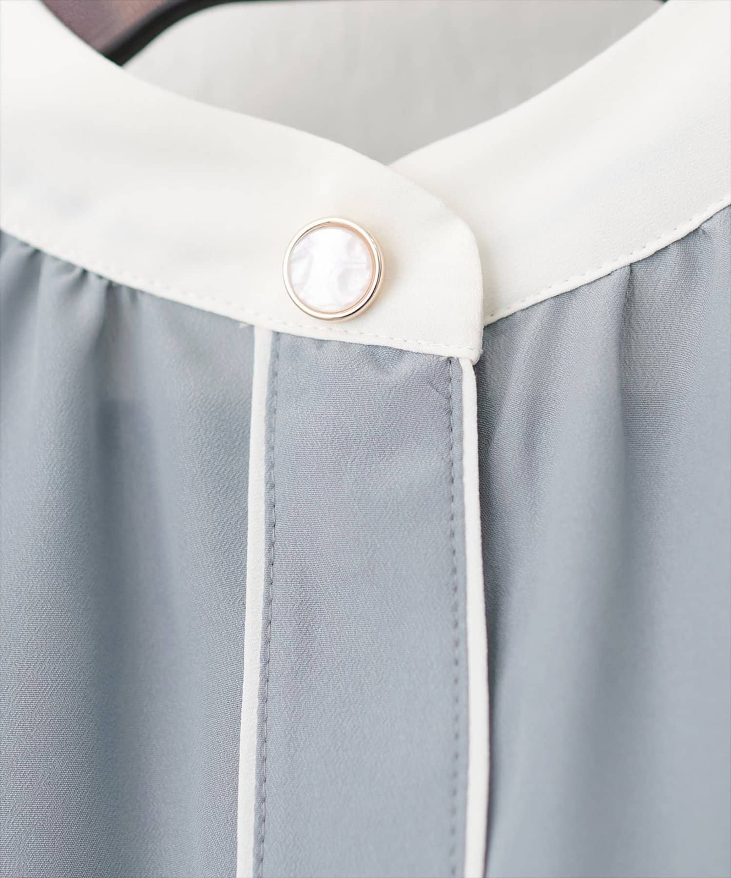 バイカラーと上品な釦使いが目を惹くキレイめブラウス