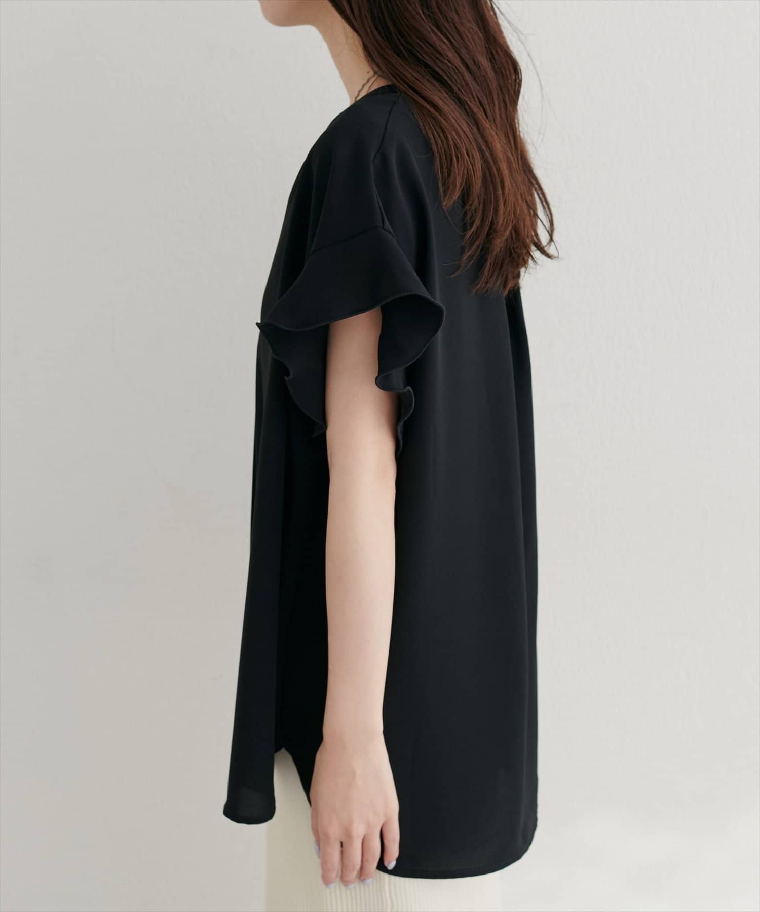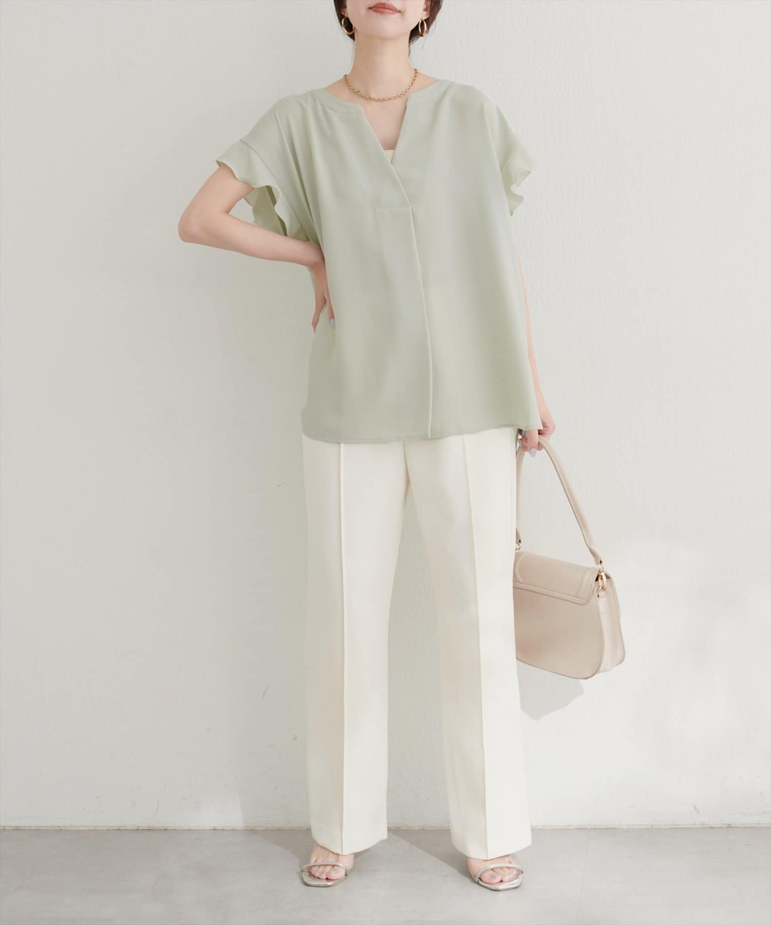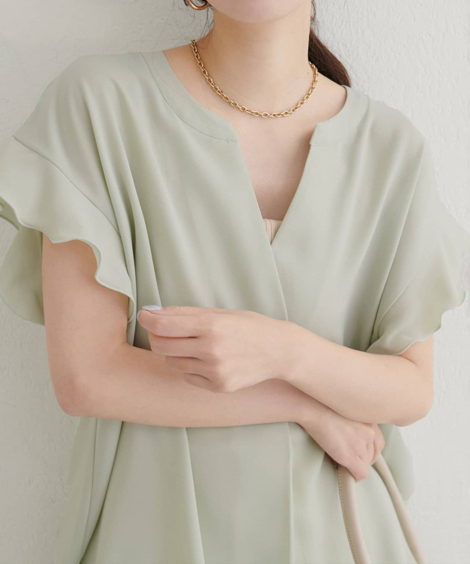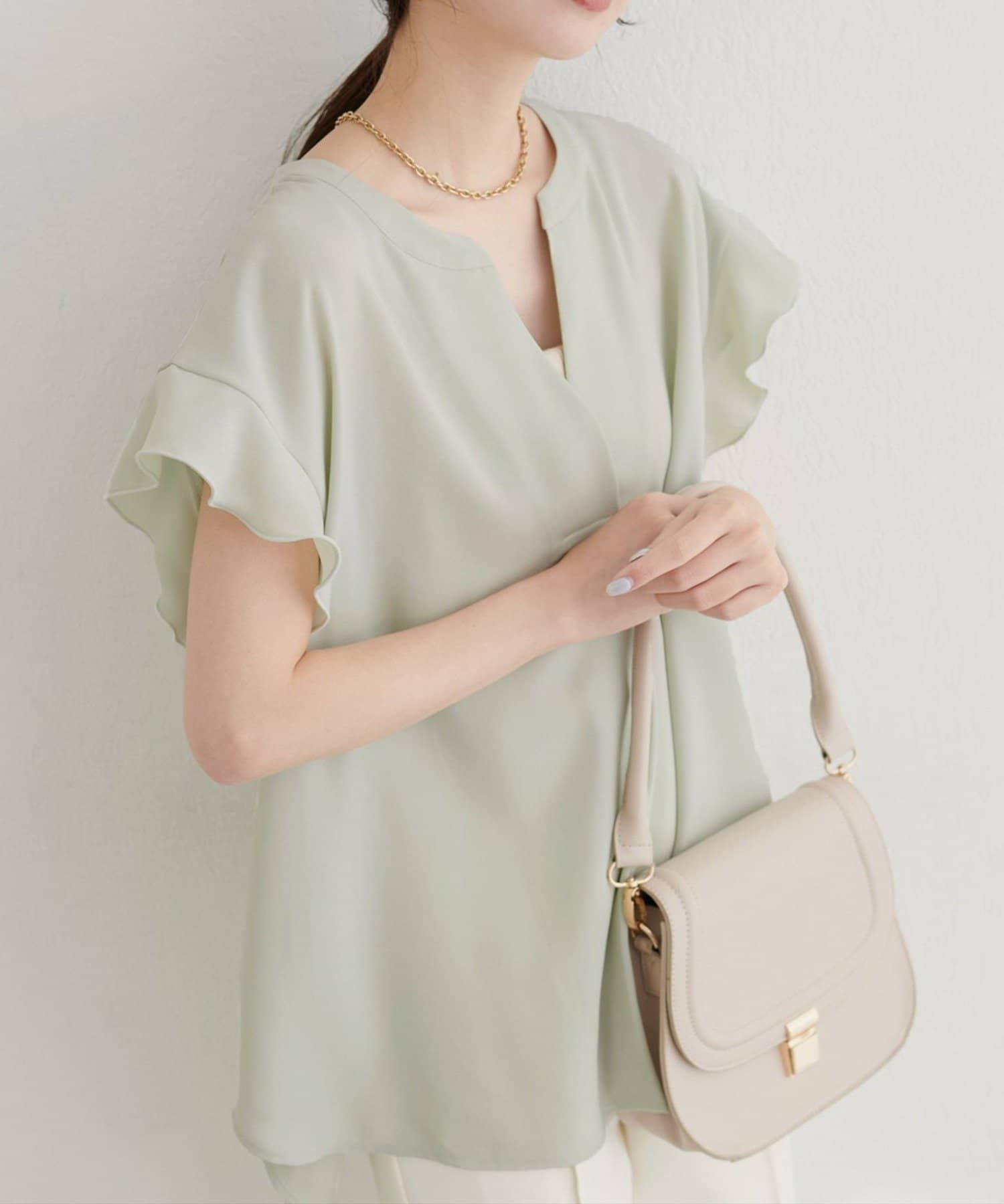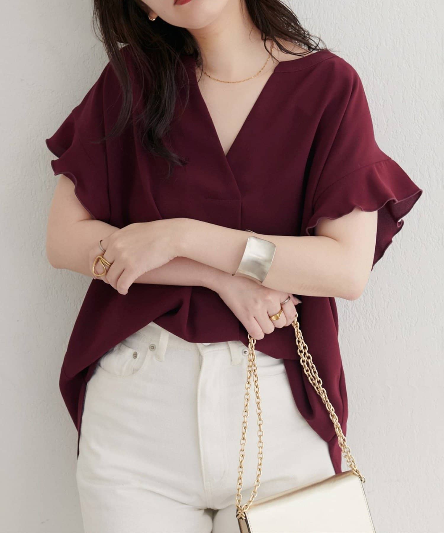 袖口にあしらわれた繊細なラッフルが、さりげなく女性らしさを演出。