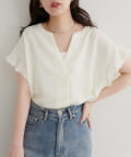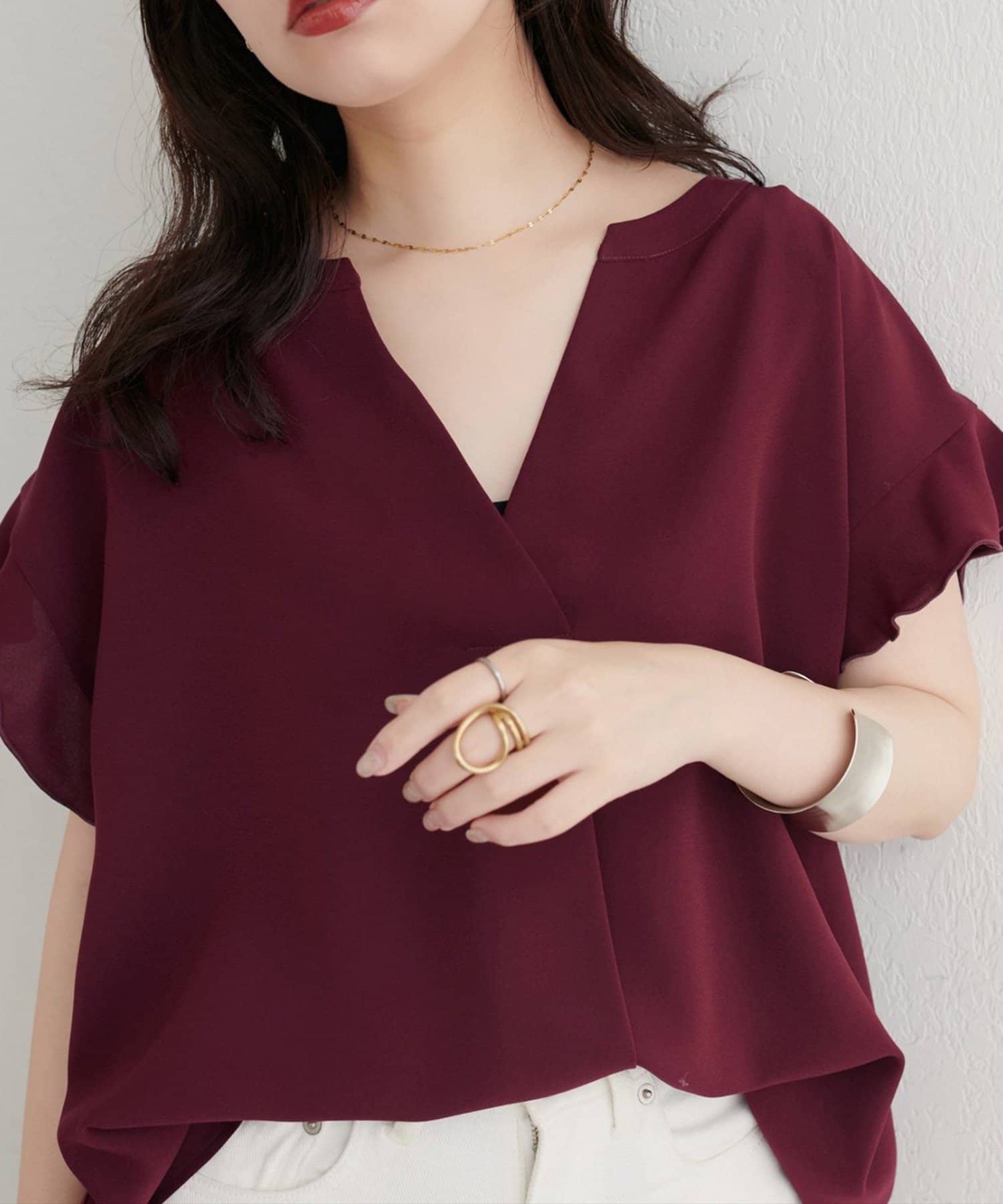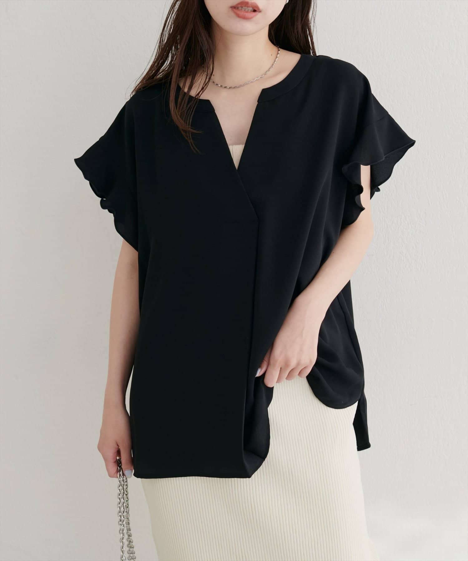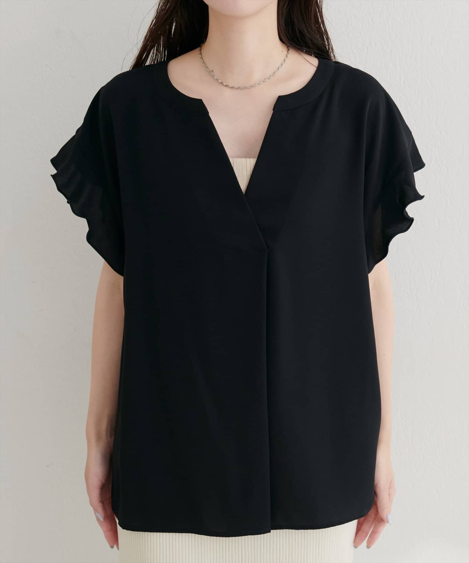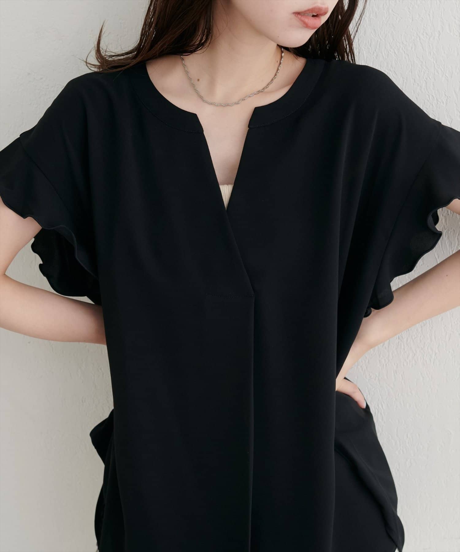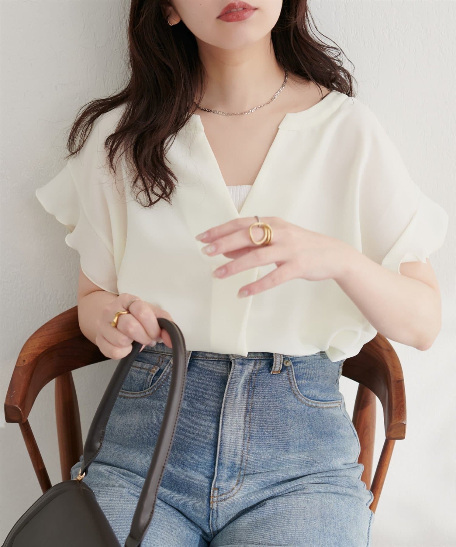 袖口にあしらわれた繊細なラッフルが、さりげなく女性らしさを演出。