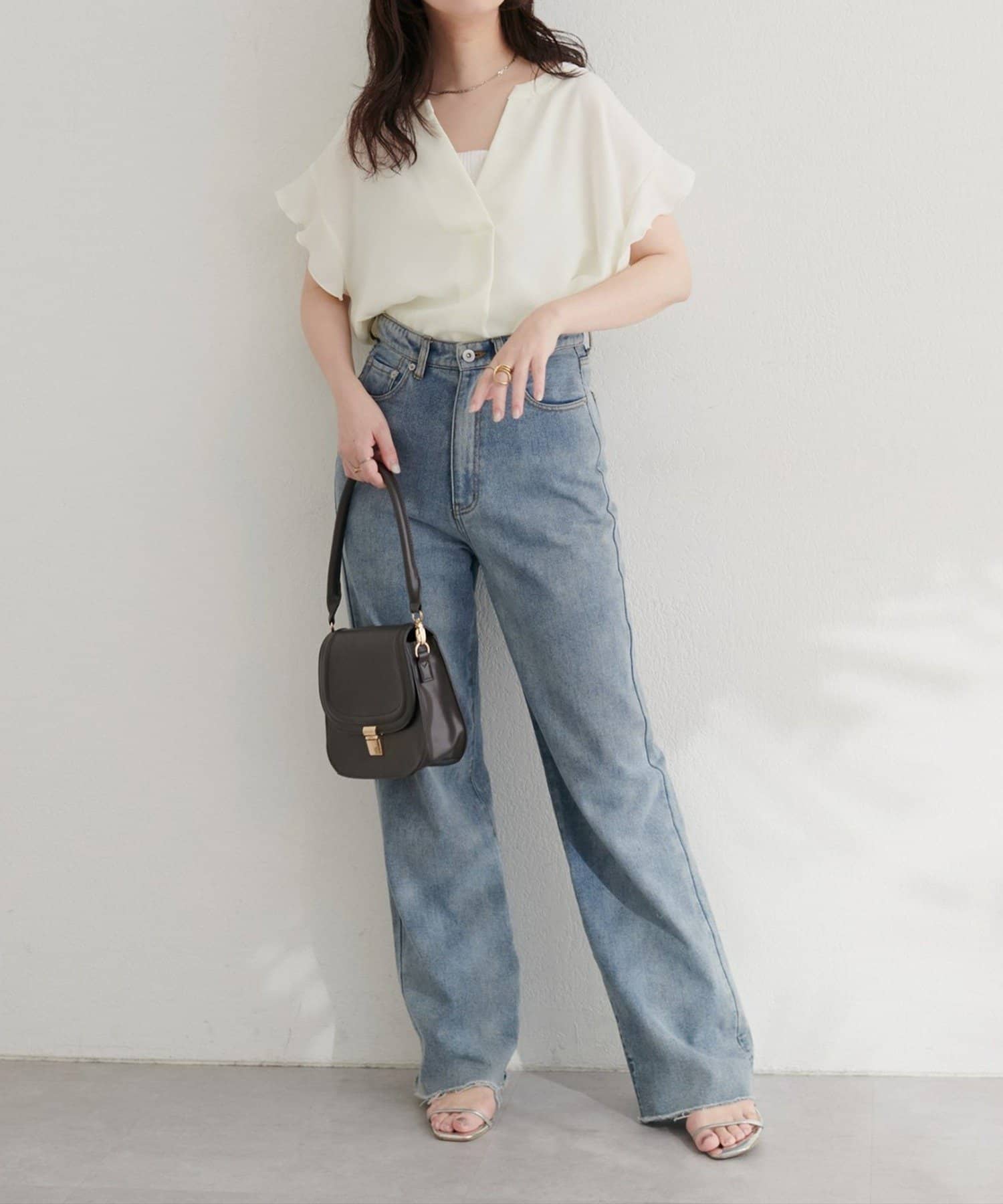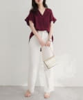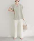 きれいめパンツやハイウエストパンツを合わせれば、きちんと感のあるオフィススタイルに。