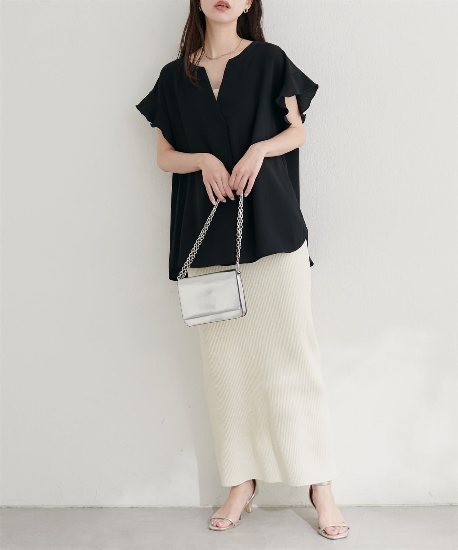 マーメイドスカートやフレアスカートを合わせて、フェミニンな印象に。