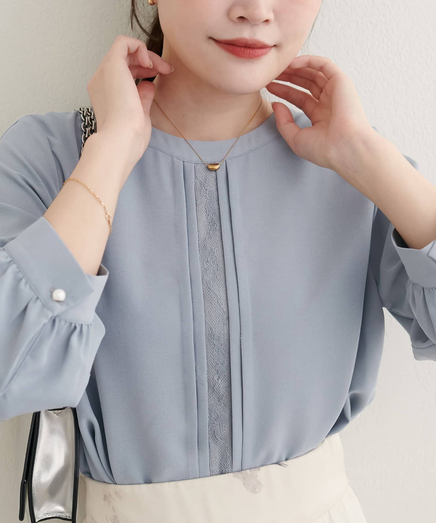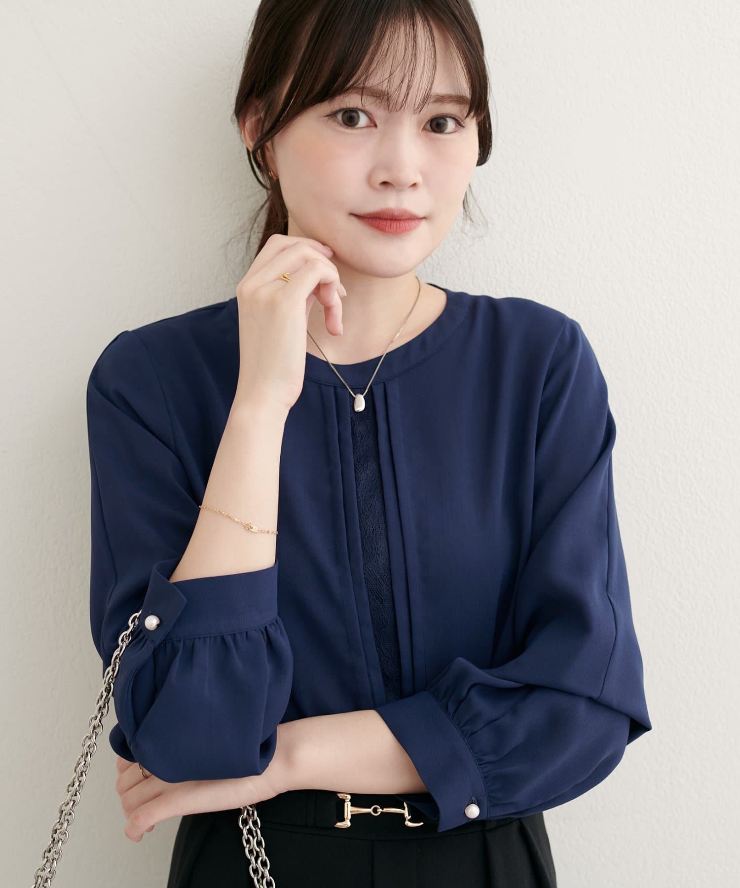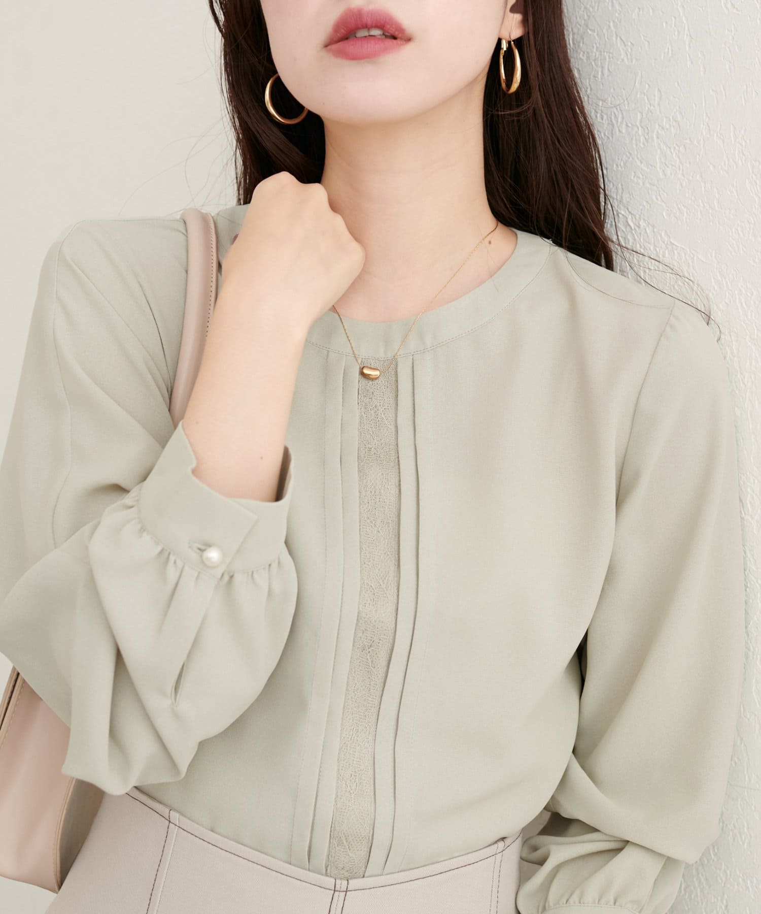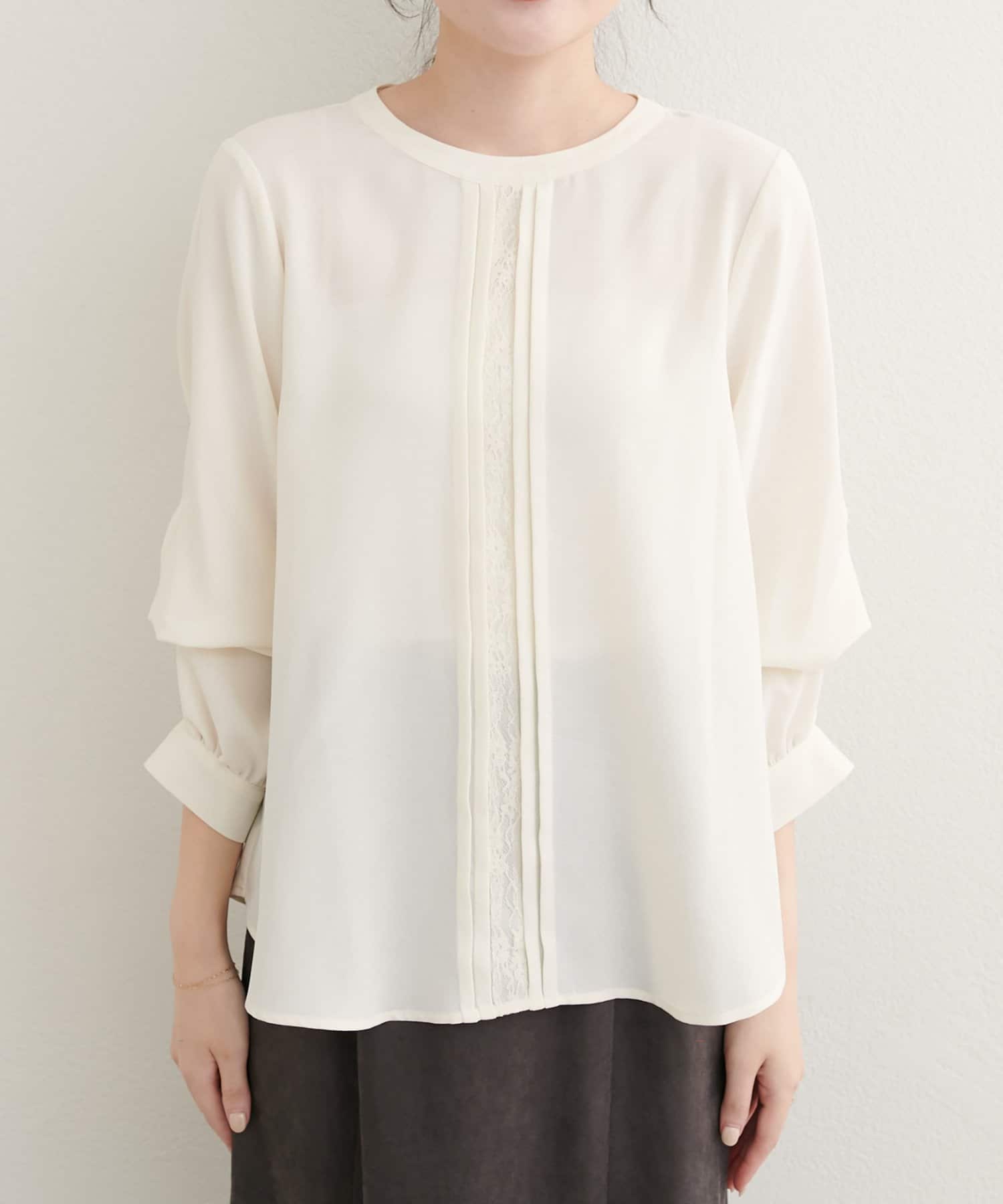 繊細なレースとピンタックが織りなす、袖口2WAYタイプの大人のブラウス。