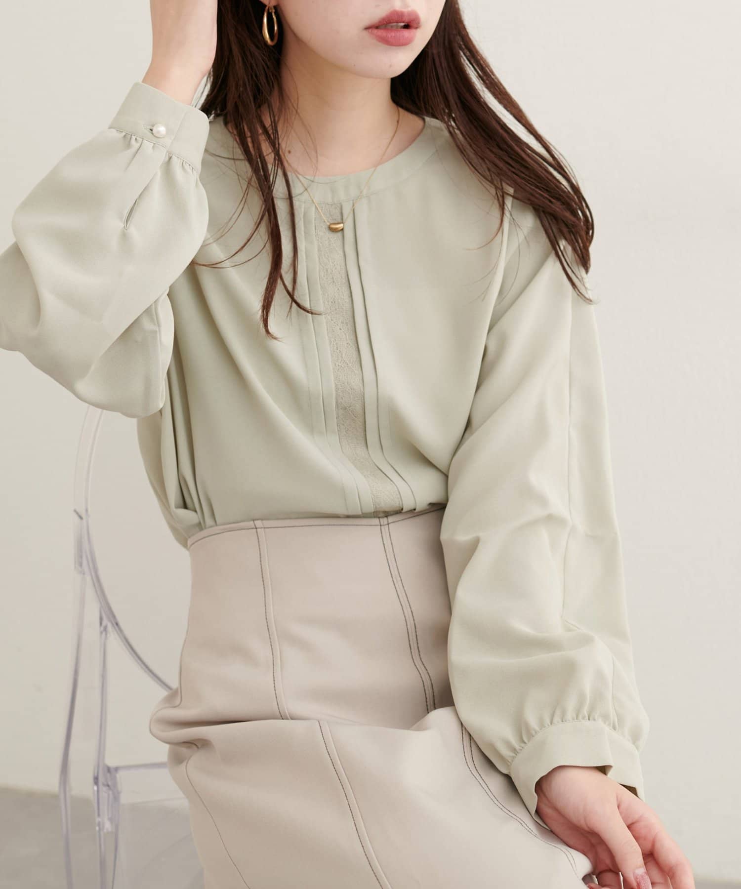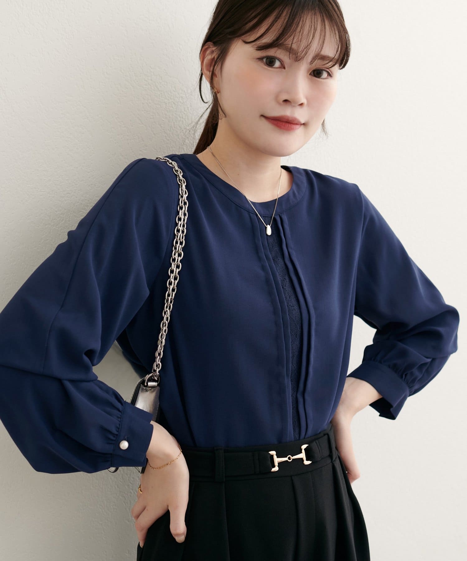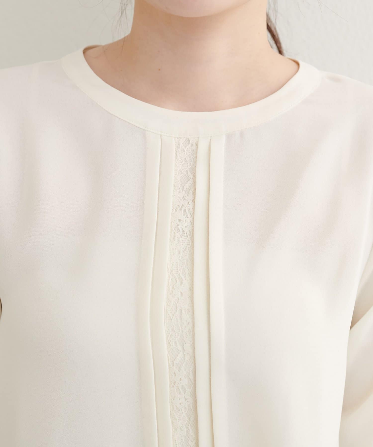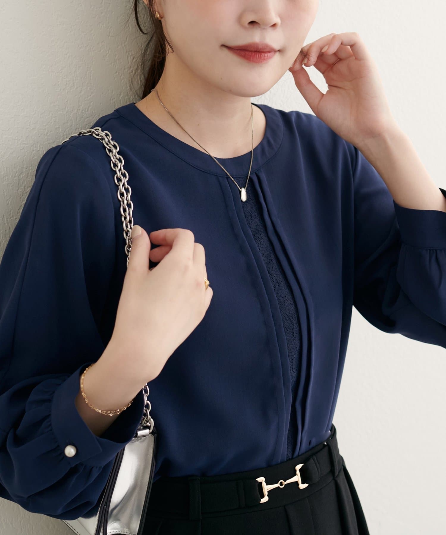 繊細なレースとピンタックが織りなす、袖口2WAYタイプの大人のブラウス。