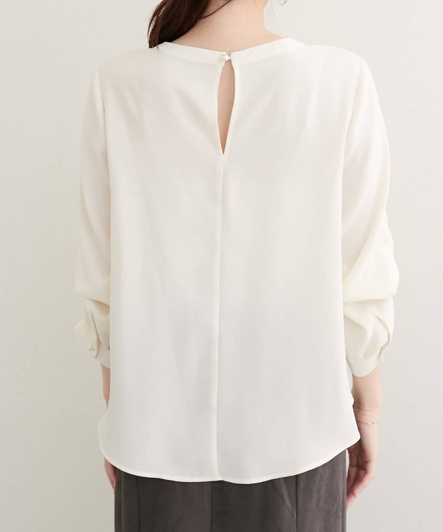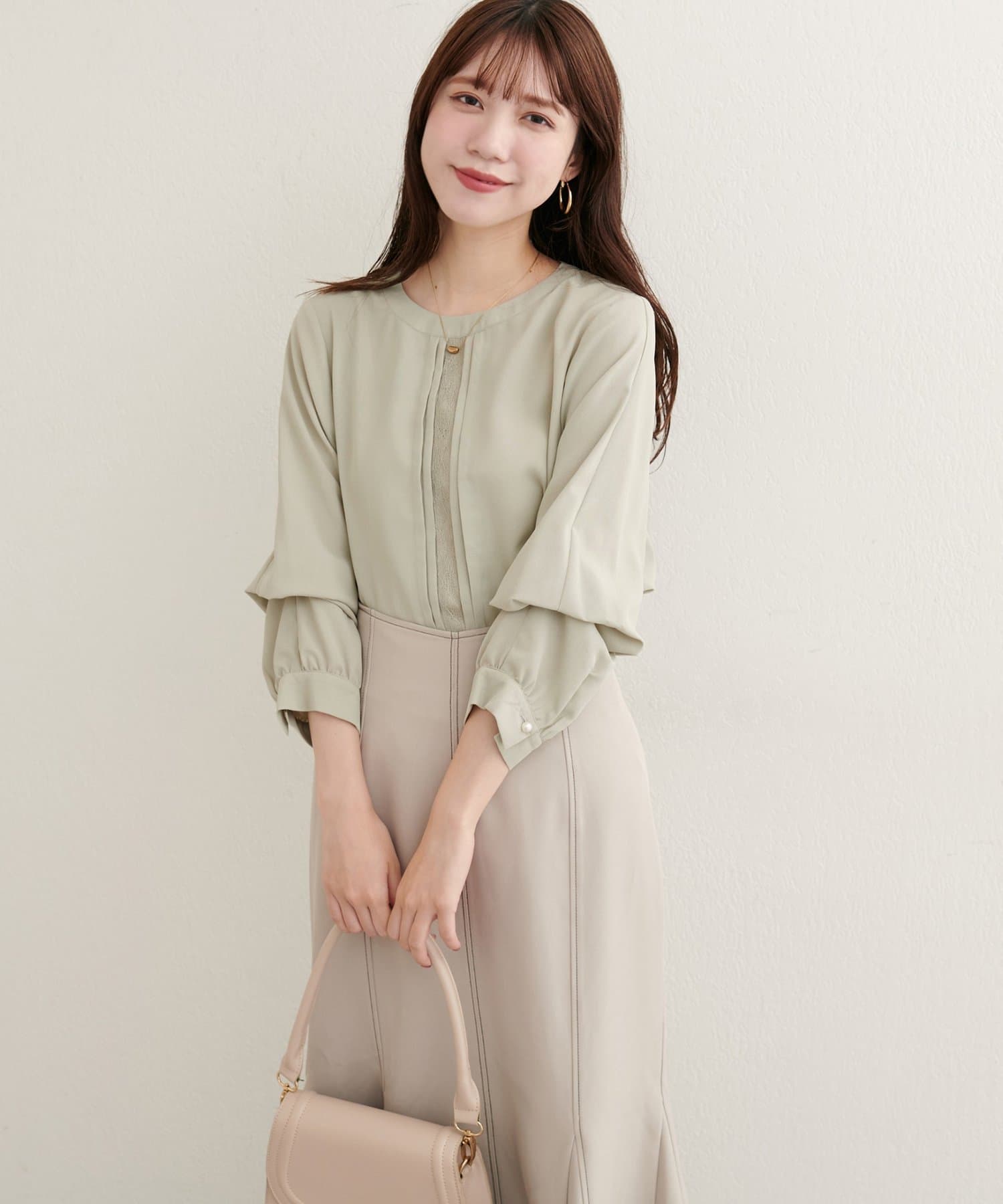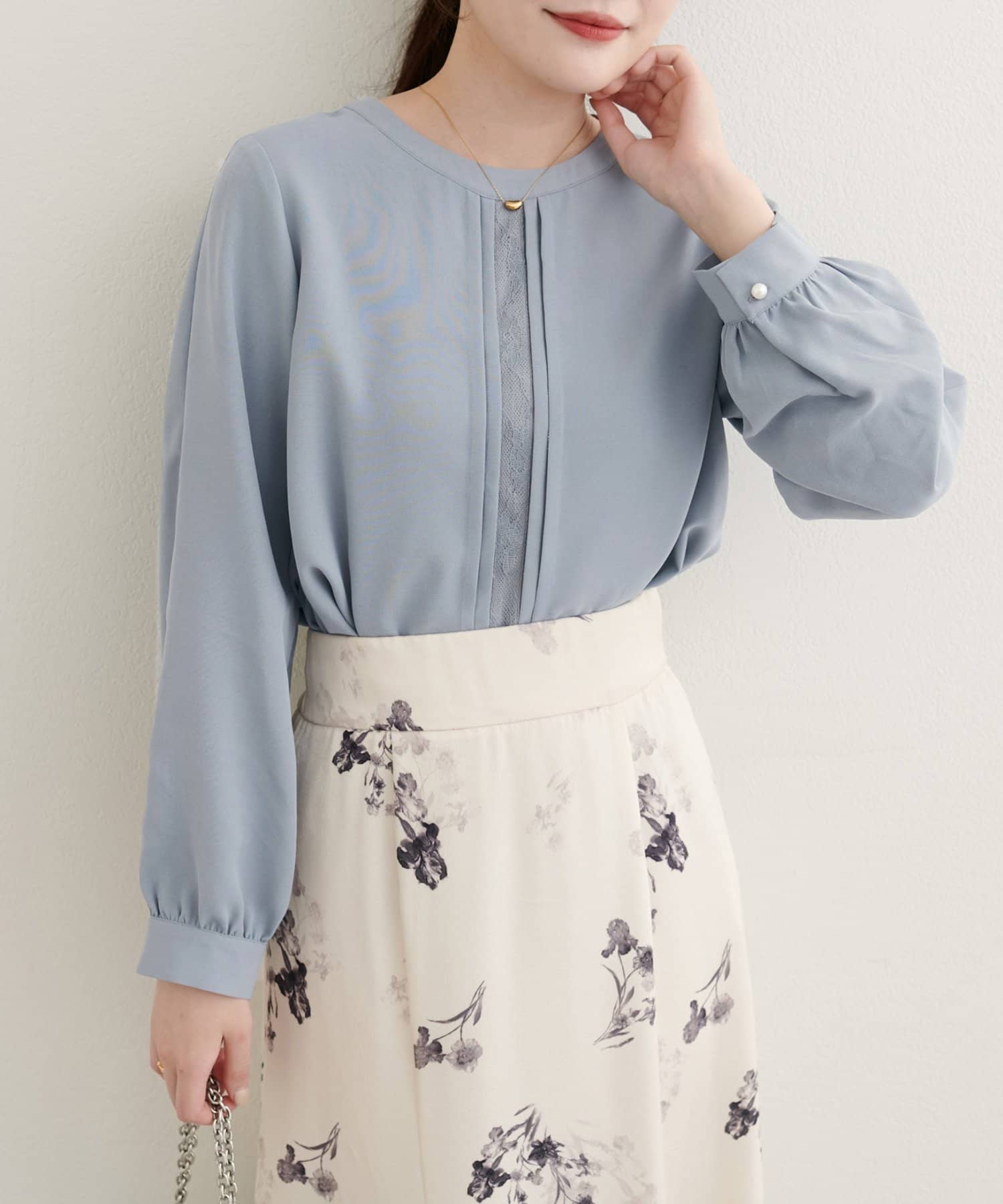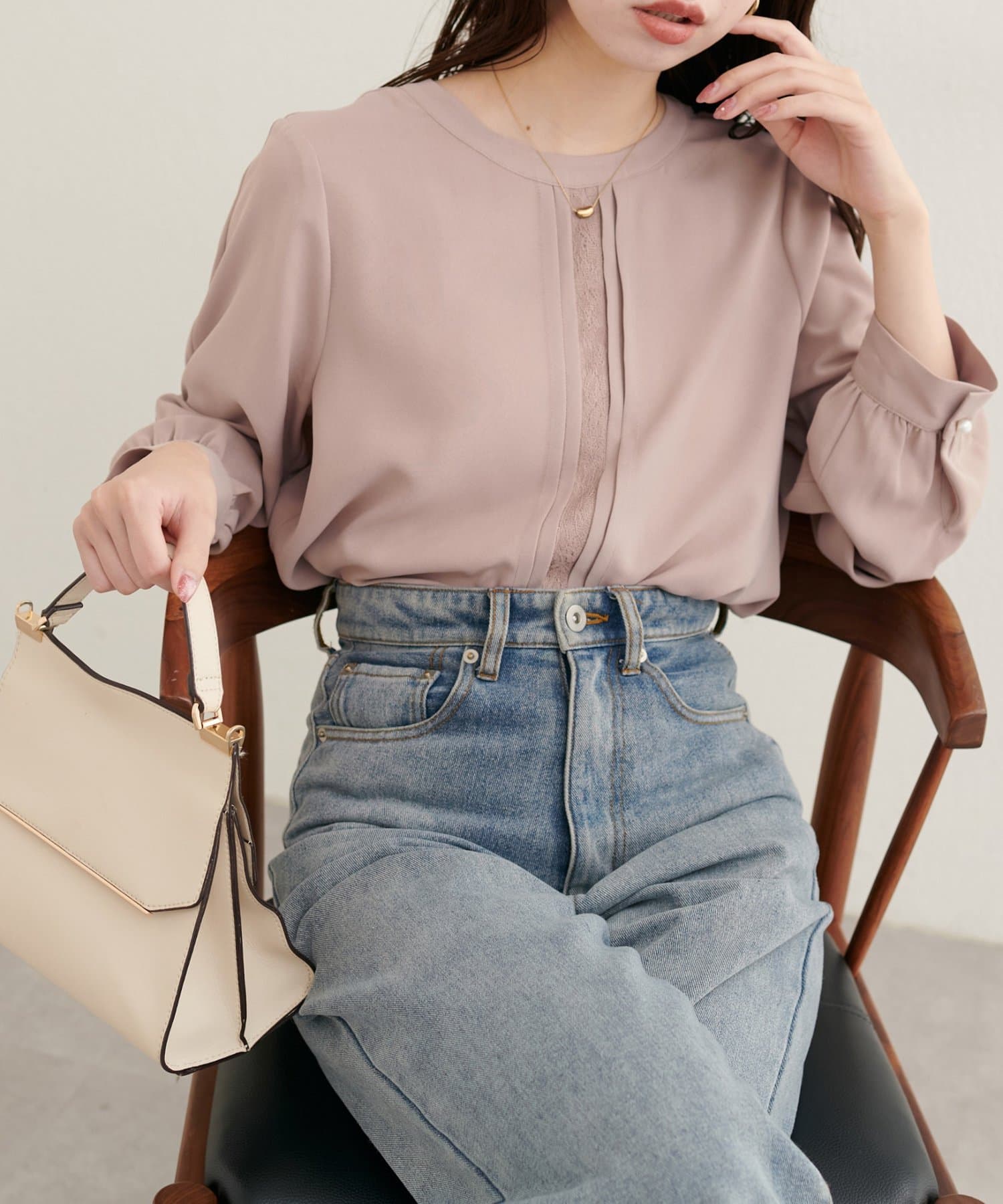 繊細なレースとピンタックが織りなす、袖口2WAYタイプの大人のブラウス。