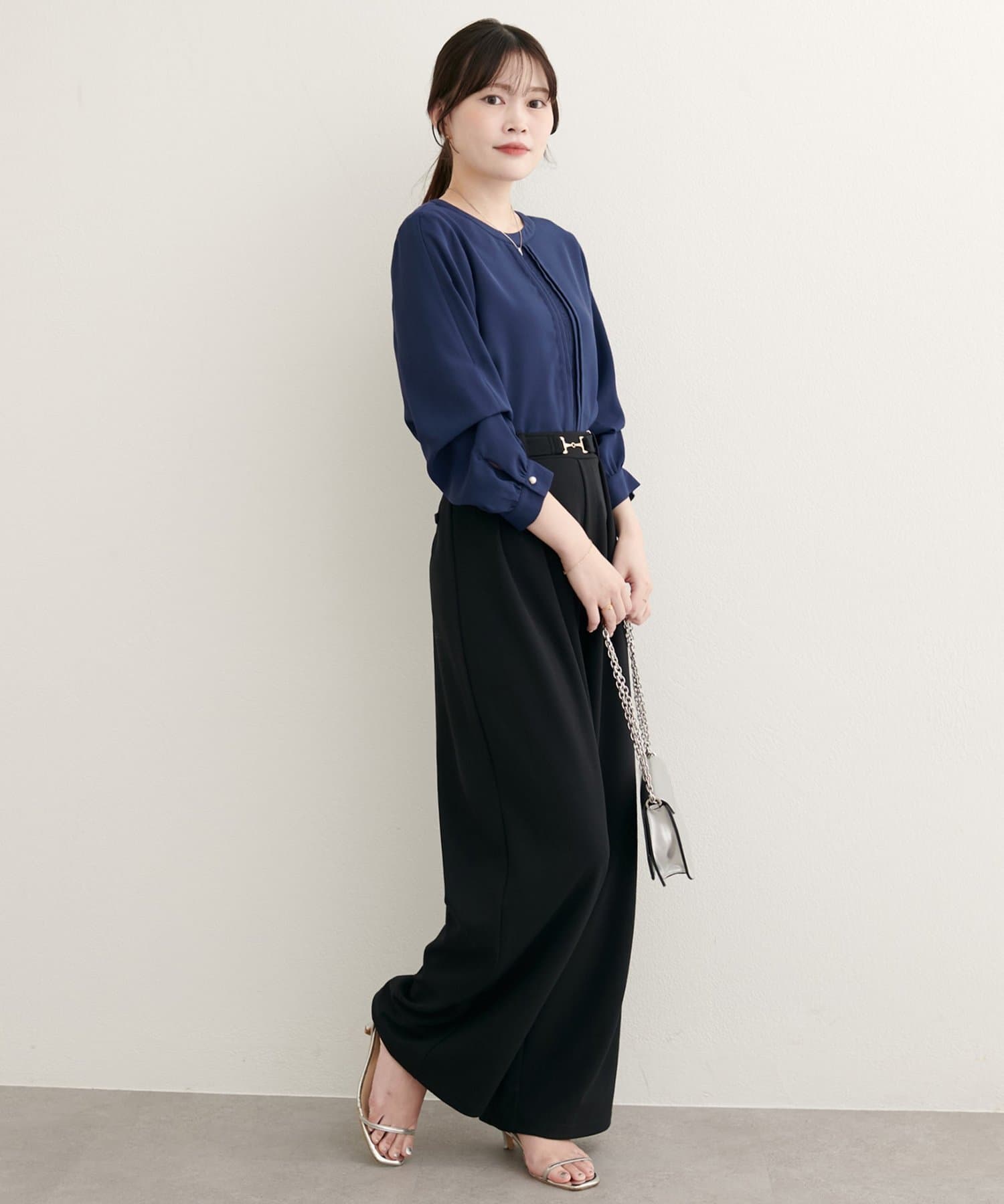 アクセサリーは控えめにして、ブラウスのデザインを引き立てるのがおすすめです。