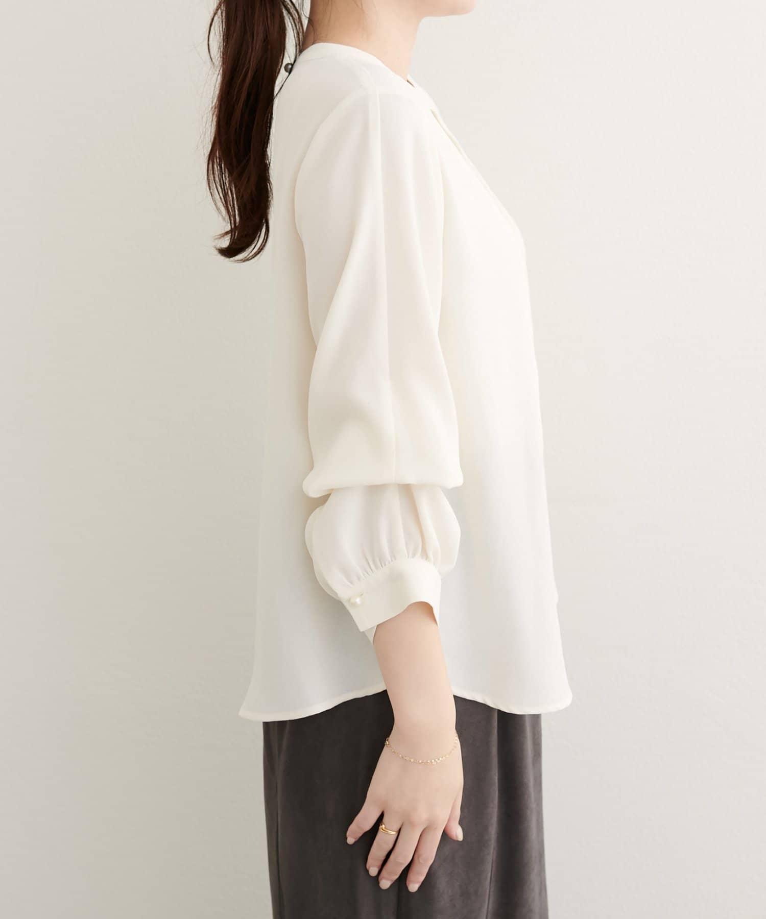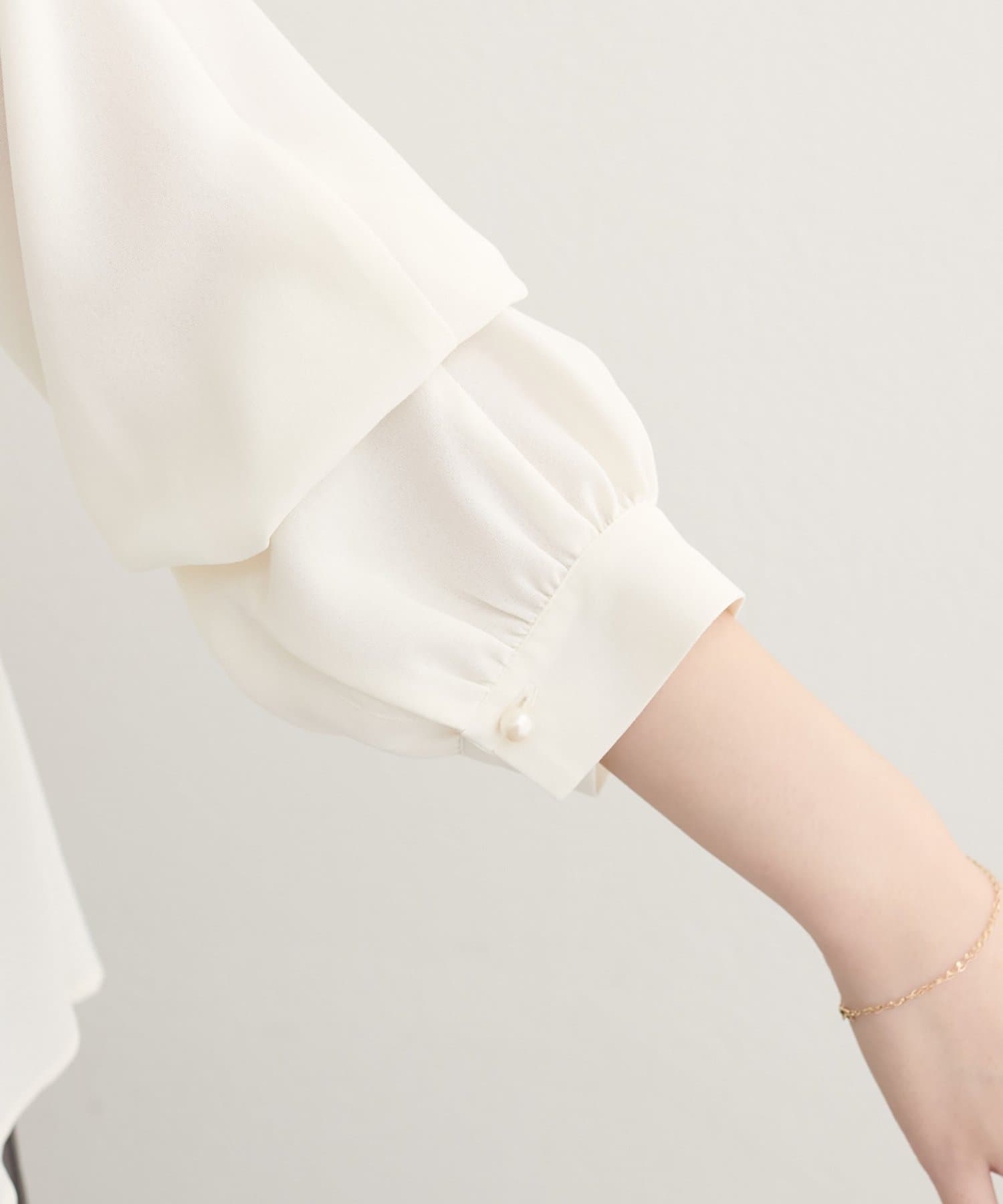 ボタンを留めると、ふんわりとしたクシュっとした袖が可愛らしい印象に。