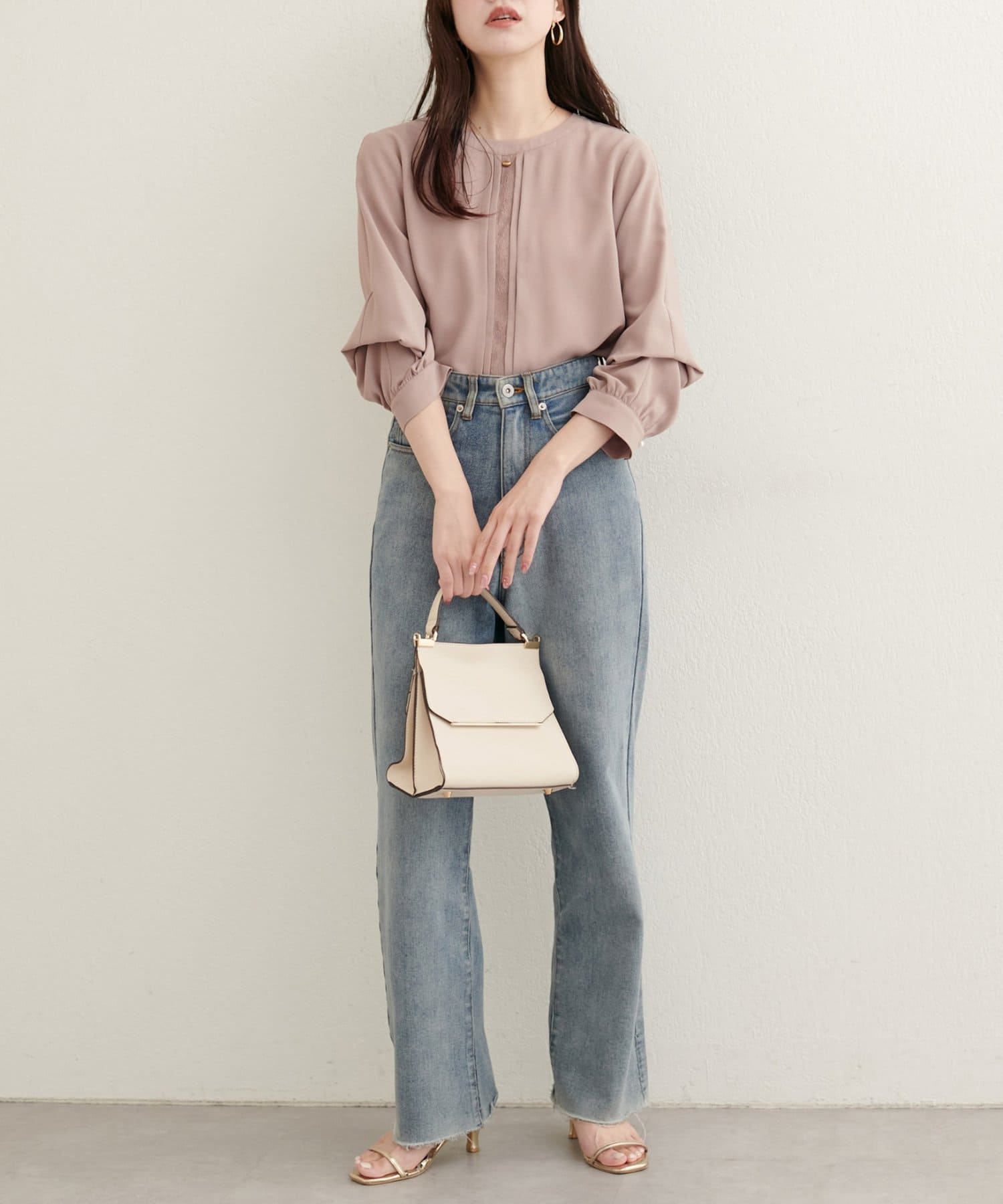 デニム×ブラウスで、大人のカジュアルスタイルに。